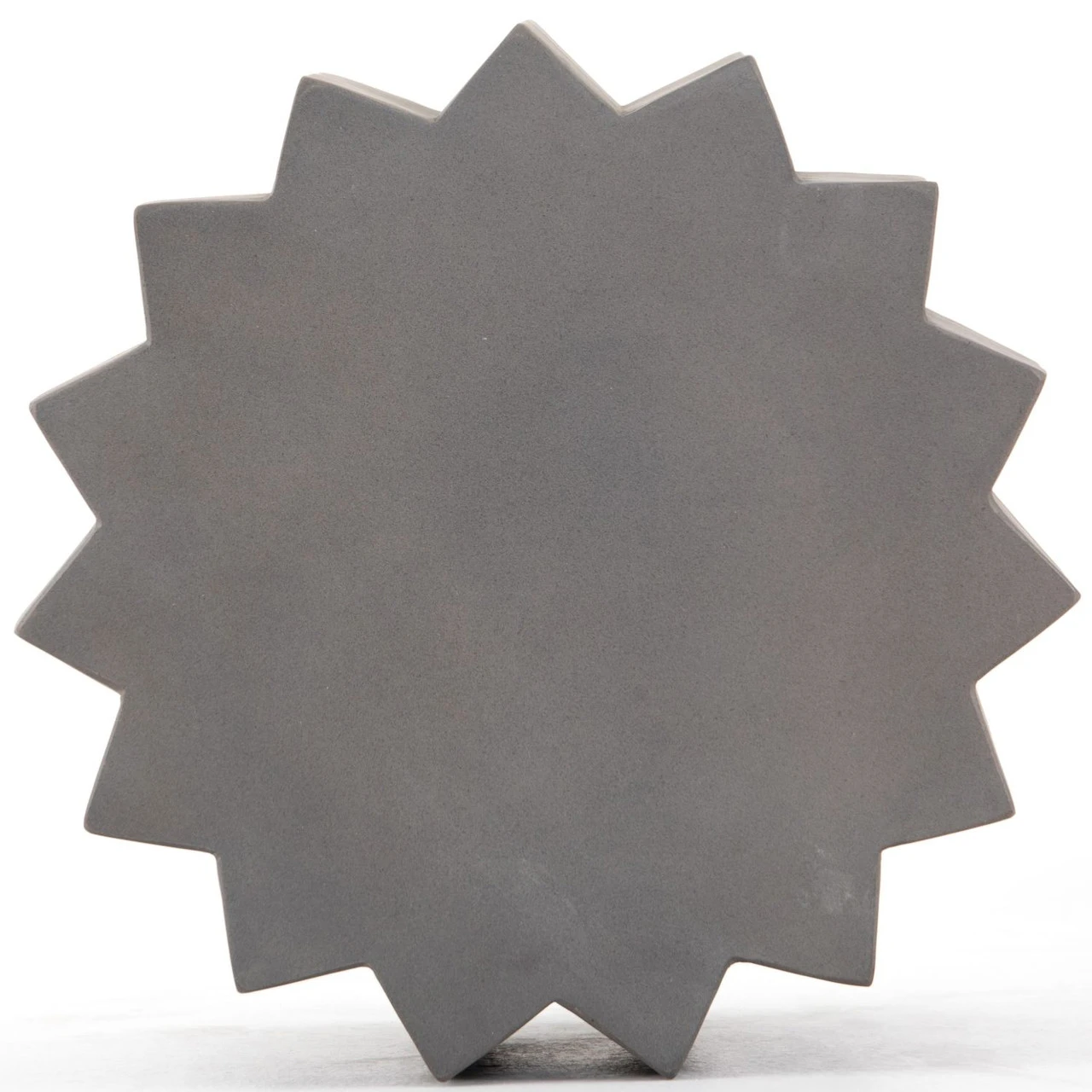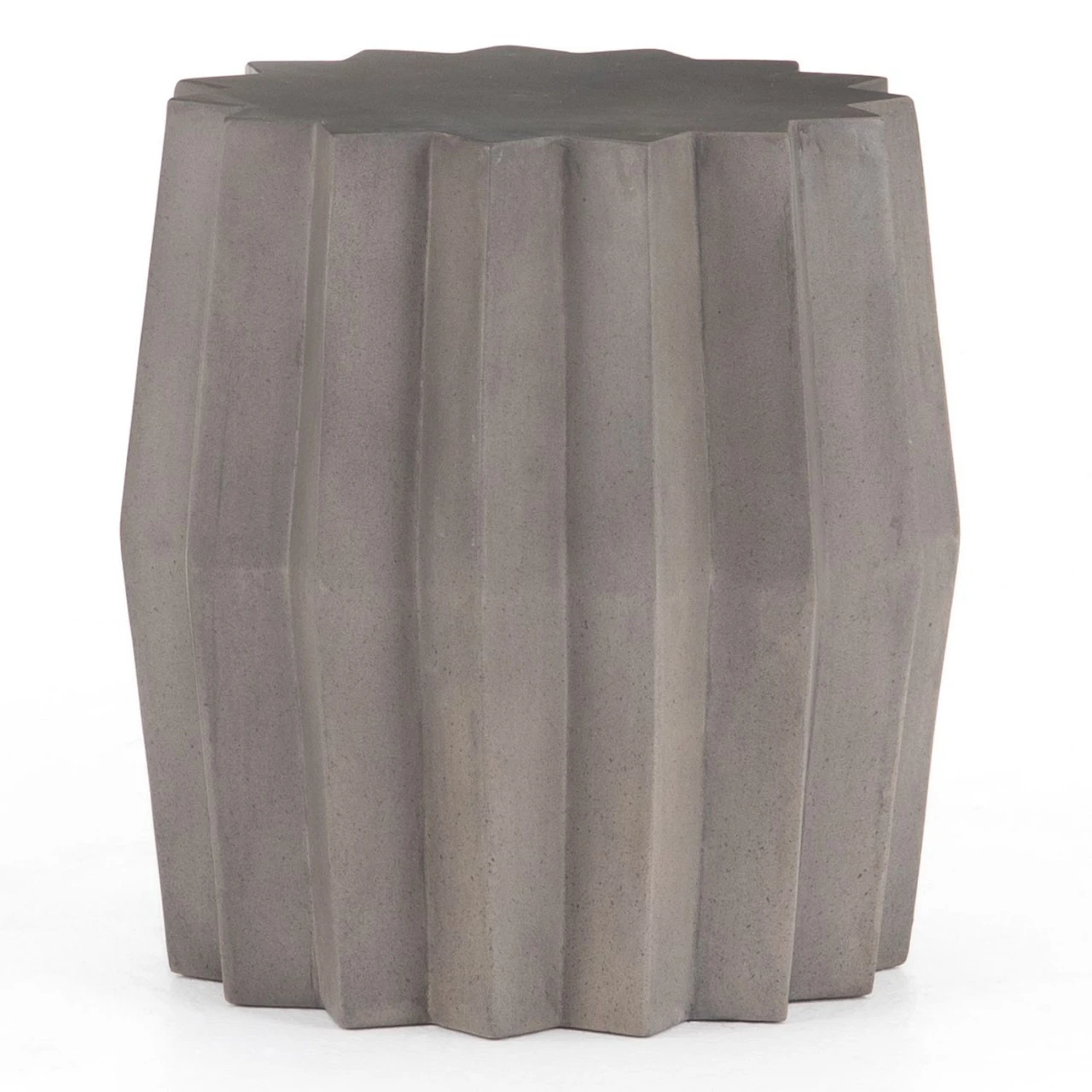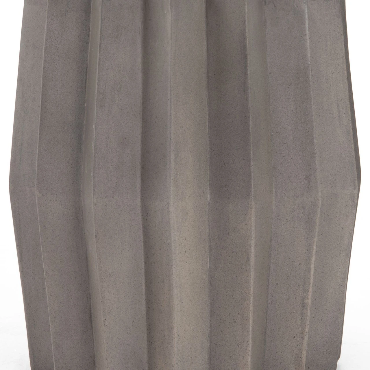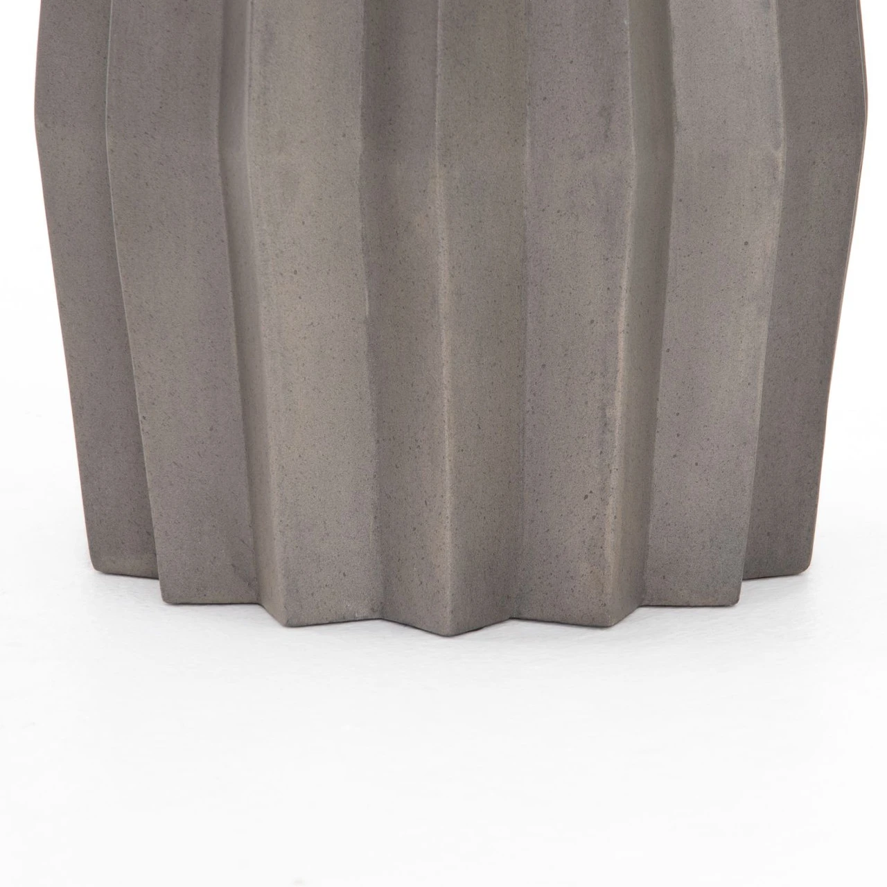 Sculptural modern, made for outdoors. Fluted edge detailing delivers intriguing depth to solid concrete finished in an invitingly neutral dark grey. Shapely tabletop brings an extra surface to any space, indoors or out. Cover or store inside during inclement weather and when not in use.