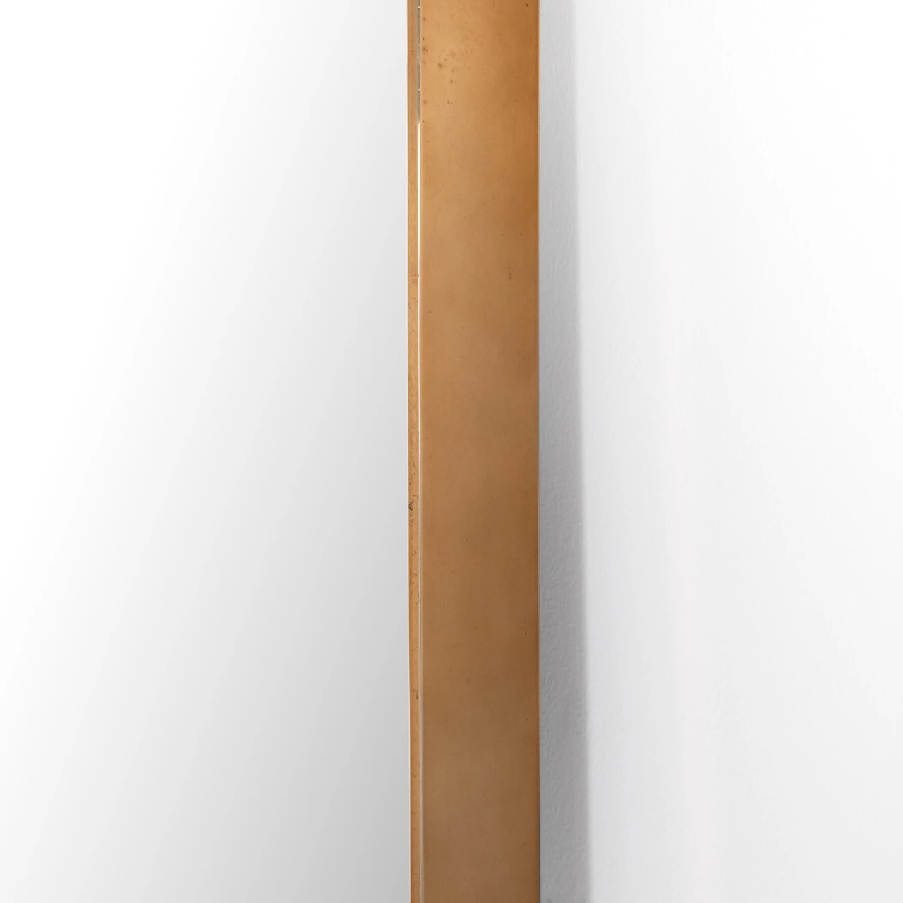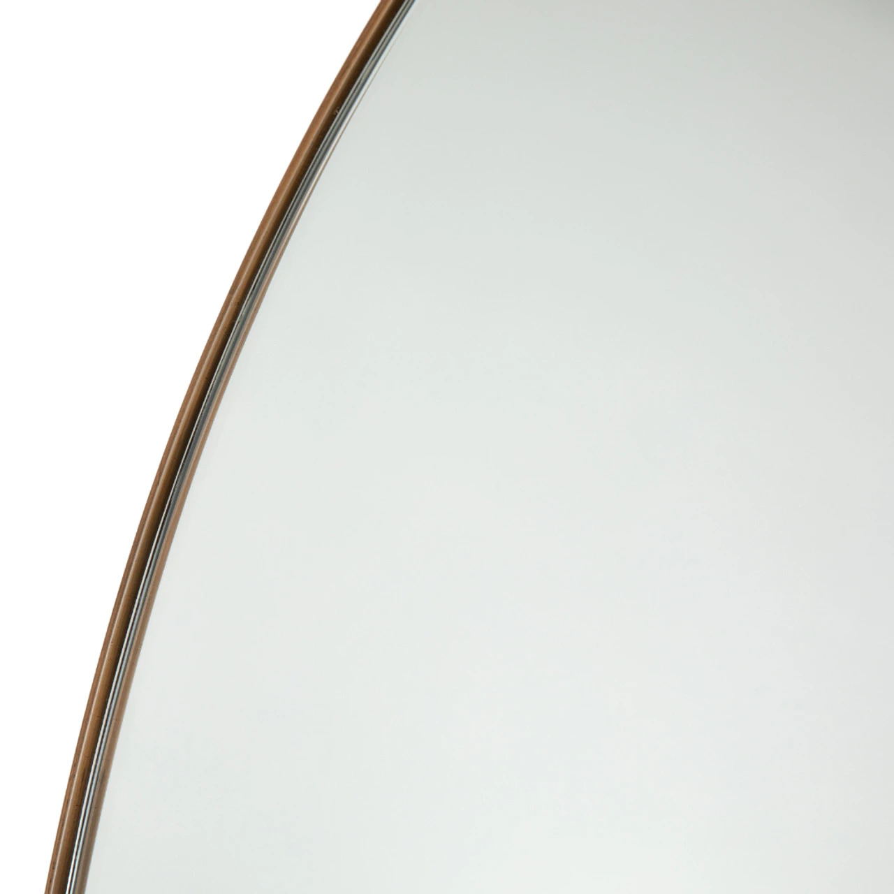 A beautifully arched floor mirror, framed out by rose gold-finished aluminum.