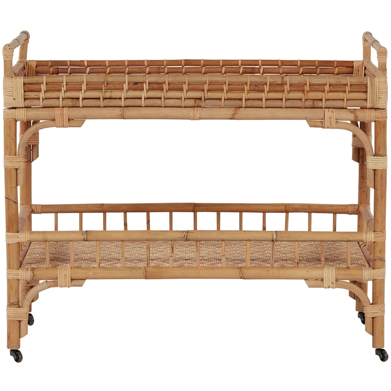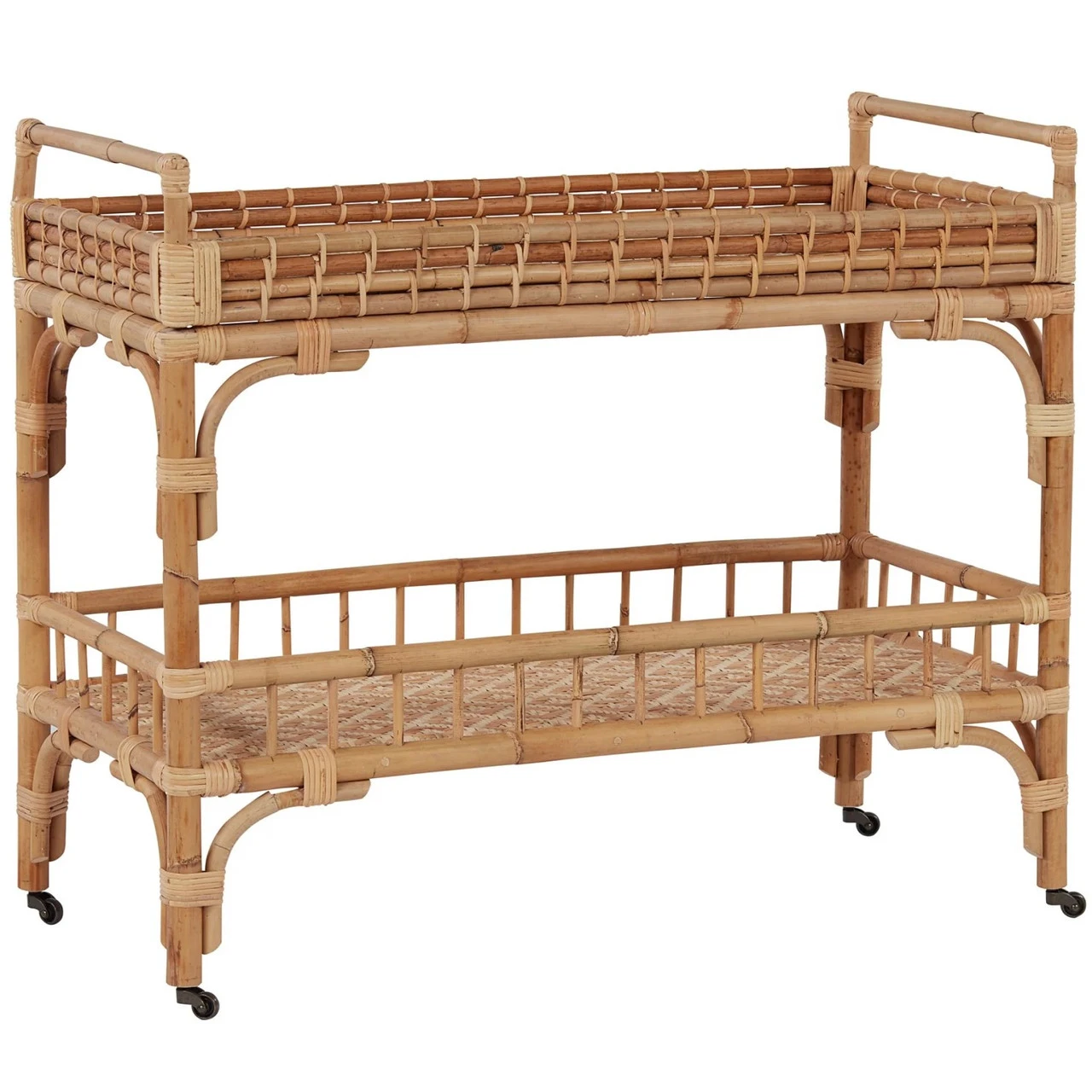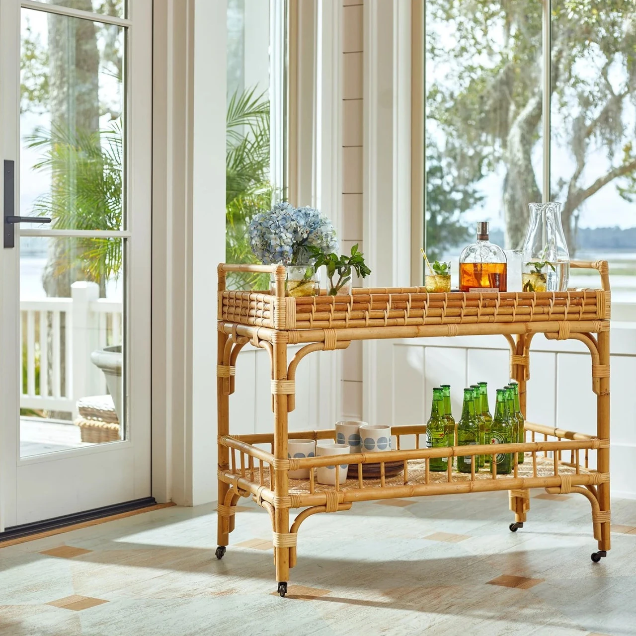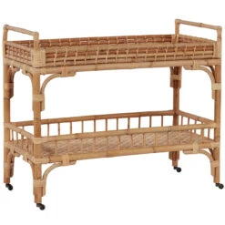Coastal cocktails coming right up! Celebrate and relax with the 5 O’Clock Bar Cart featuring a rattan, double-tiered body and casters for added convenience.