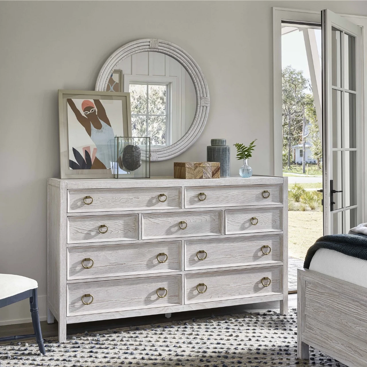 The Getaway Dresser is functional style at its finest, featuring nine spacious drawers accented with sleek bronze ring pulls.