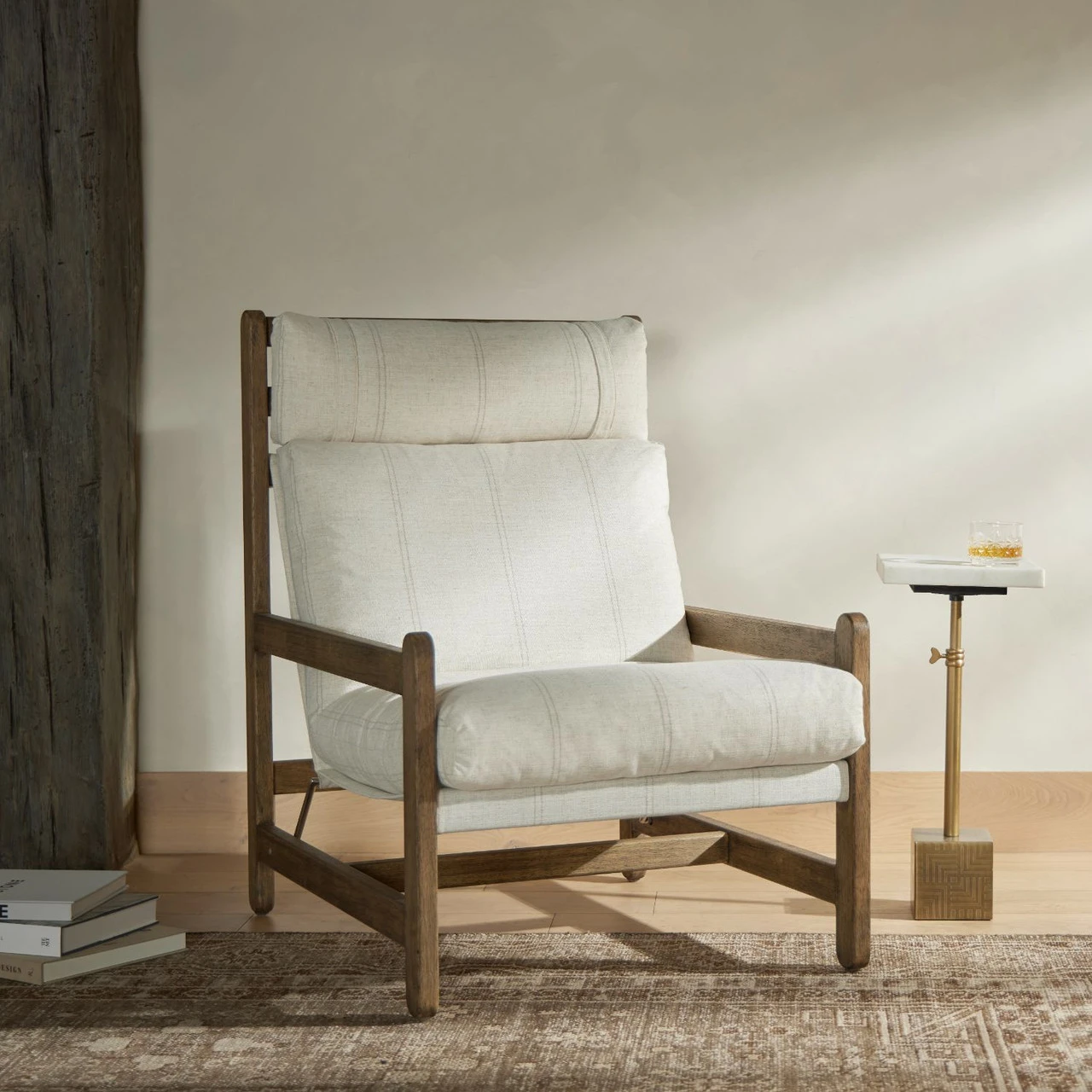 Safari styling brought to modern speed. Solid wire-brushed parawood frames linen-like seating upholstered in high-performance fabric. Performance fabrics are specially created to withstand spills, stains, high traffic and wear, ensuring long-term comfort and unmatched durability.