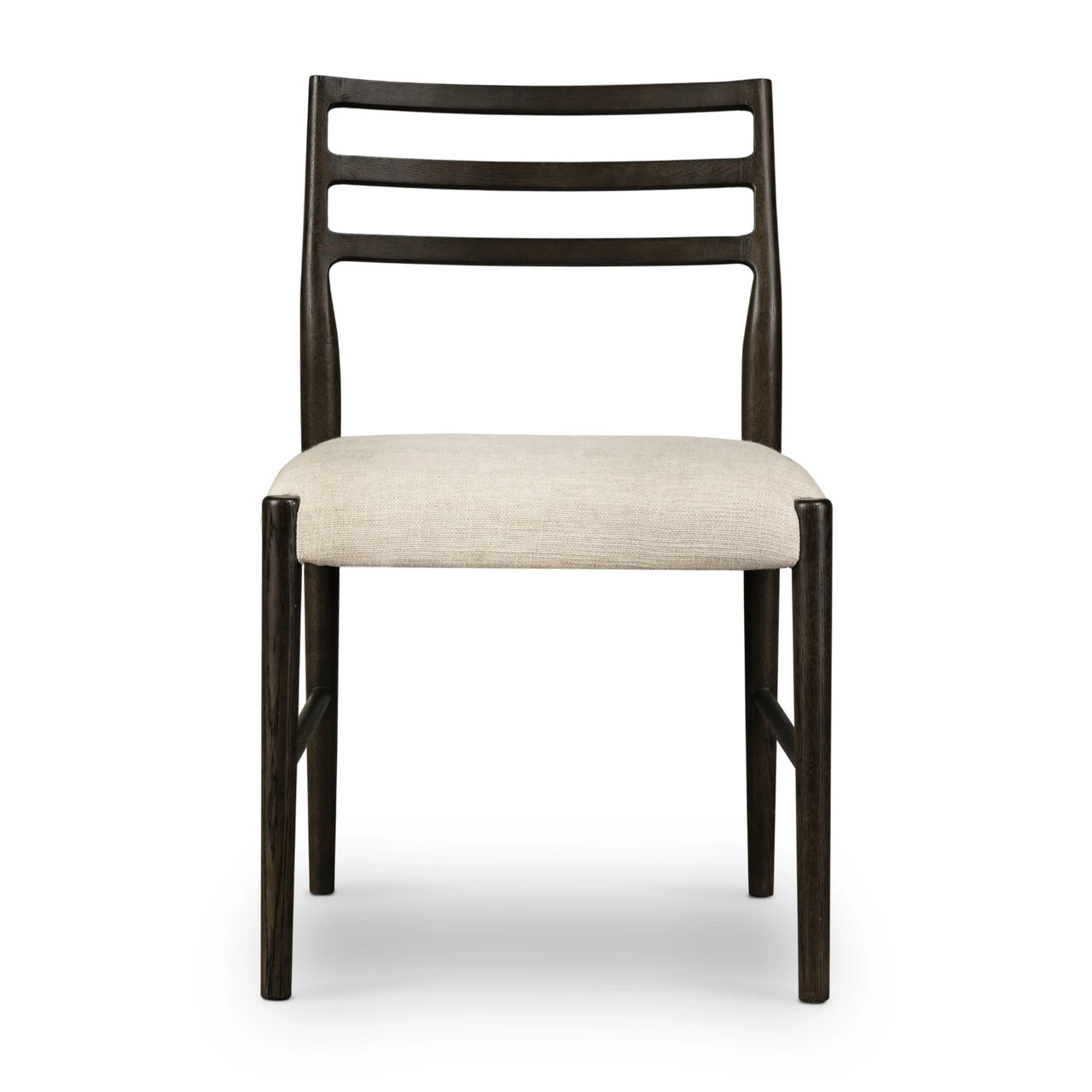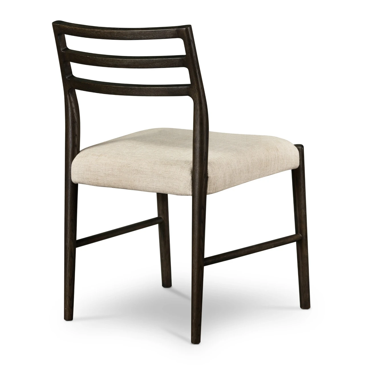 Fresh materials redefine the classic ladderback chair. Scrubbed oak framing is finished in carbon for a clean, open look with natural depth. Carbon-toned seating blends cotton with linen for a textured feel and comfortable sit.