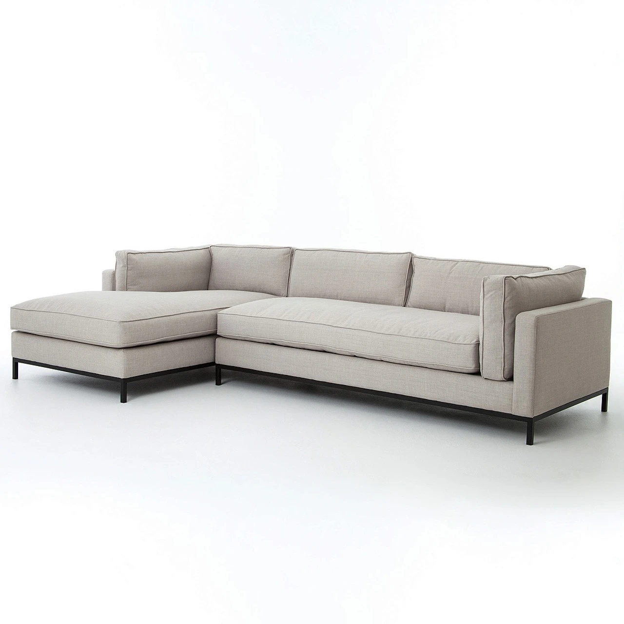 Flexible style and luxurious comfort in chic, family-friendly upholstery. This fashion-forward 2 piece sectional sofa mixes elegant fabrics with interesting design elements. Each modern sectional sofa features North American-made hardwood frames, steel suspension, ebony metal legs and hand craftsmanship for quality and comfort. Beautiful forms and delightful details make for luxurious, high-style seating. The Grammercy Linen Modern 2 Piece Sectional Sofa stands with dignified sophistication, lending the contemporary living room a refined accent.