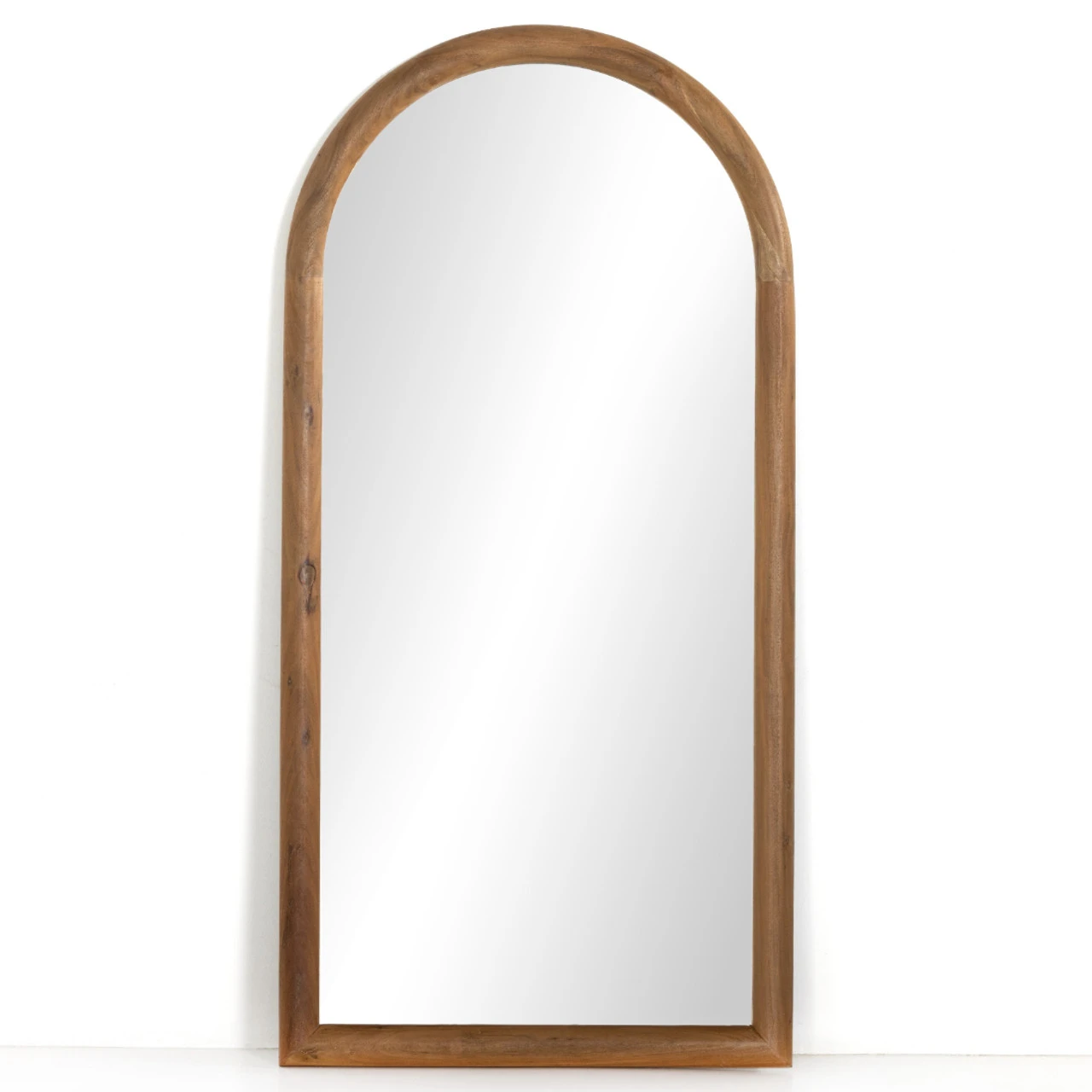 Solid acacia is smoked, shaped and smoothed to bring a vintage art deco-inspired frame to this mirror.