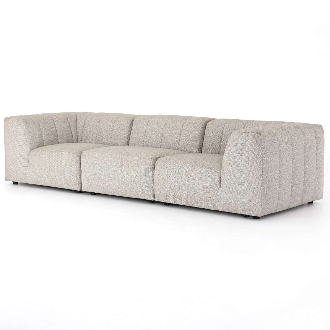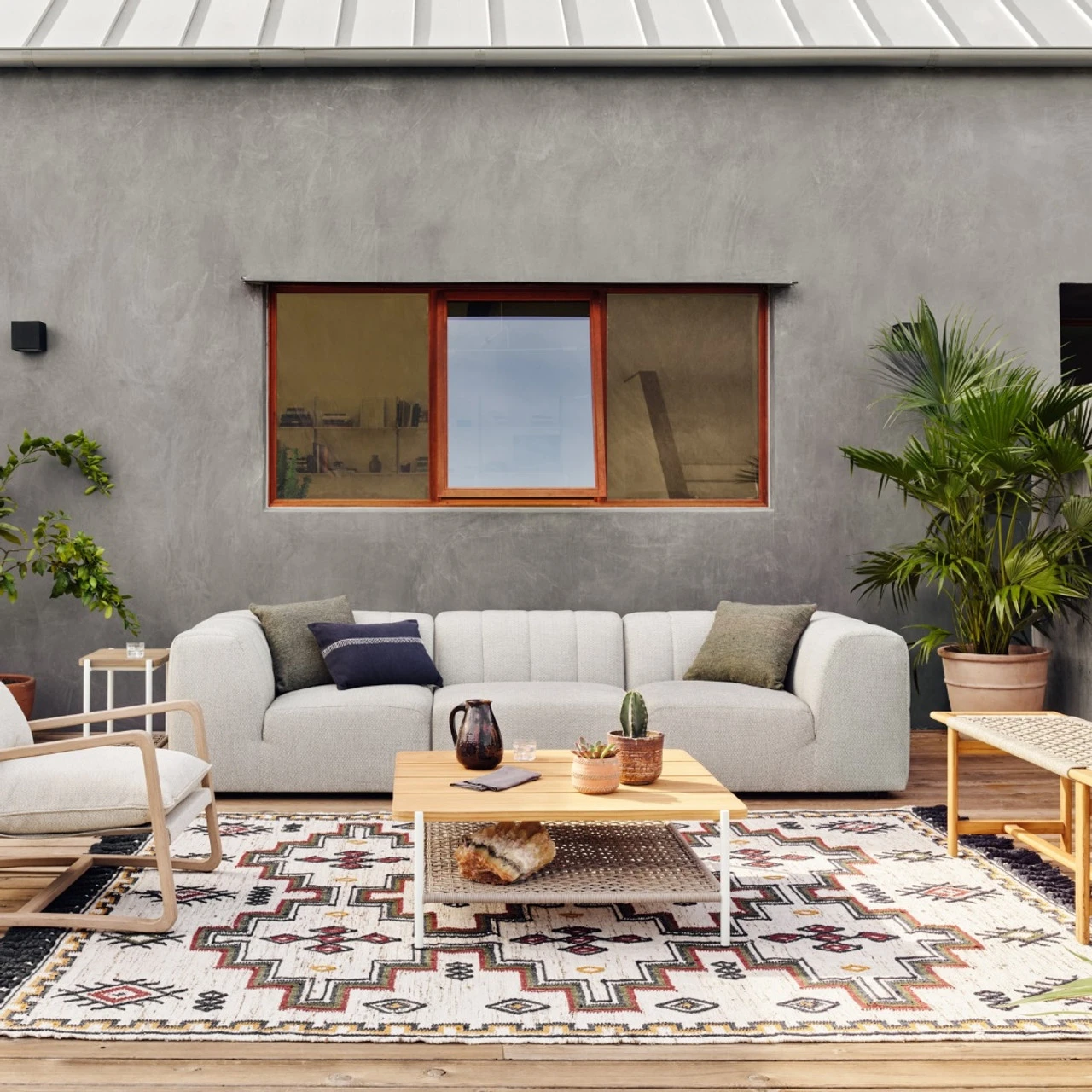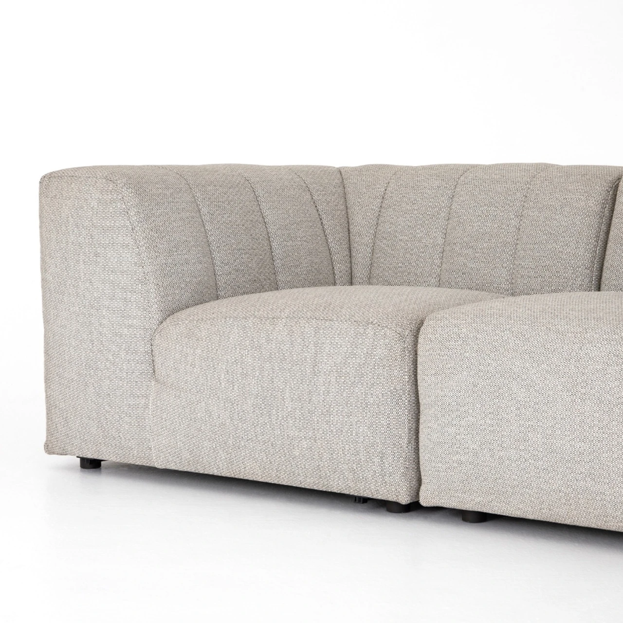 Trend-forward appeal, indoors or out. UV-resistant and water-repellent Sunproof fabric delivers stylish durability to outdoor-friendly teak and rope-based designs. Clean lines, X frames and palatable neutral tones boost the versatility of living and dining styles, with natural materials standing front and center. Perfectly proportioned for maximum comfort and support, this modular sectional sofa collection is defined by chunky, structured cushions, broad arms and channel tufting detail. Modular components are available individually, allowing you to customize the ideal sectional sofa configuration of your needs.