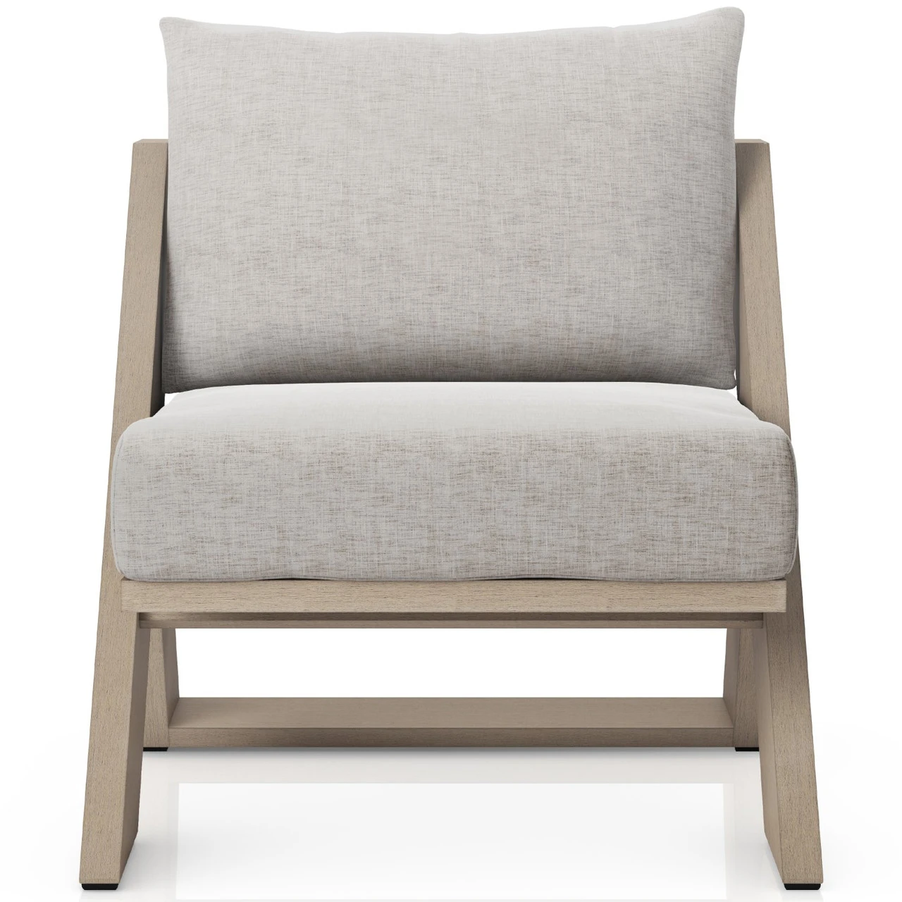 A stylish seating silhouette from any angle. Crafted from FSC-certified teak, a sharply angled frame hugs plush, thick cushioning in 100% Olefin, known for its UV-resistant, water-repellent and quick-drying abilities. Cover or store indoors during inclement weather and when not in use.
