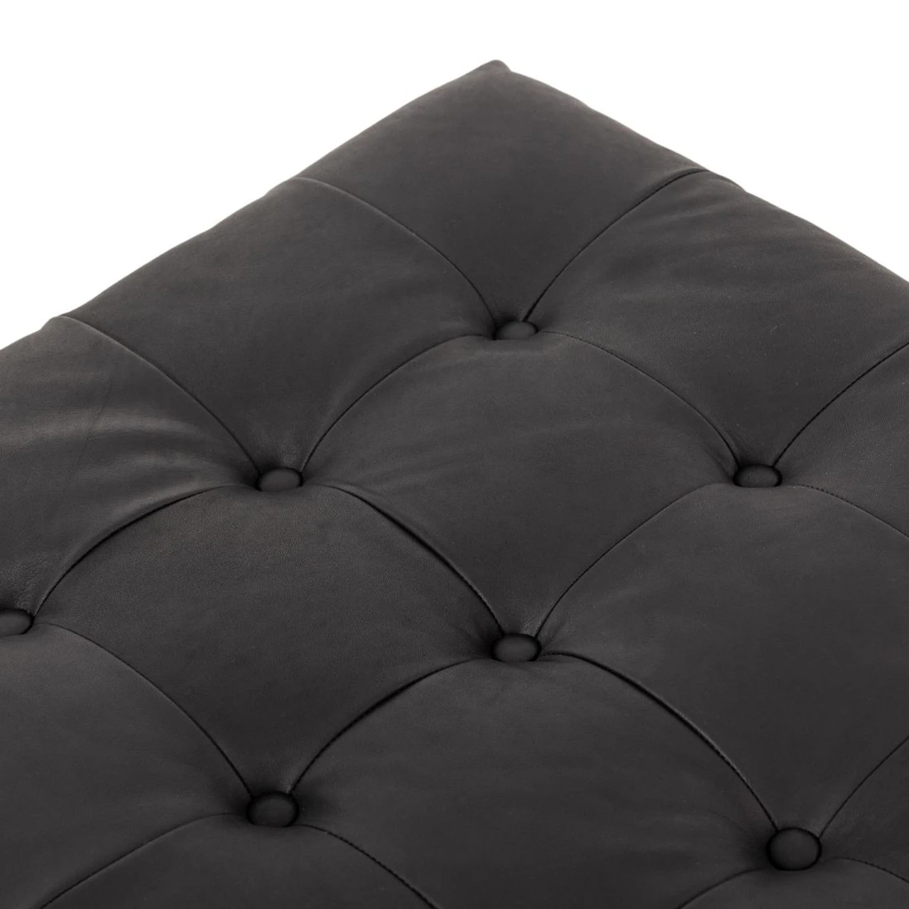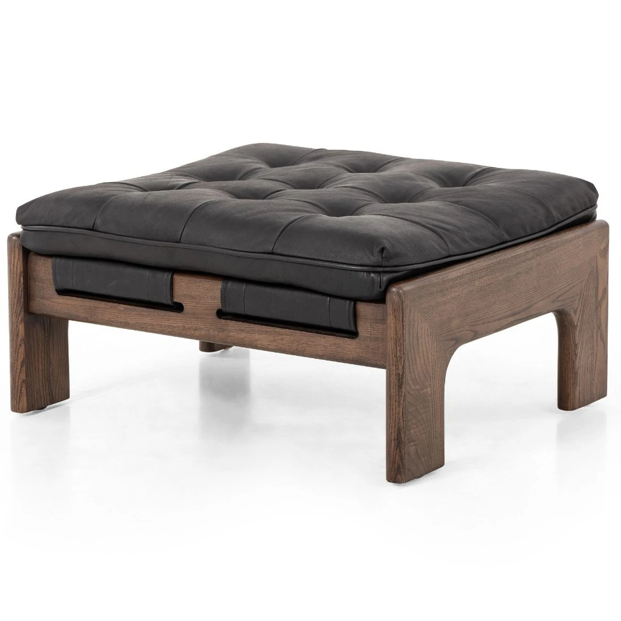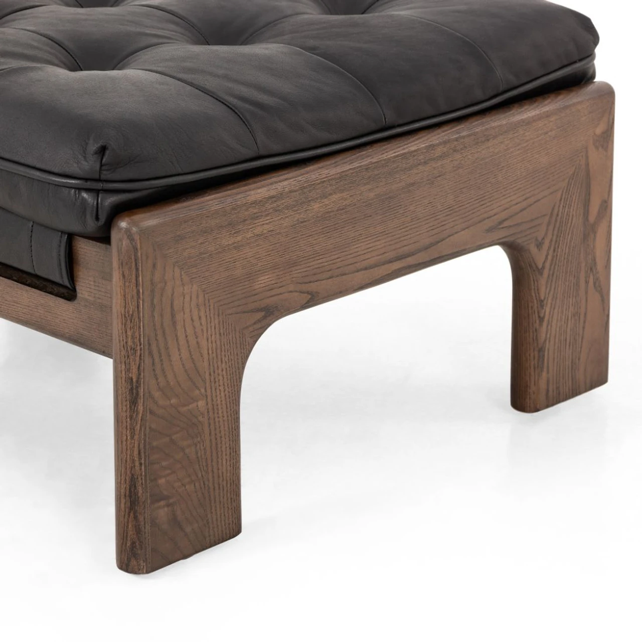 A Seventies-era style inspired by a flea market find, a dramatically tufted sling seat of black top-grain leather angles at the just-right pitch for total comfort, with wide, brown ash framing. Sourced from one of the oldest family-owned tanneries in Italy’s Bassano del Grappa, heirloom leather is salvaged and processed from upcycled hides featuring an abundance of natural markings, scars and color variations. The result? Beautifully supple, buttery soft hides with an unmatched depth of color and richness, and an authentic lived-in look.