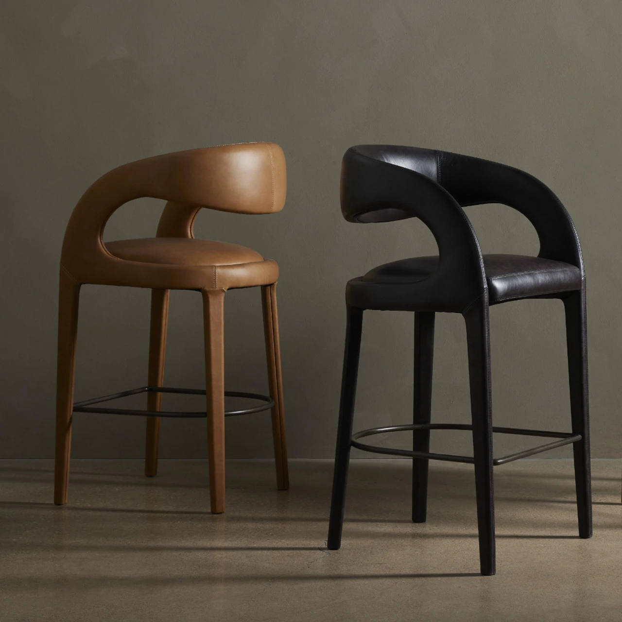 Strike a pose. Curved and finely sculpted, a buttery-black top-grain leather stool makes for a luxe addition to the well-styled bar or kitchen counter.