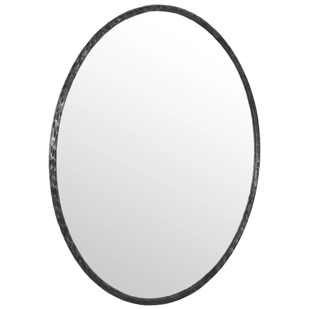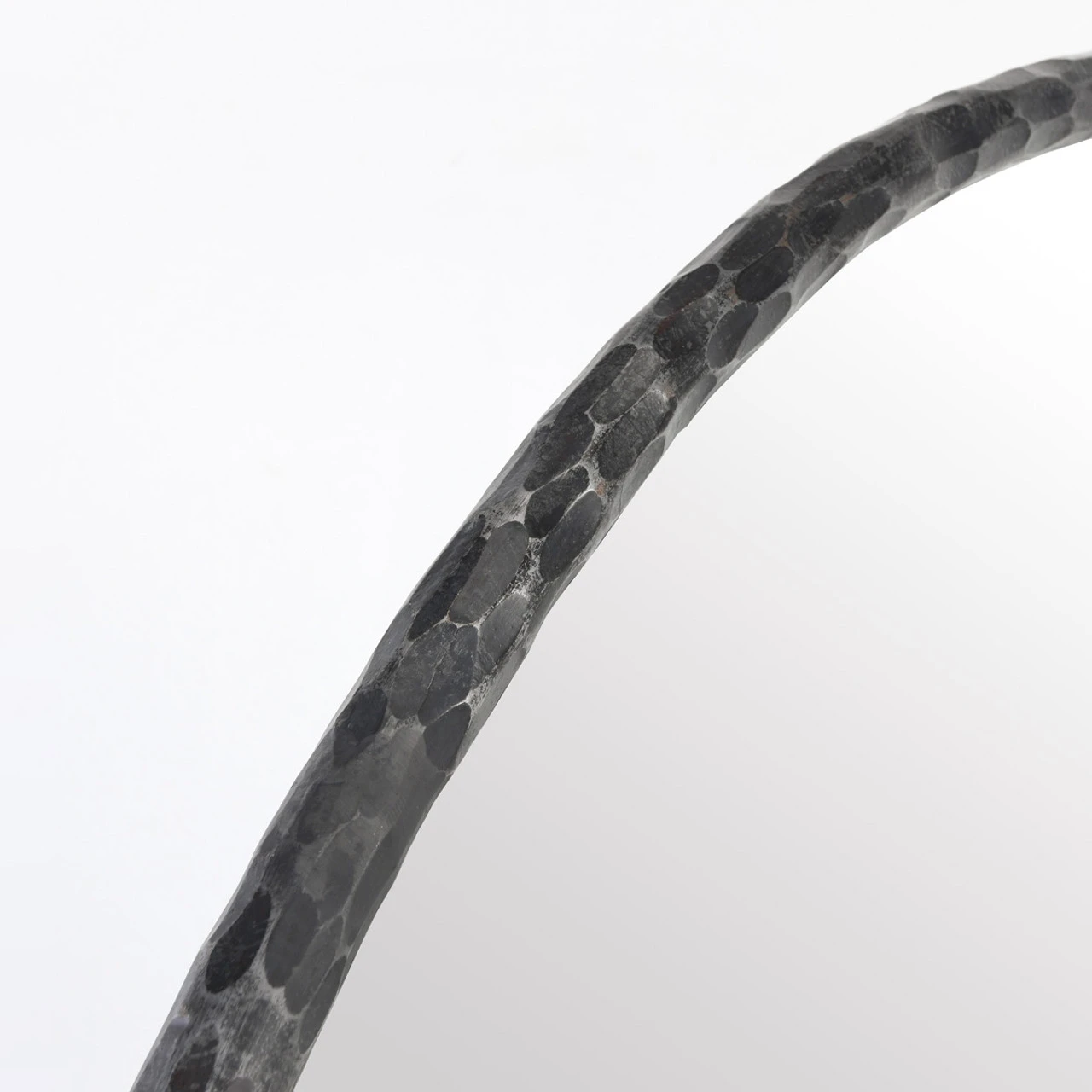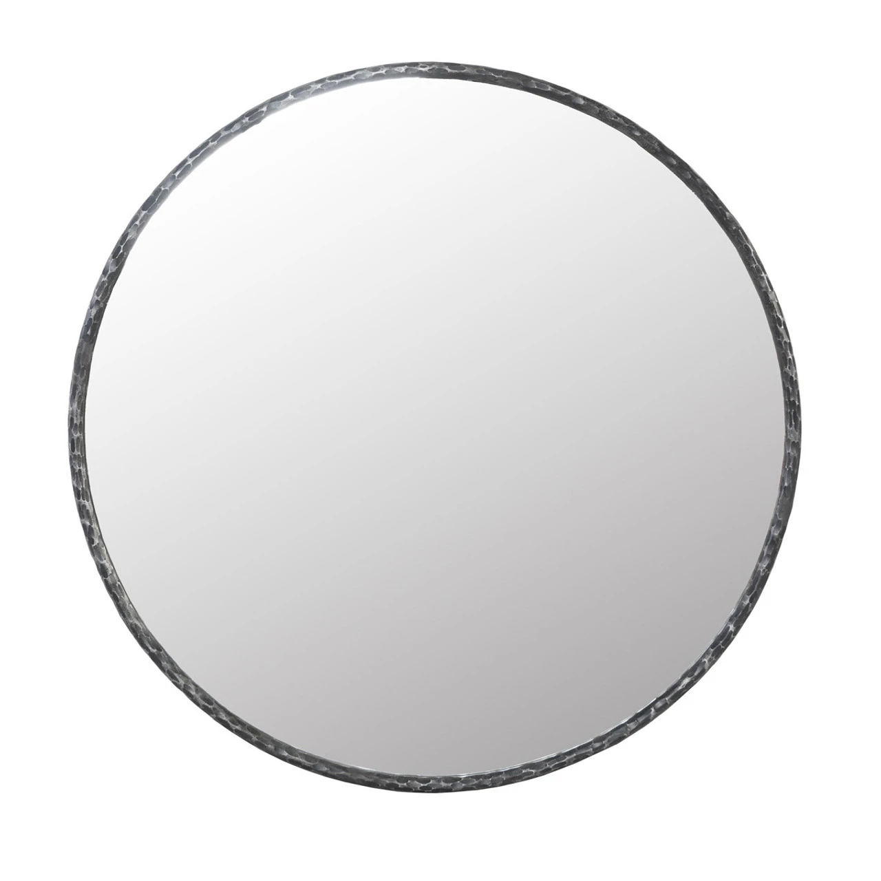 With its hammered metal frame, this circular mirror offers a chic, minimalist look that suits a variety of styles.