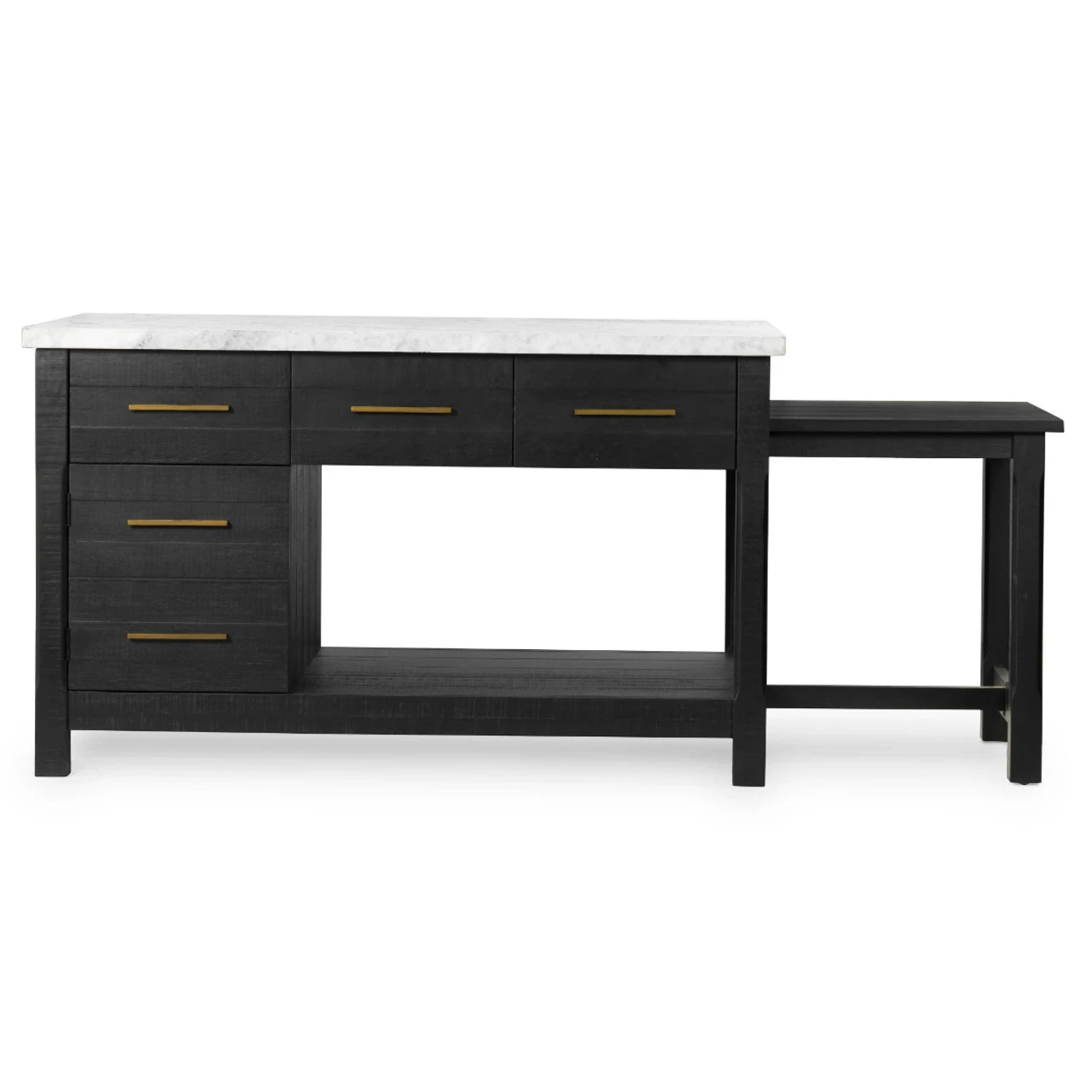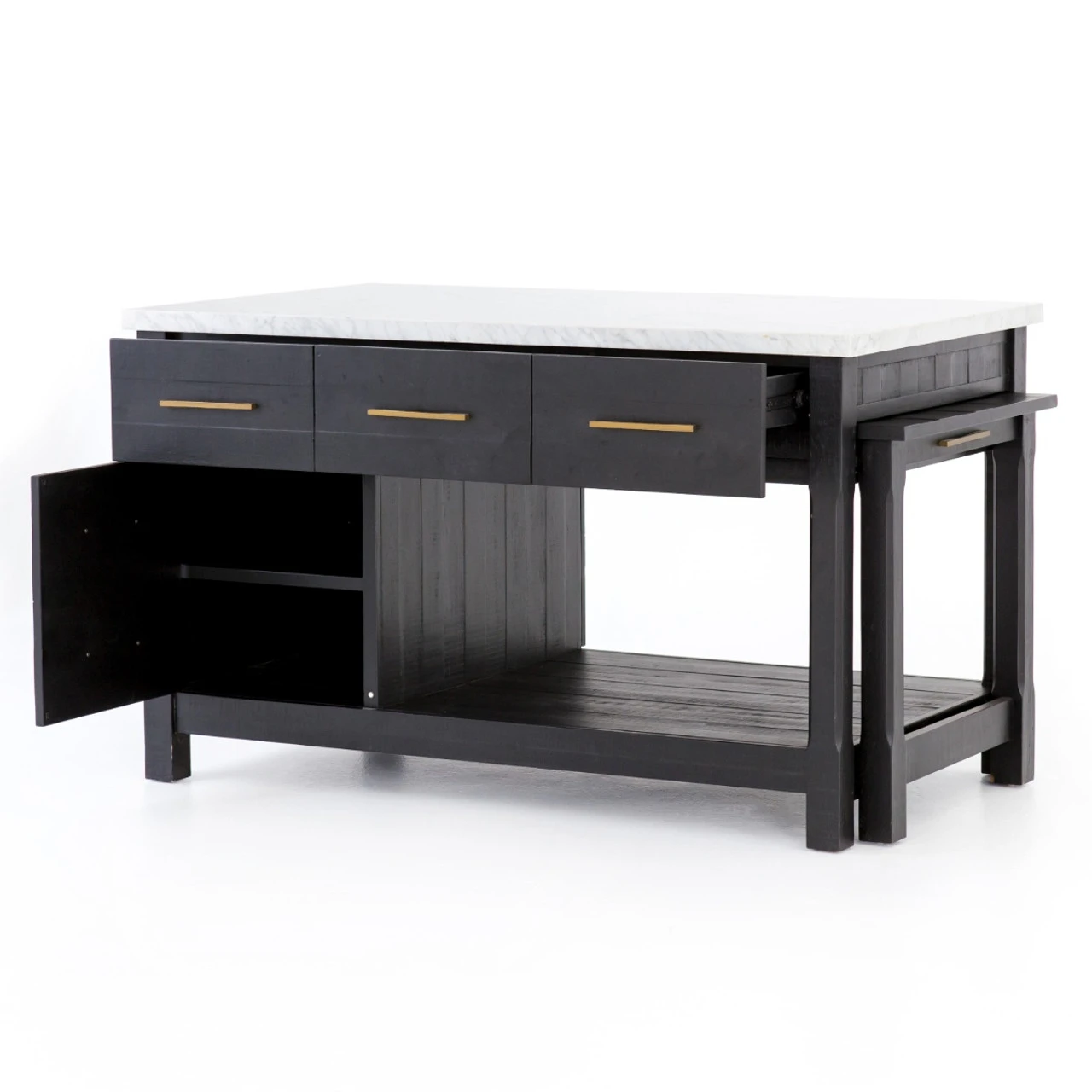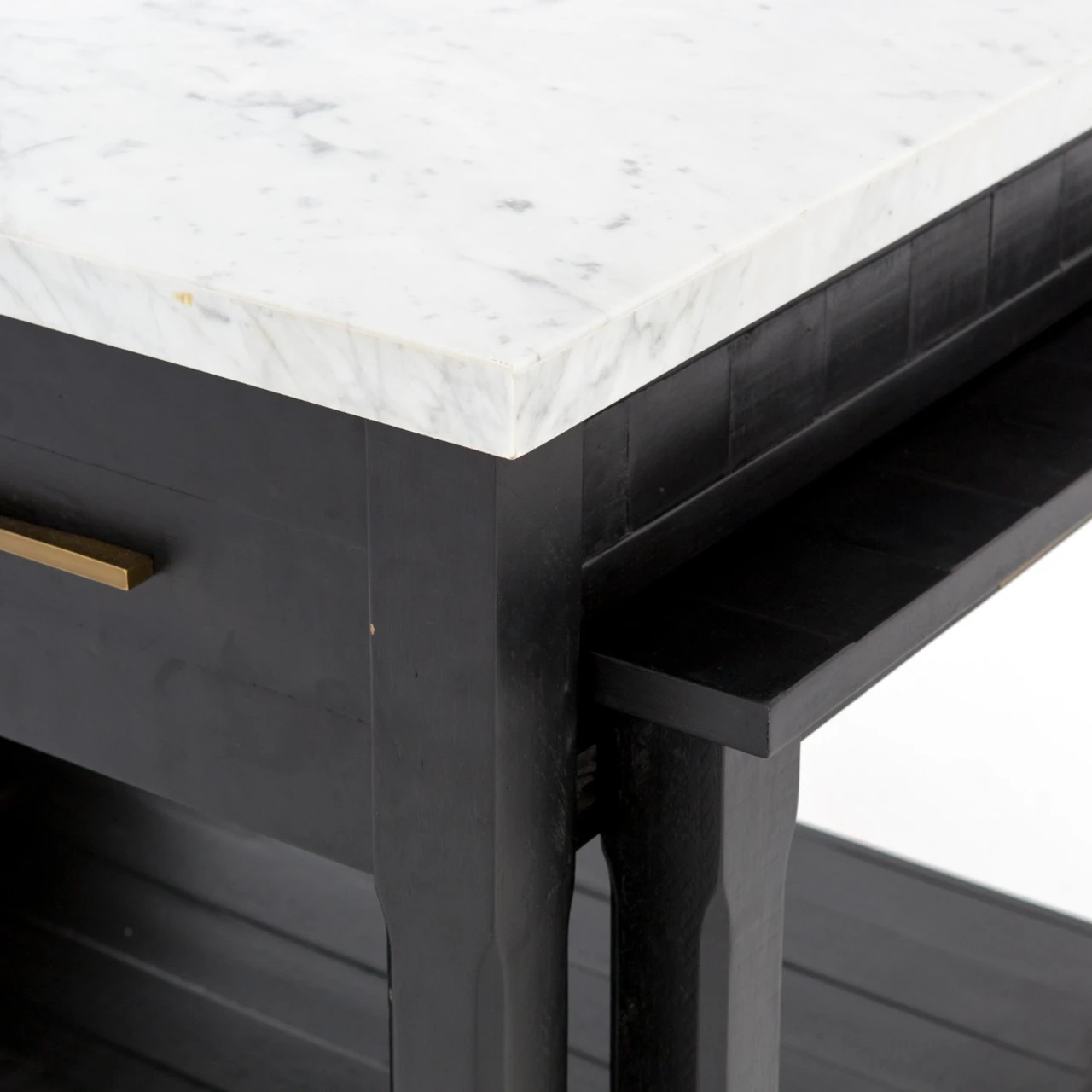 Add a functional anchor to any kitchen. Black acacia wood and white Italian marble mix into modern decor, offering extra space for cooking or entertaining. Given its handmade and hand-finished nature, variations and imperfections in the finish are to be expected and celebrated.