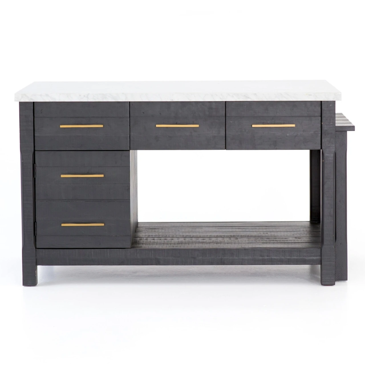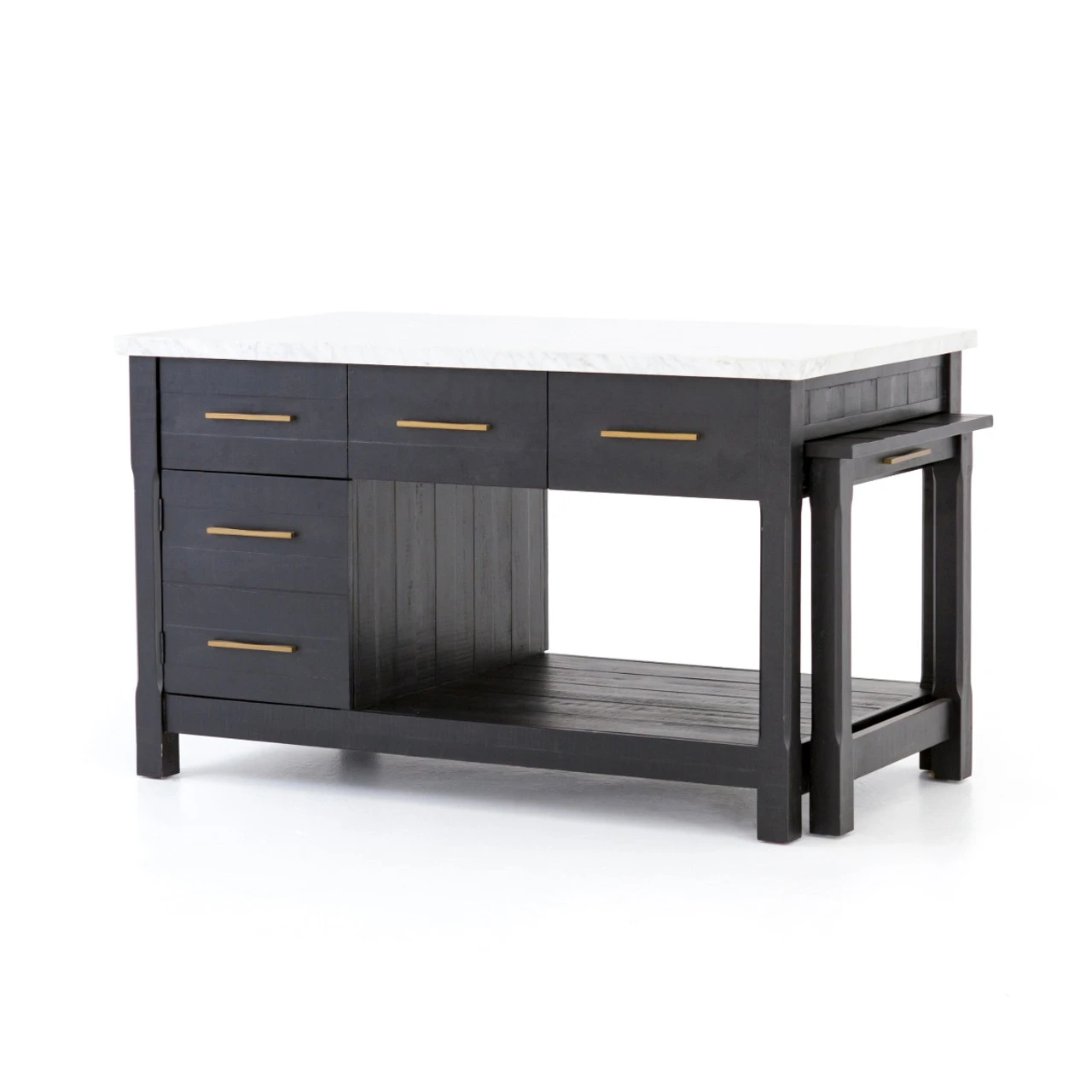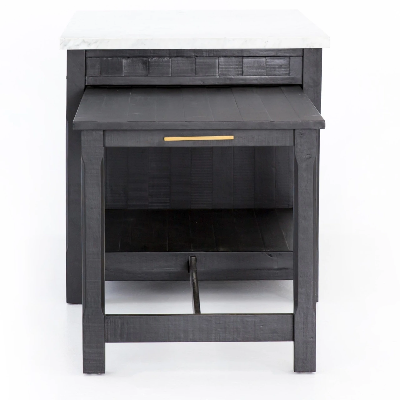 Add a functional anchor to any kitchen. Black acacia wood and white Italian marble mix into modern decor, offering extra space for cooking or entertaining. Given its handmade and hand-finished nature, variations and imperfections in the finish are to be expected and celebrated.