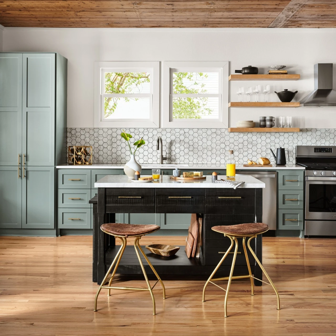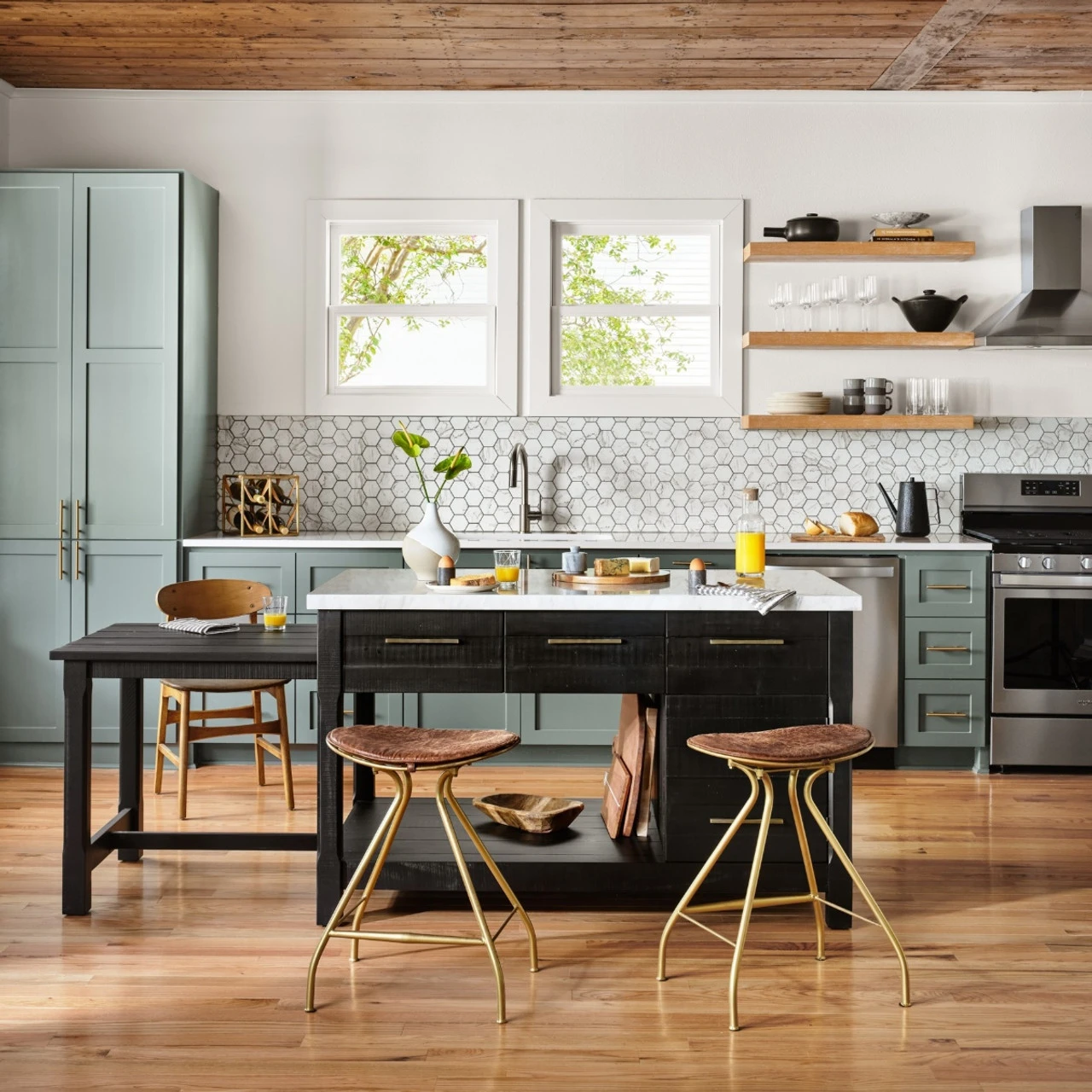 - Kitchen Island: 60″ wide x 36″ deep x 36″ high; extends to 102″ wide