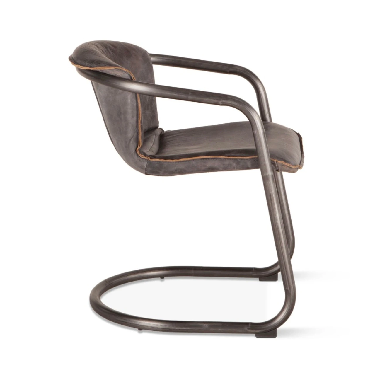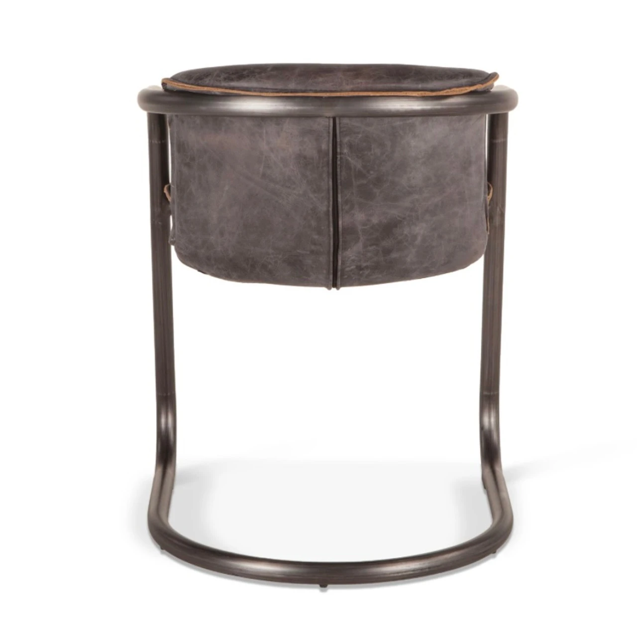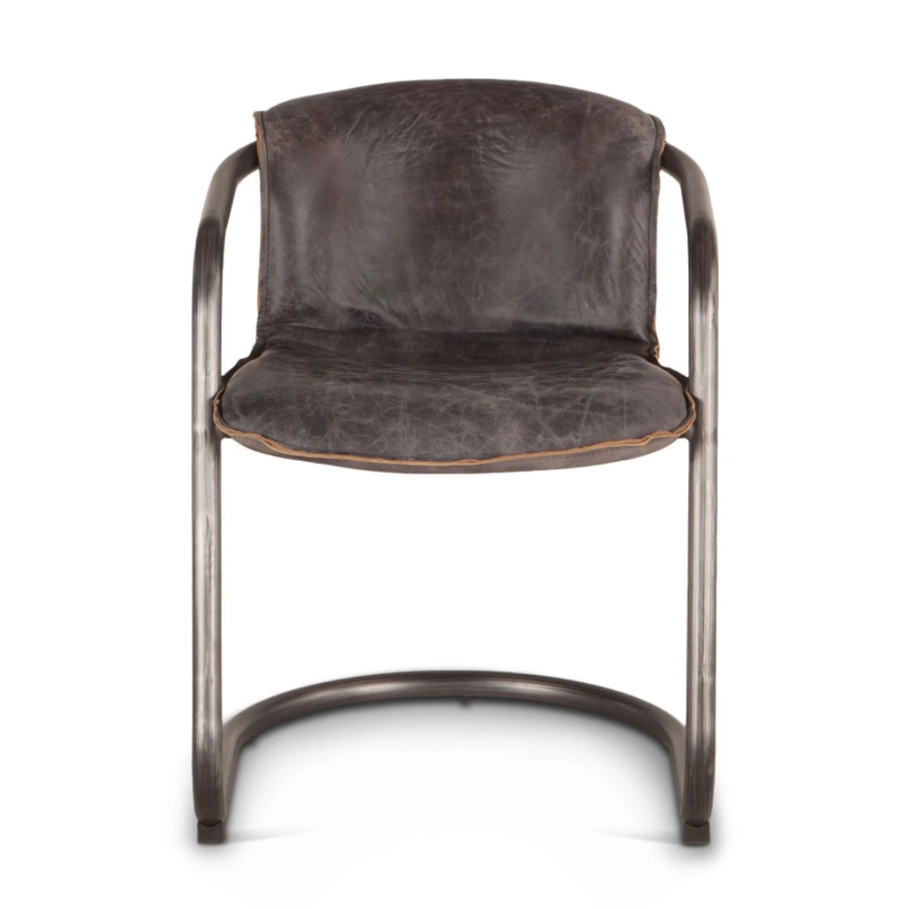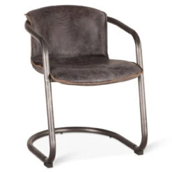 Modern, rustic and industrial. Our Industrial Loft Metal and Leather Dining Chair features sleek, modern Italian styling with a distinctly casual appeal. Upholstered in 100% top-grain in gently distressed leather. The U-shaped steel frame and legs in rustic brushed nickel and antique bronze finish include levelers with caps to protect the floors and a footrest.