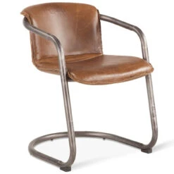 Modern, rustic and industrial. Our Industrial Loft Metal and Leather Dining Chair features sleek, modern Italian styling with a distinctly casual appeal. Upholstered in 100% top-grain in gently distressed leather. The U-shaped steel frame and legs in rustic brushed nickel and antique bronze finish include levelers with caps to protect the floors and a footrest.