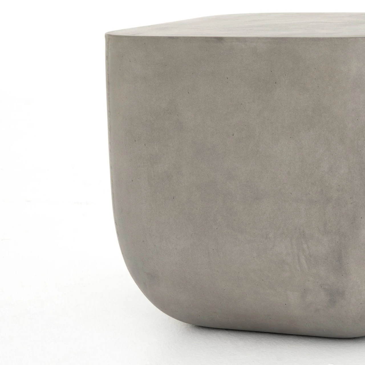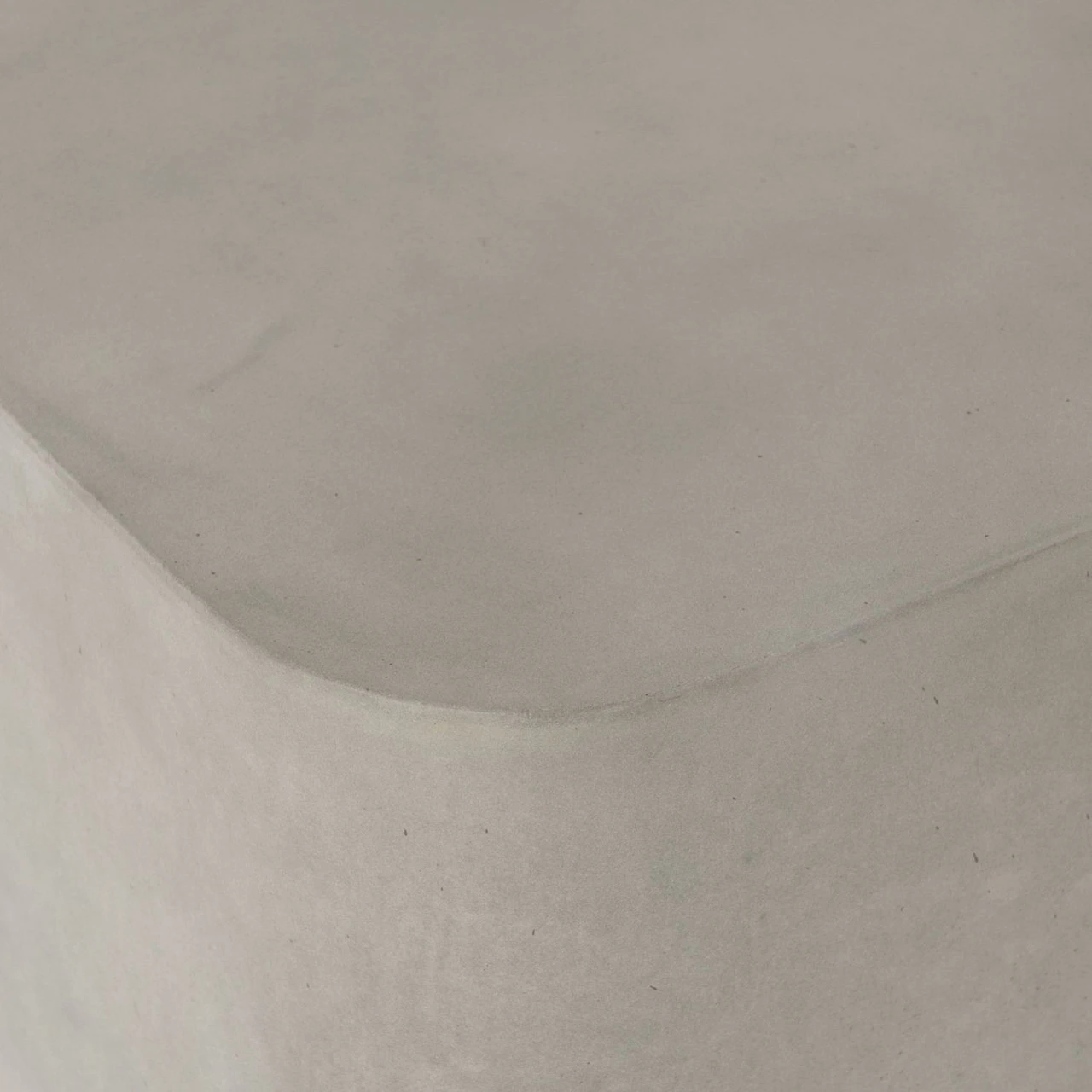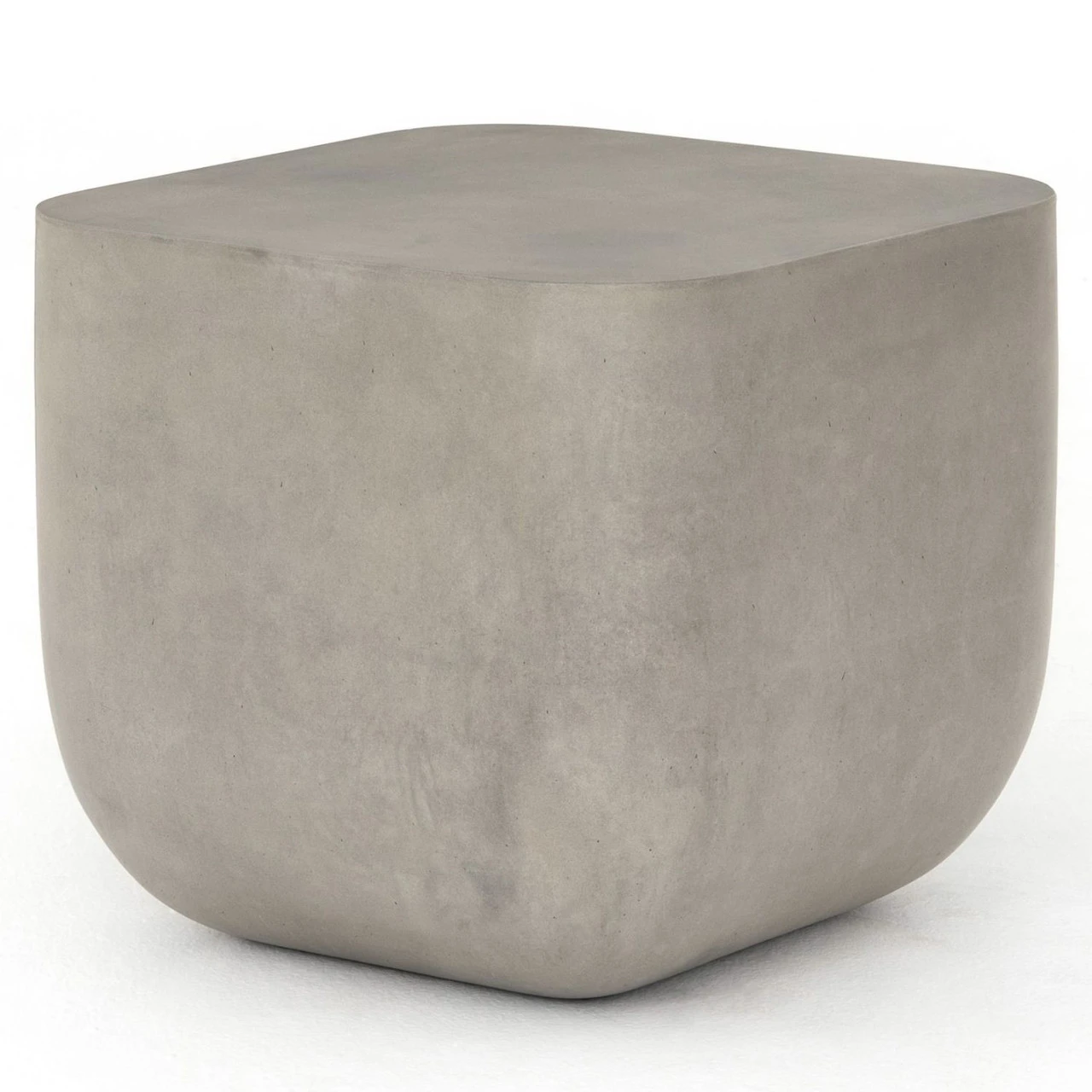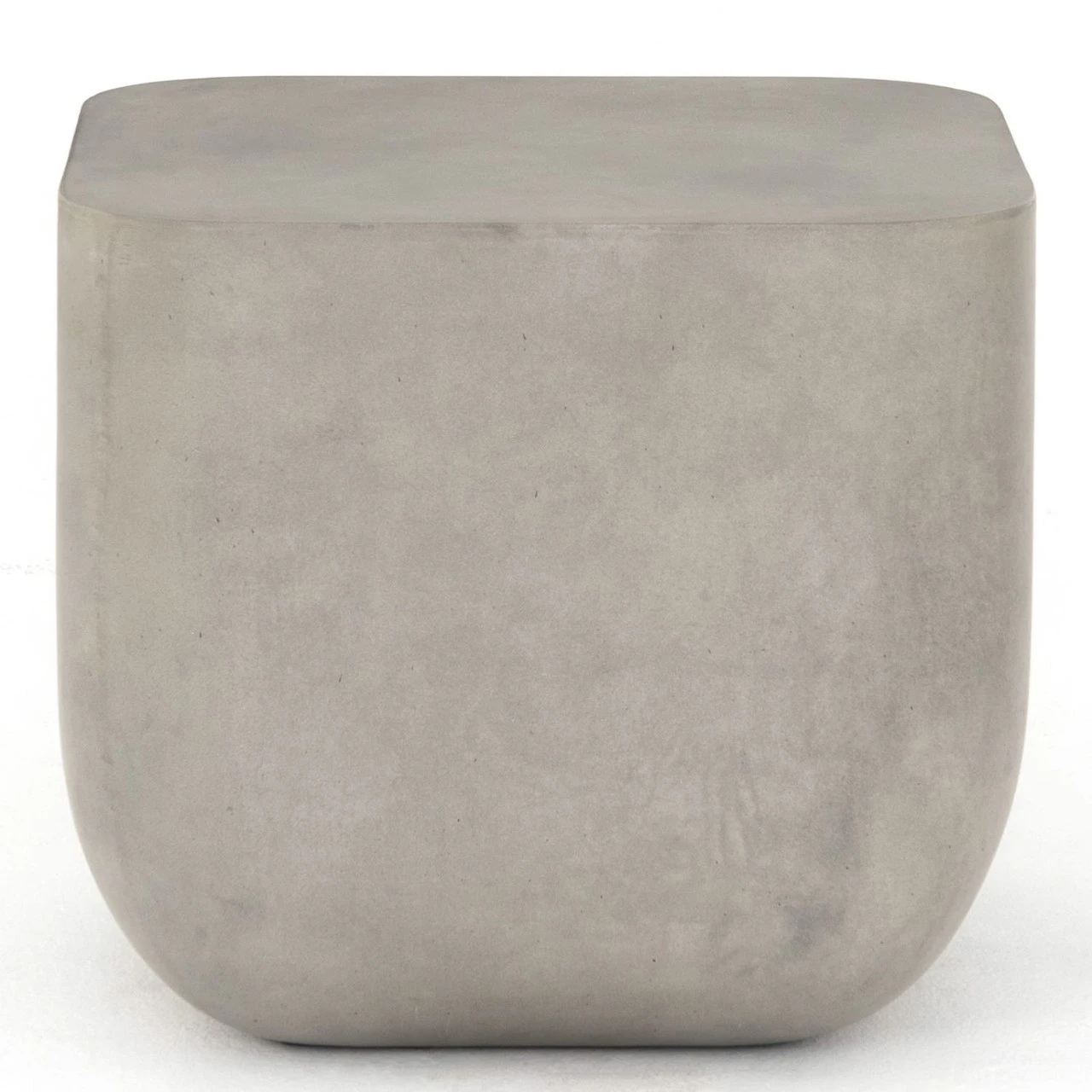Grey-finished concrete and soft square shaping make for an effortlessly cool end table, indoors or out. Cover or store inside during inclement weather and when not in use.