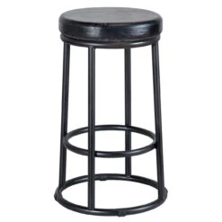 Combining a black iron base with a reclaimed wood seat, this counter stool brings a rugged charm to any setting. A footrest offers comfort while the hand-finished black seat preserves the character of reclaimed wood. Choose from multiple colors.