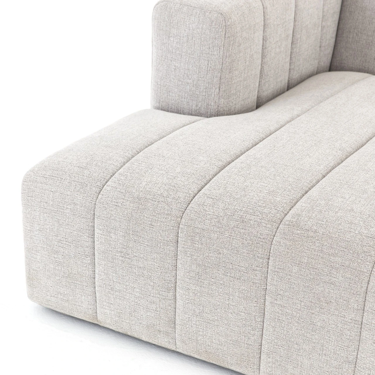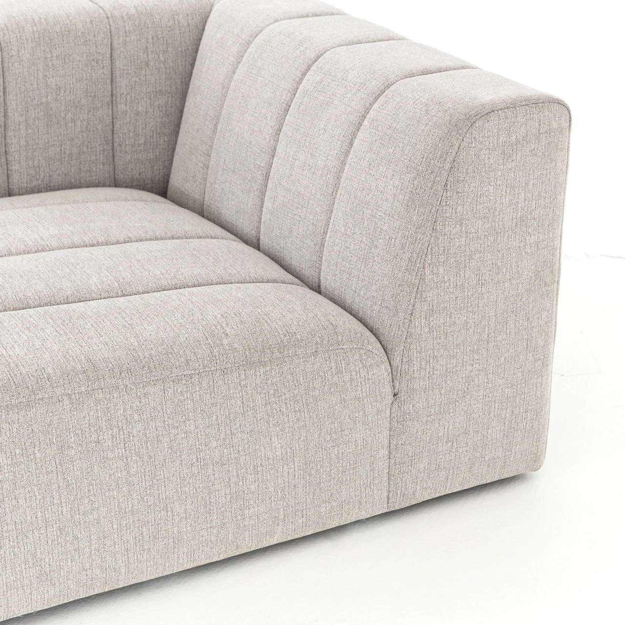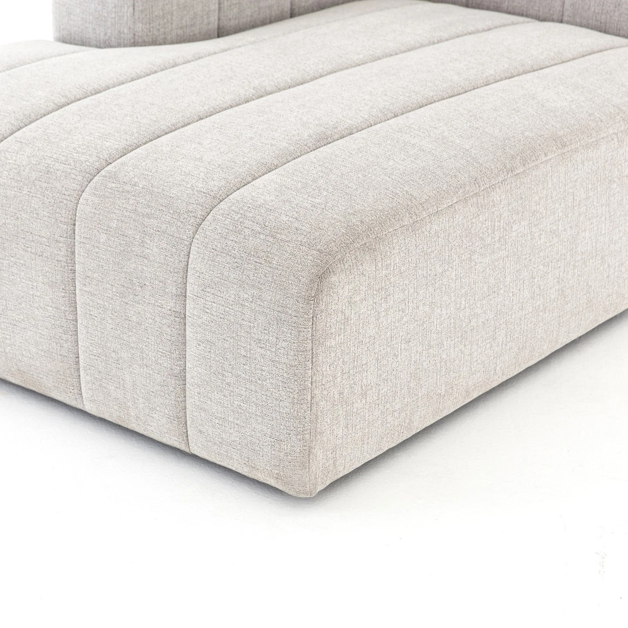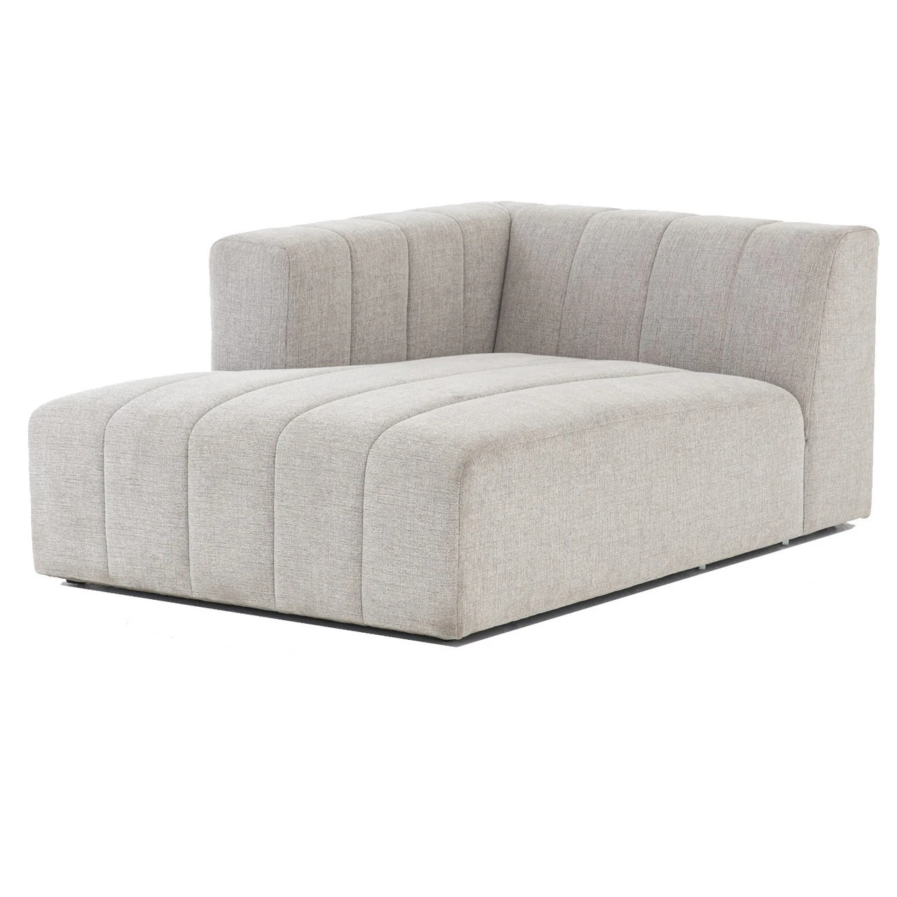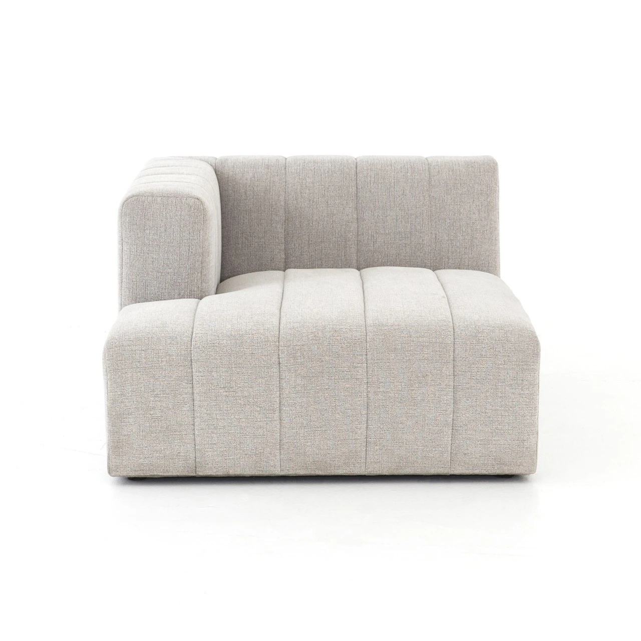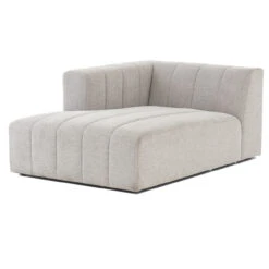 Wide,ย low-slung and luxurious, ourย Langham Channel Tufted LAF Sectional Chaise offers a modish Italian silhouette that’s both versatile and livable.ย Wide, vertical channeling brings a textural sense to gray hue sandstone-colored durable upholstery. Match thisย Left arm facing chaise withย individuallyย available coordinating modular components to create the ideal modular sectional sofa combination for any space.ย Whether you live in a four-bedroom house, or a one-room city apartmentย this retro modern modular sectional will fitย right in.