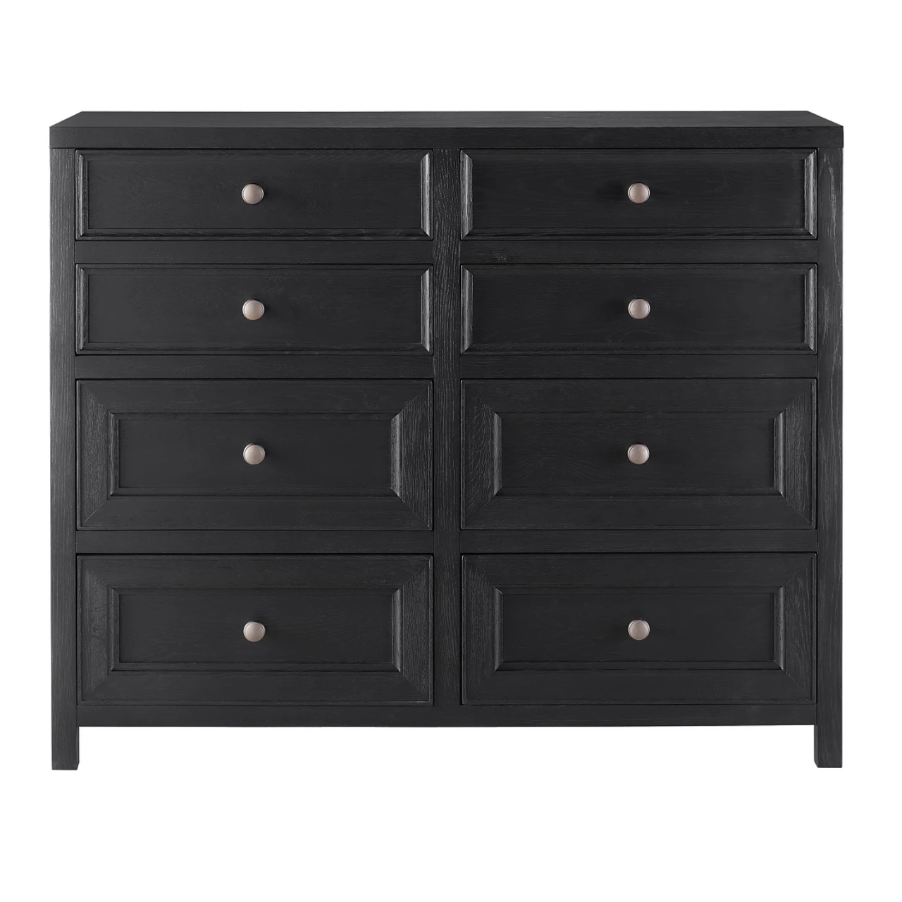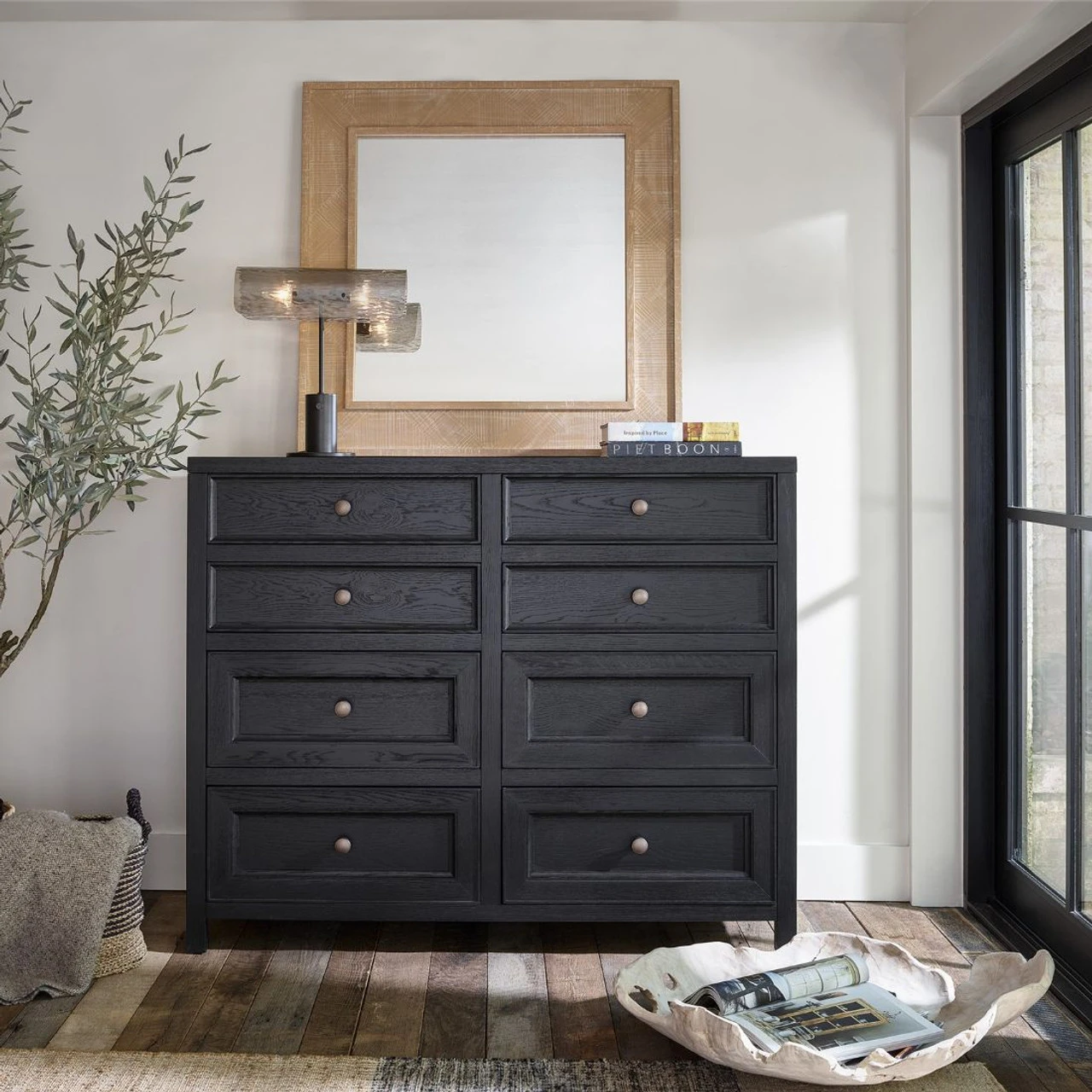 The ultimate storage furnishing, the Larson Dresser features carved details on each drawer front, bronze knob hardware and a charcoal finish, creating a stylishly simple storage piece.
