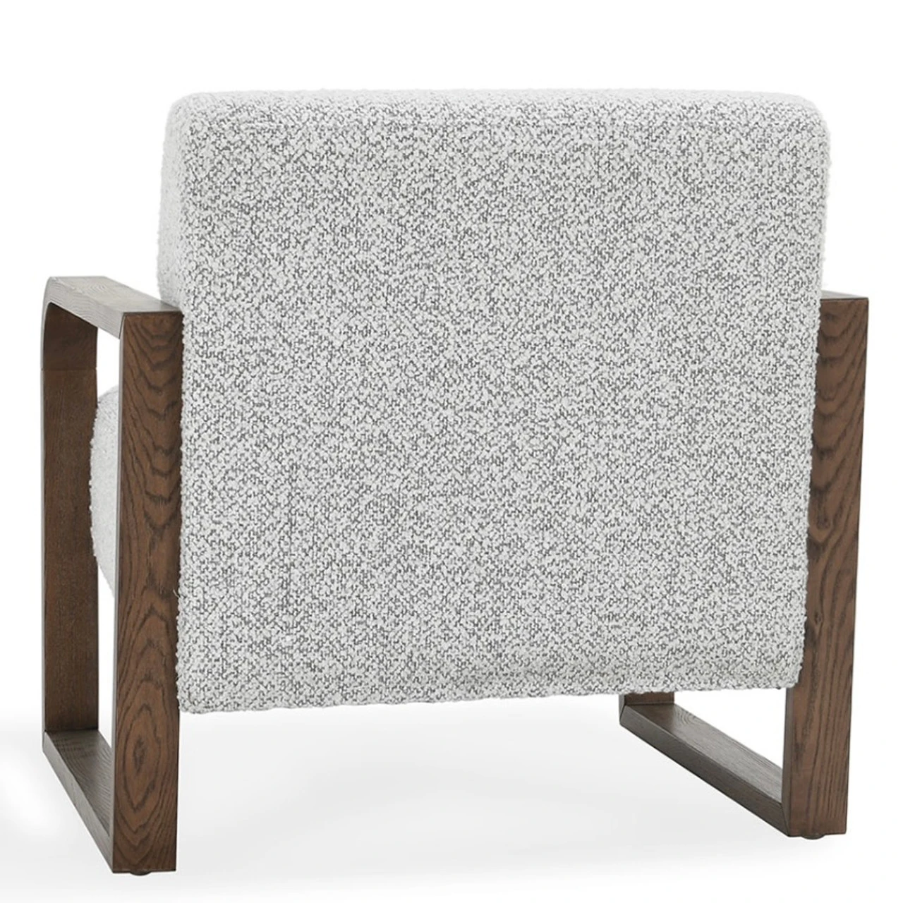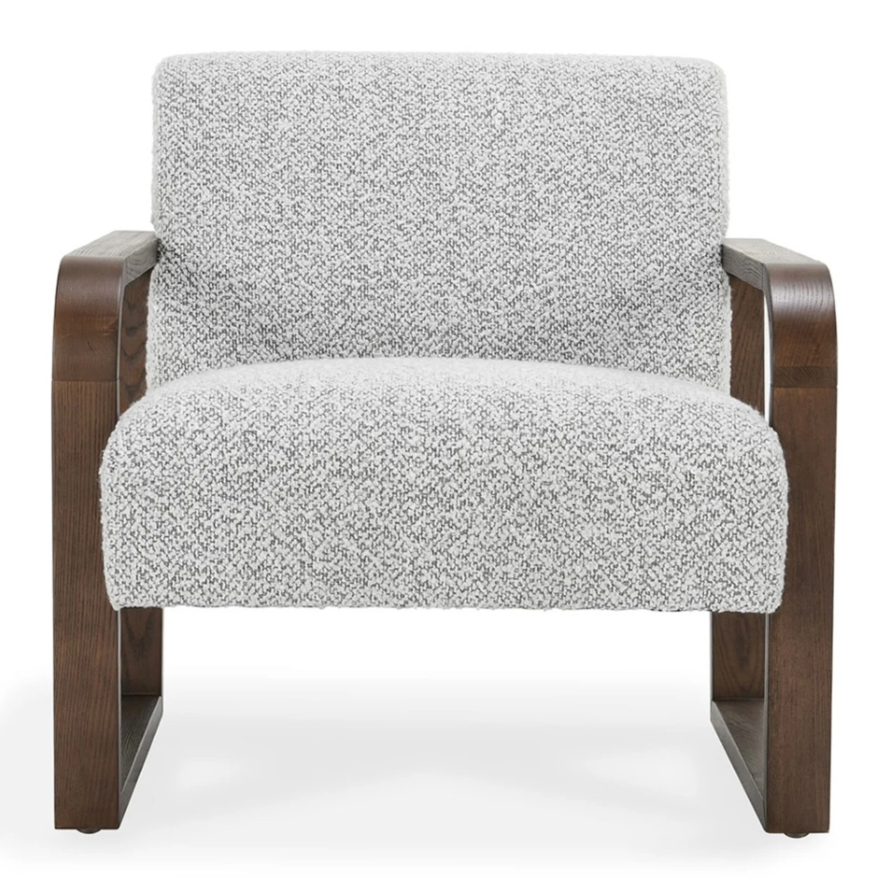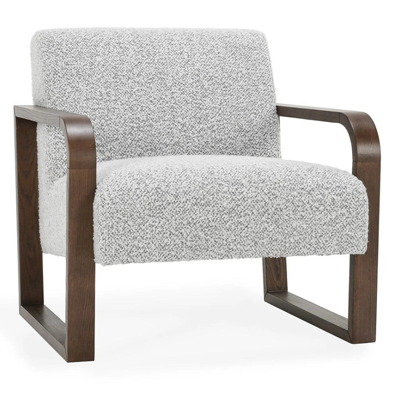 - Upholstered using a soft, boucle fabric made with variegated yarns that provides a heathered and textured appearance.
