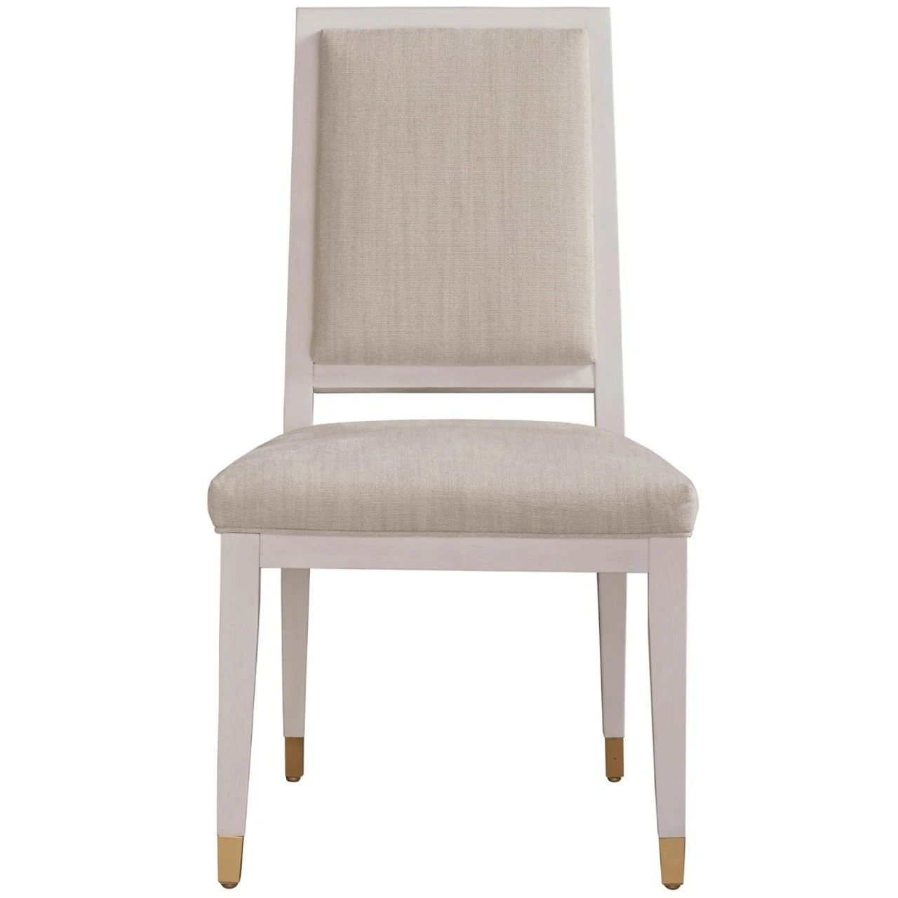 Sprinkle style around your dining table with the Love Joy Bliss Side Chair, which is upholstered in a Woven Pewter fabric, features an Alabaster finish, and is perfected with soft gold metal caps on each leg.