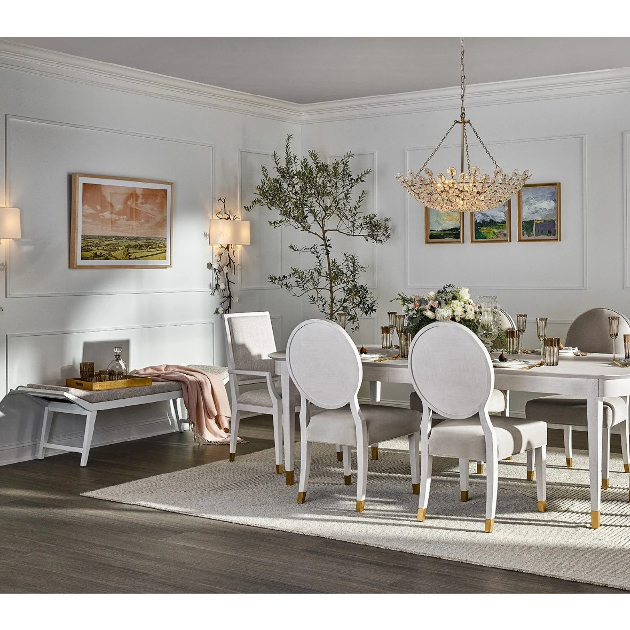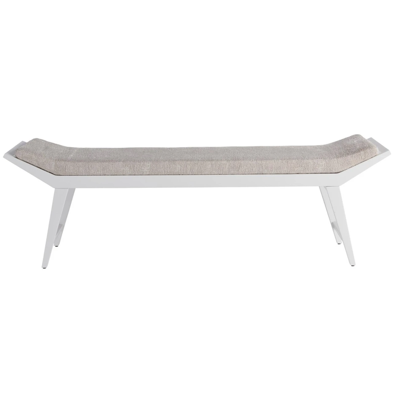 Equally beautiful as a stand-alone piece or at the foot of a bed, the Love Joy Bliss Bench evokes a casual elegance with a Bubbly Champagne upholstered seat nestled within a subtly curved white lacquer body.