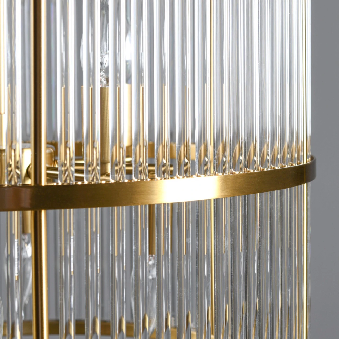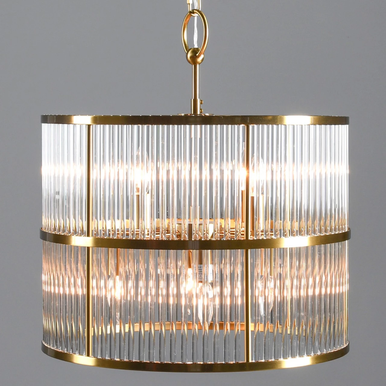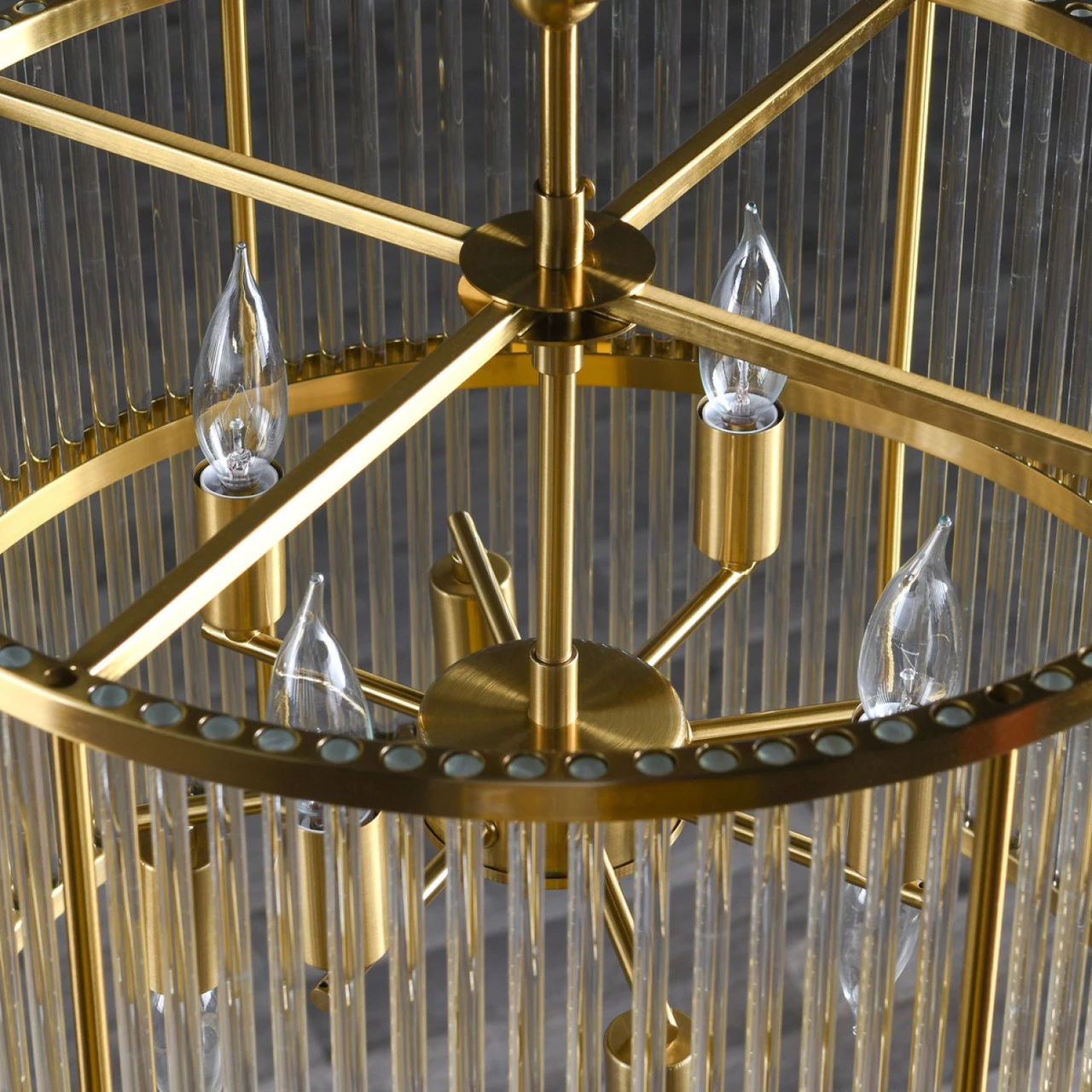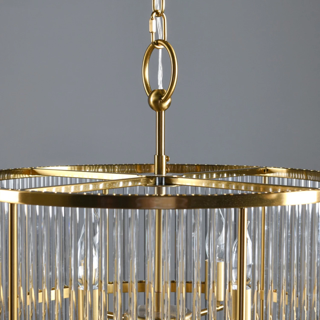 Designed in the classic cage style, this chandelier offers an elegant look that complements any style. A gleaming brass finish infuses a warm shine while the glass cage creates a dazzling effect as it refracts and reflects light around your space.