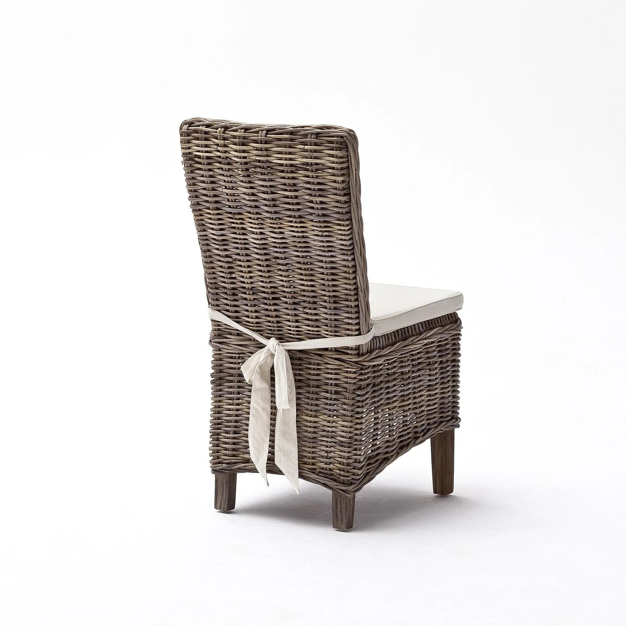Our Coastal Beach style dining side chair is a modern take on the classic rattan chair. Sleek, elegant, and textured are words that jump to mind upon encountering the Mai Coastal Wicker Dining Chair. Hand woven rattan, wrapped around an undulating mahogany wood frame, is presented in contrasting directional weaves, creating visual interest with simplicity. The included cushion has a 100% cotton cover.