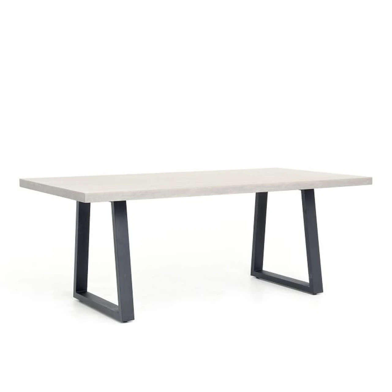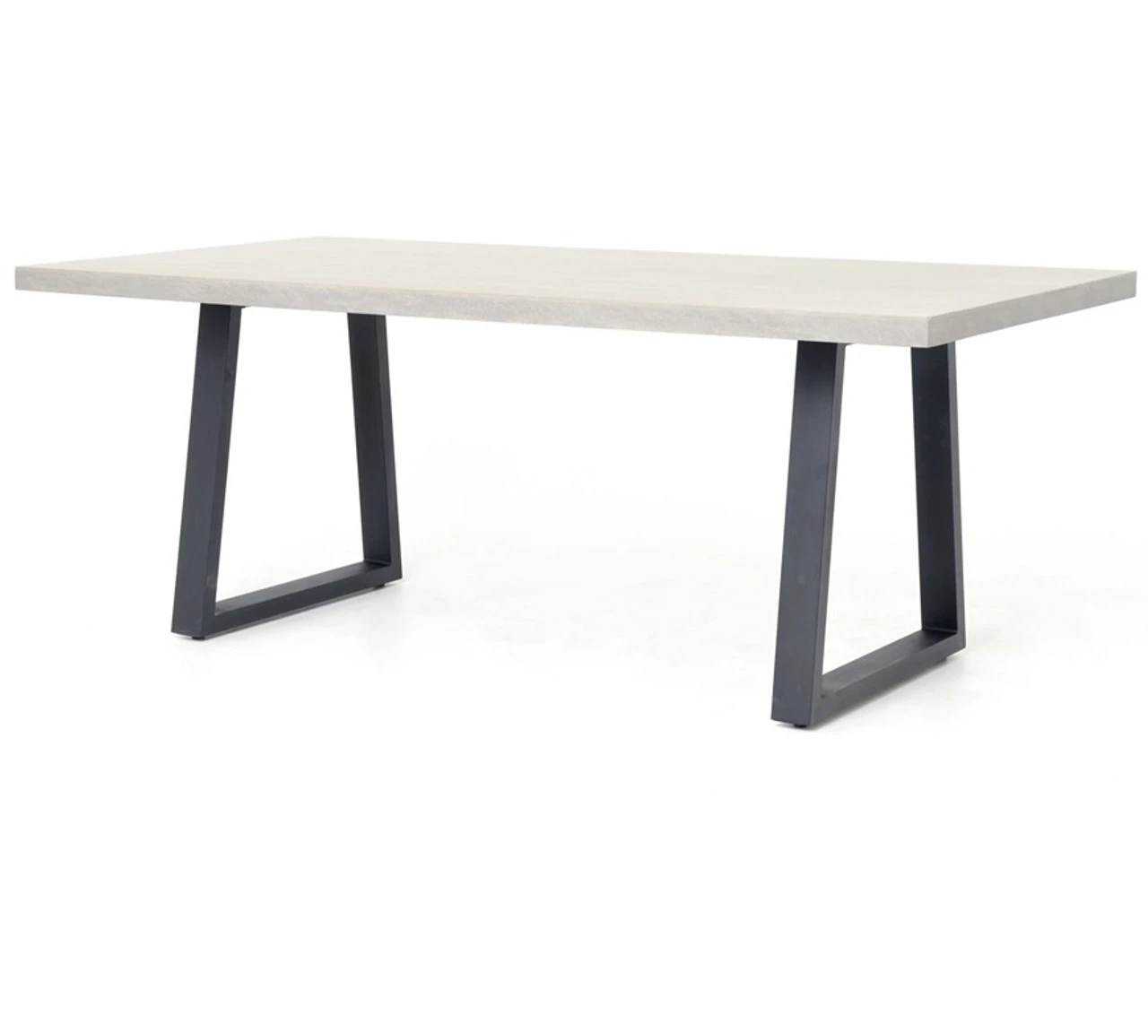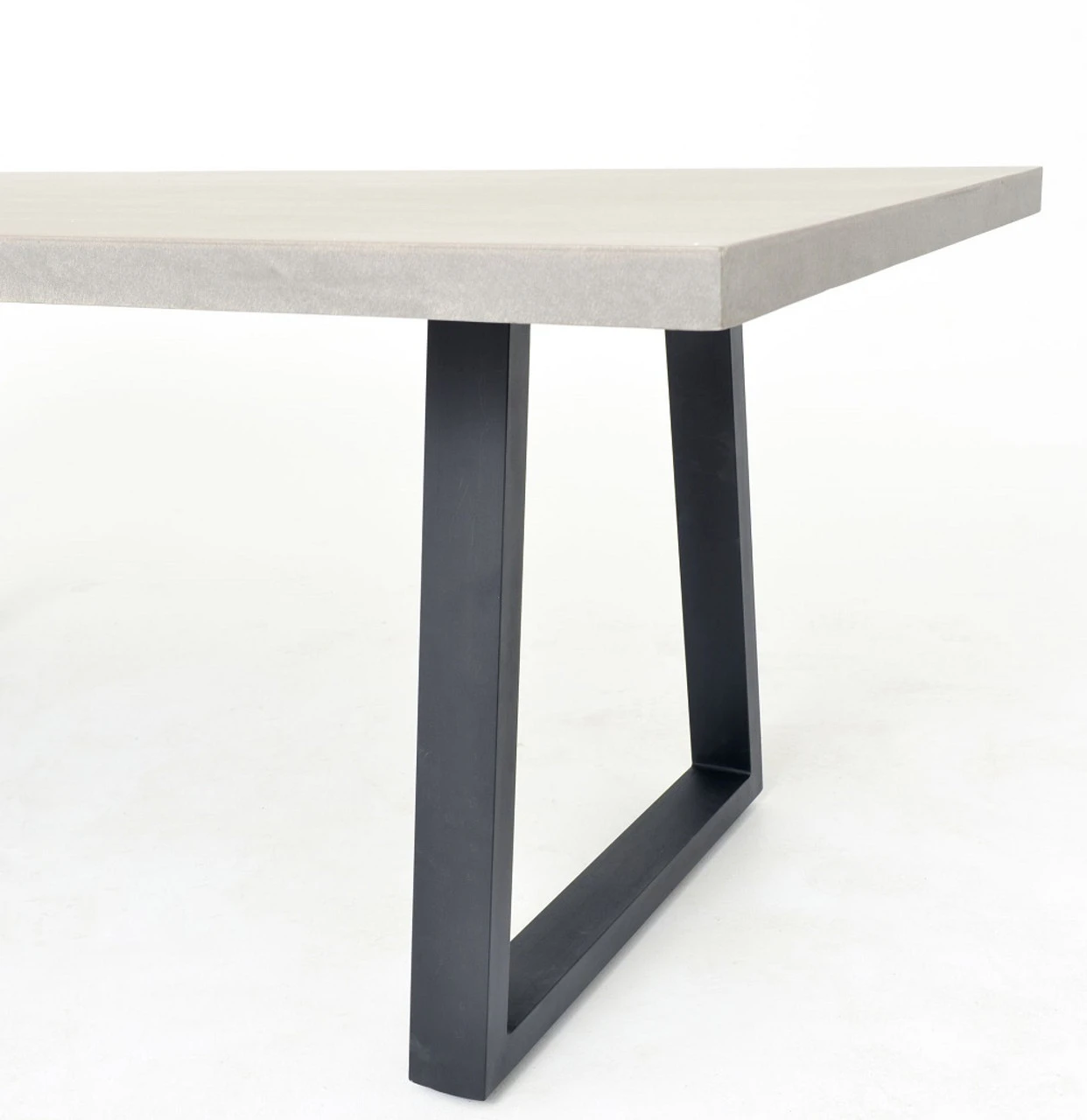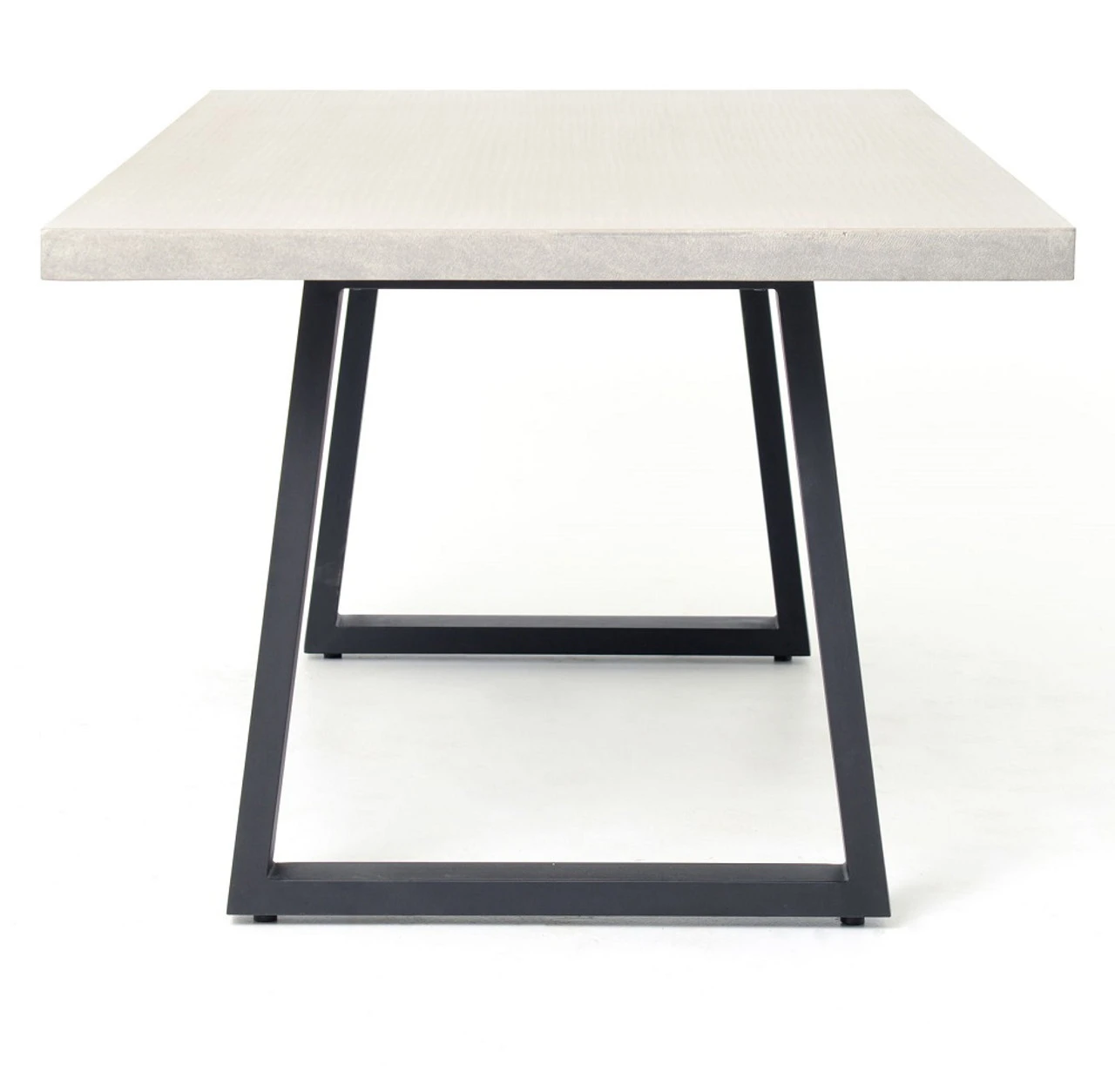 A strikingly simple, poly-resin top derived from river sand is polished to a smooth sheen. The angled, matte black iron base adds architectural appeal to this dining table. Great indoors or out — cover or store indoors during inclement weather and when not in use. Since ancient Roman times, concrete has been a revered material for stunning architecture and design. Now, smooth concrete is layered over a honeycombed core for the strength, character and depth of traditional concrete at an effortless weight. Modern pieces mix in iron, stainless steel, lava stone and wood for industrial appeal with a sophisticated, urban edge.
