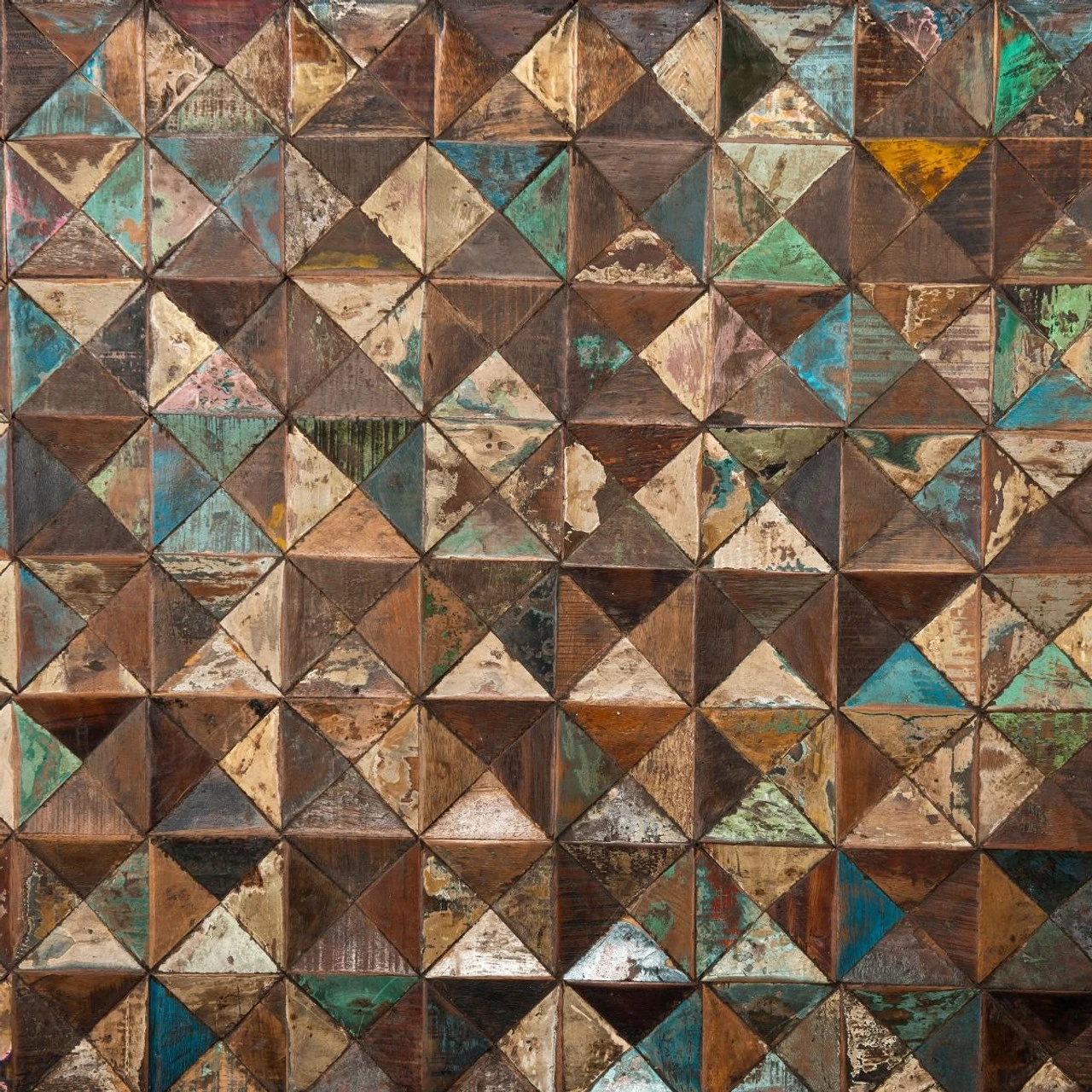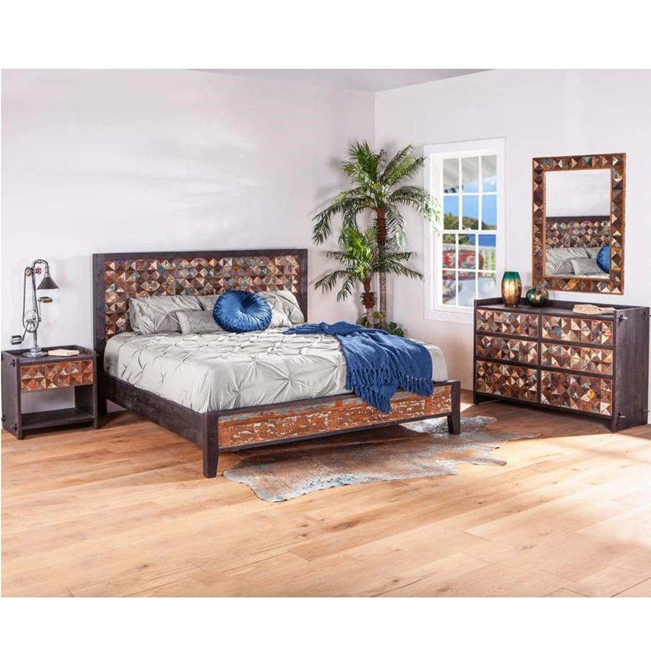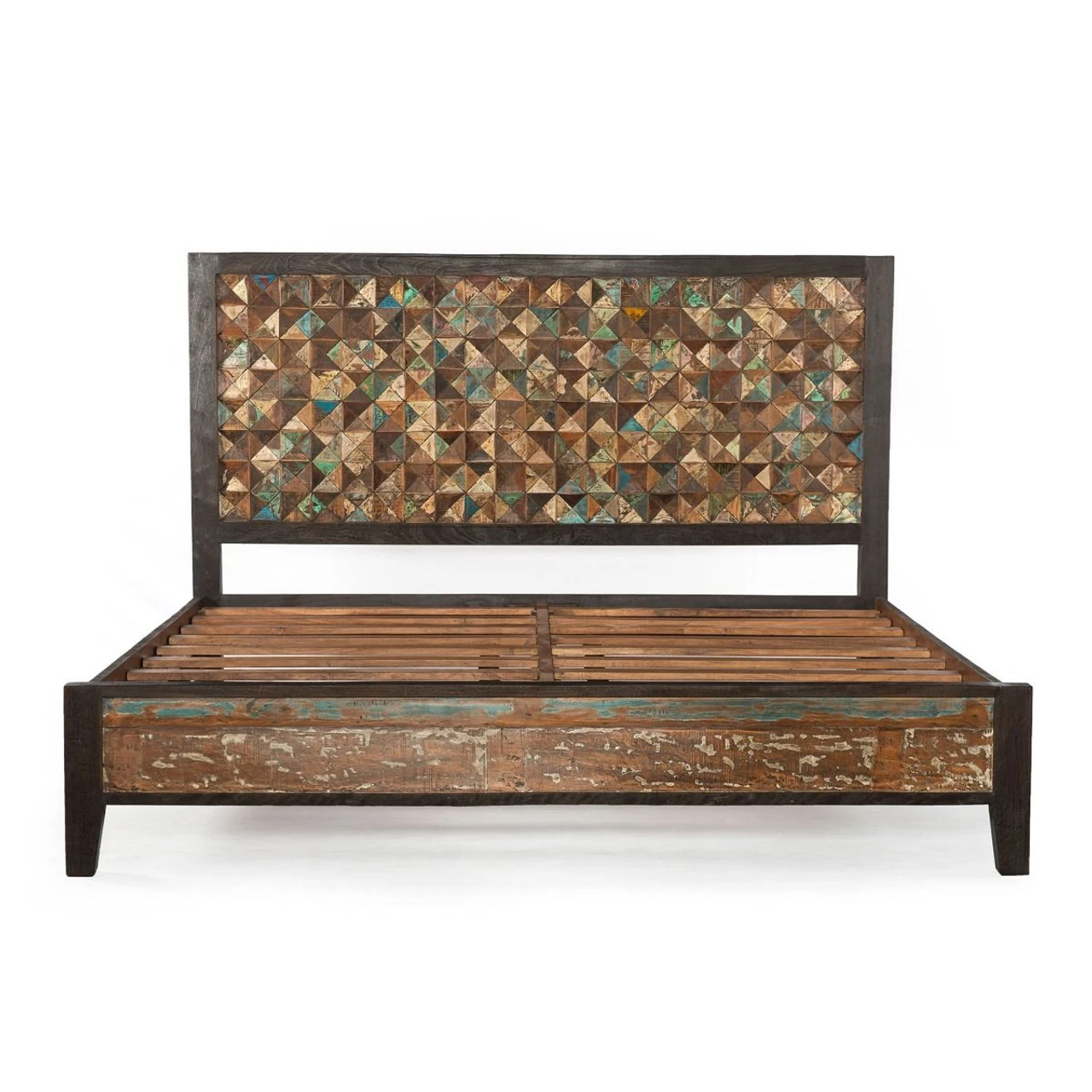 Hand-crafted from reclaimed teak and other hardwoods, our Mayan Reclaimed Wood King Size Platform Bed combines multi-colored reclaimed teak wood with mango wood in a rich java finish to create a sophisticated yet colorful furniture. The tenon joinery and dovetail construction of the wood showcase the superior quality. headboard features a unique, carved pattern of reclaimed teak wood in multiple colors. Thanks to natural variations and the handcrafting process, each bed’s beautifully-finished wood is one-of-a-kind.
