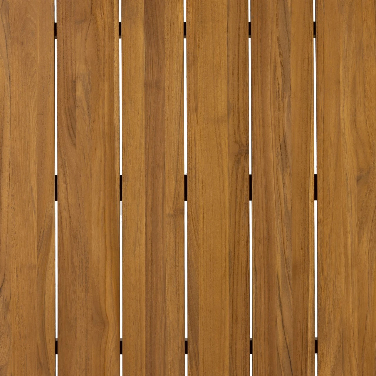 Open, airy table that’s just right for lounging outdoors and keeping items within reach. The spacious oval surface with wide slats is made from natural teak with column legs for a sculptural element. Cover or store indoors during inclement weather and when not in use.