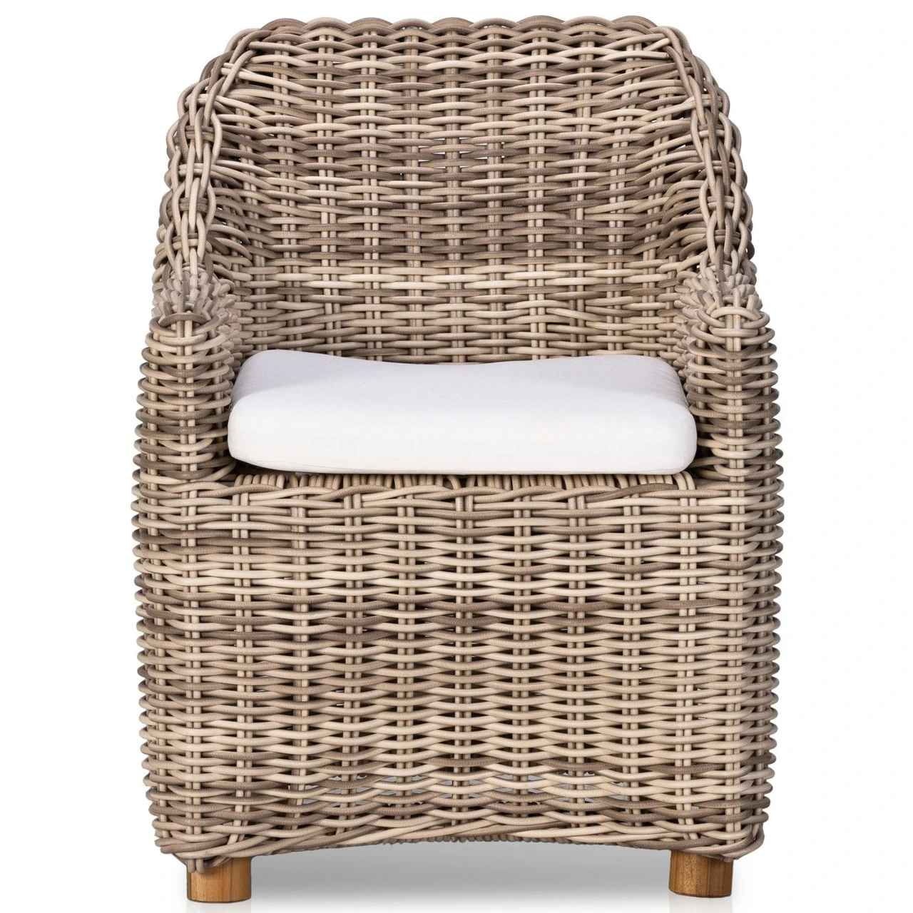 Traditional heritage shape on a grand scale. The outdoor dining chair is crafted from durable natural teak in a gorgeous, woven pattern highlighting the texture’s natural highs and lows. Oversized with deep-seated comfort for the ultimate outdoor dining space. Cover or store indoors during inclement weather and when not in use.