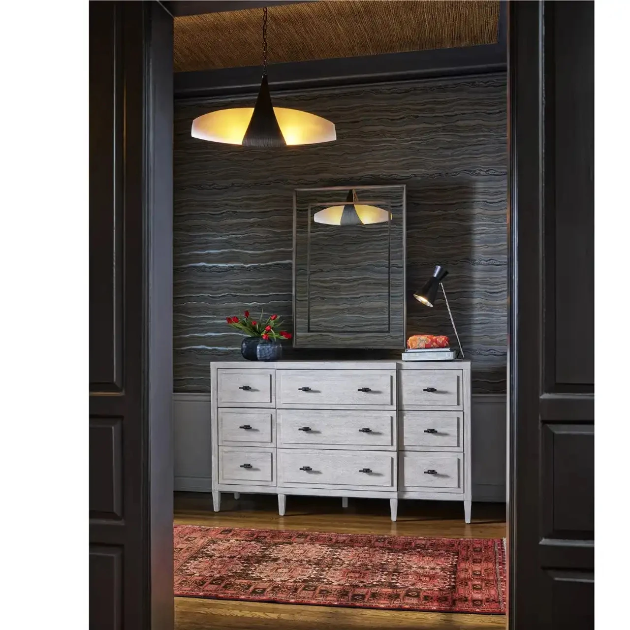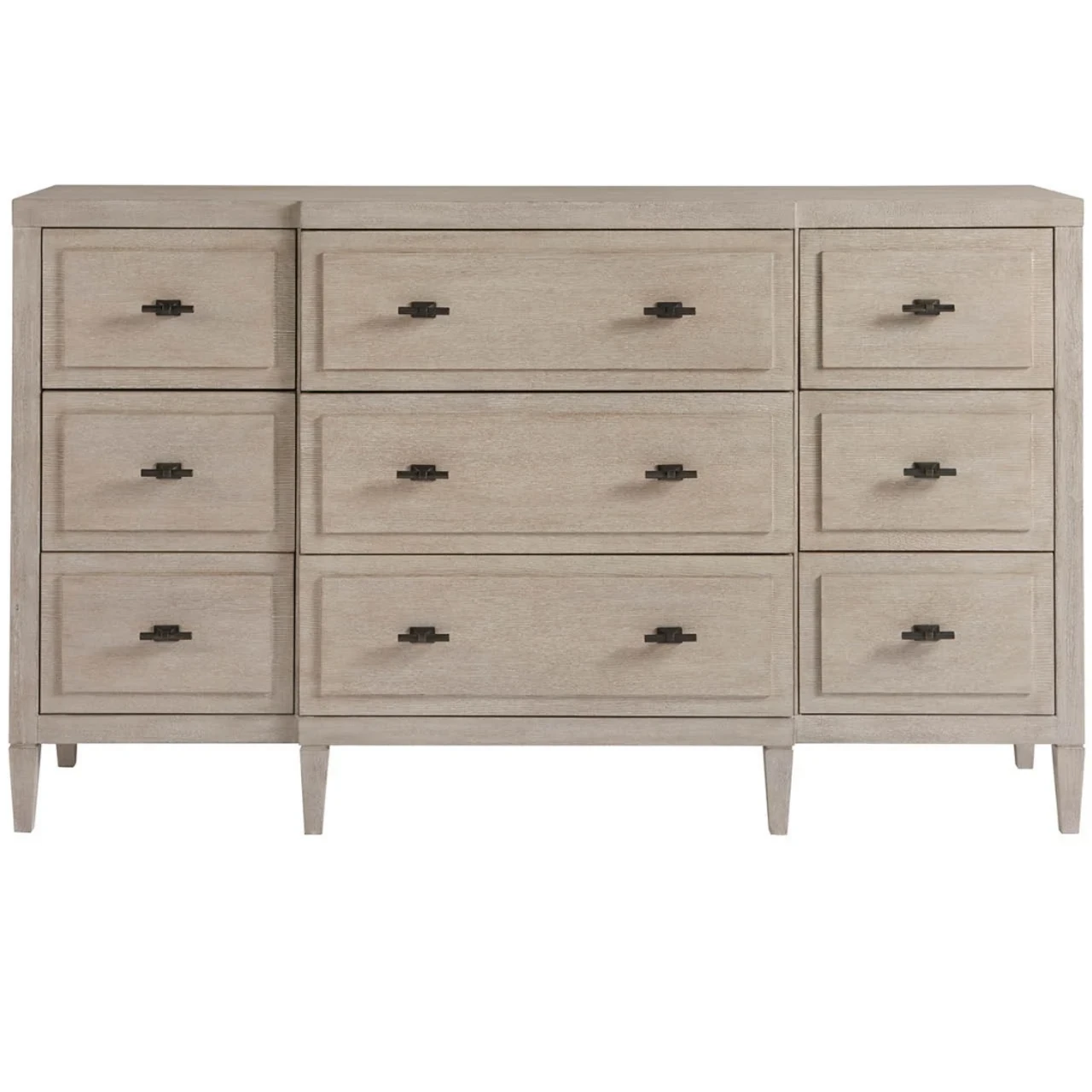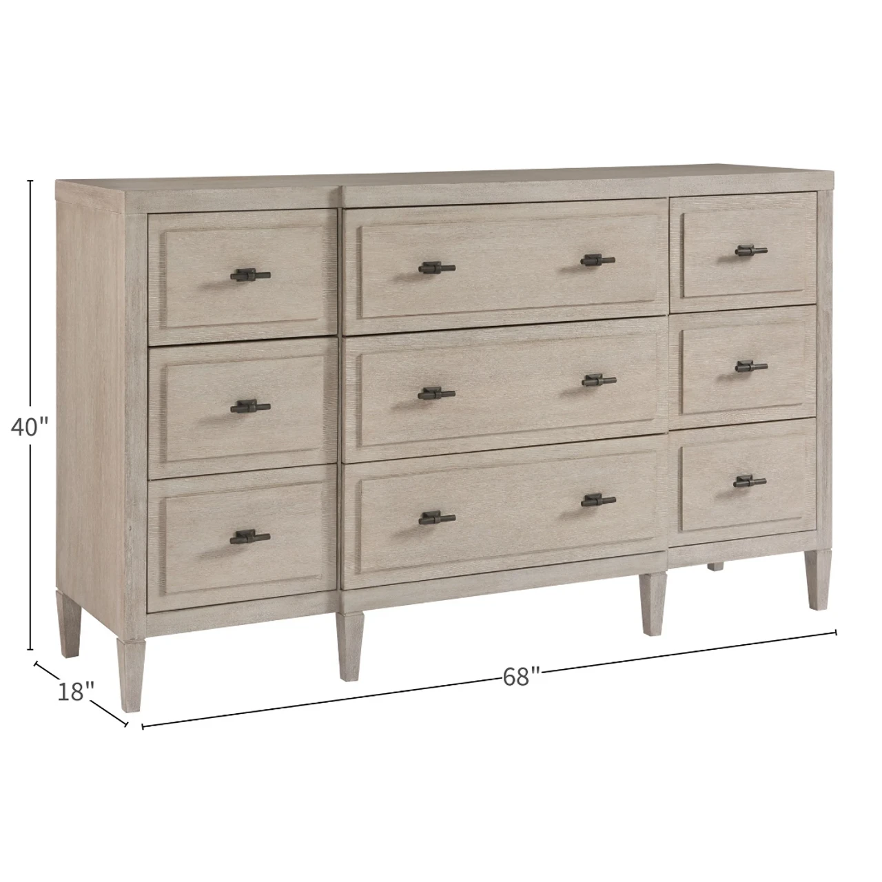 Boasting a crisp and welcoming Flannel finish, the Midtown Dresser is designed with 9 abundantly spacious drawers accented by Dark Pewter bar hardware.