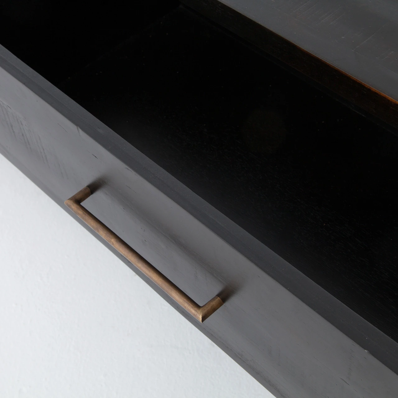 Subtle nuances create sophisticated intrigue. Inspired by mid-century modern design, sleek, squared-off shapes are offset by dark, distressed finishes and accented with antiqued brass hardware. Each piece exudes unique character, offering a distinctive identity to any space.