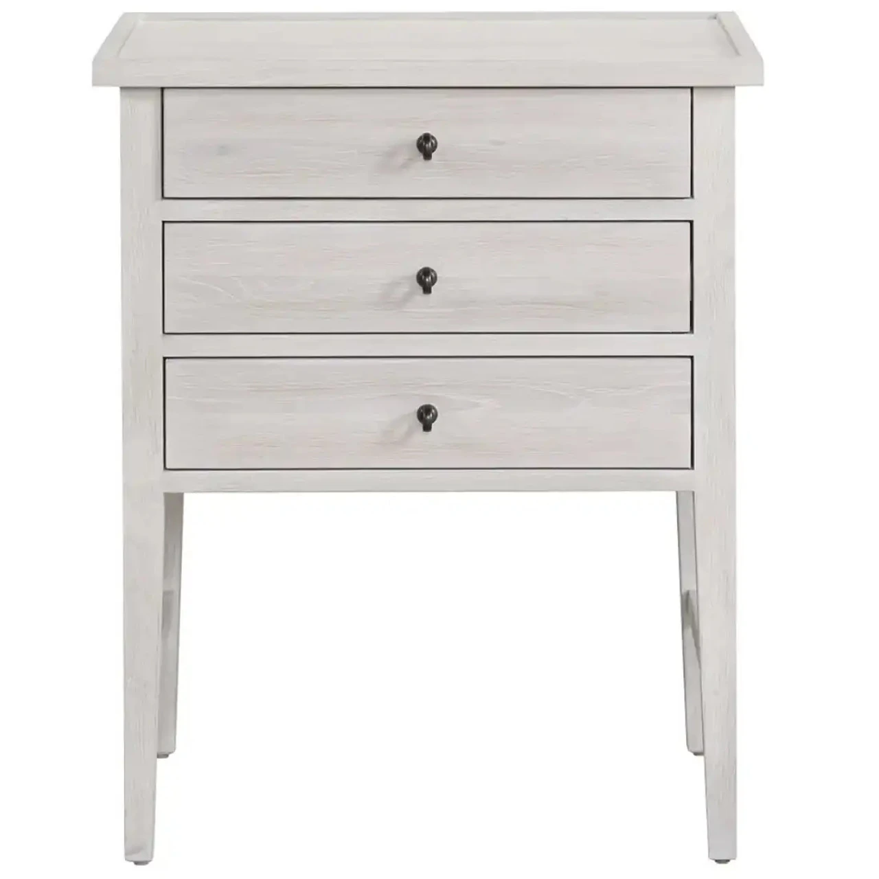 Complement bedsides with the lighthearted Small Nightstand, featuring three drawers, bronze knob hardware and a smooth off-white finish