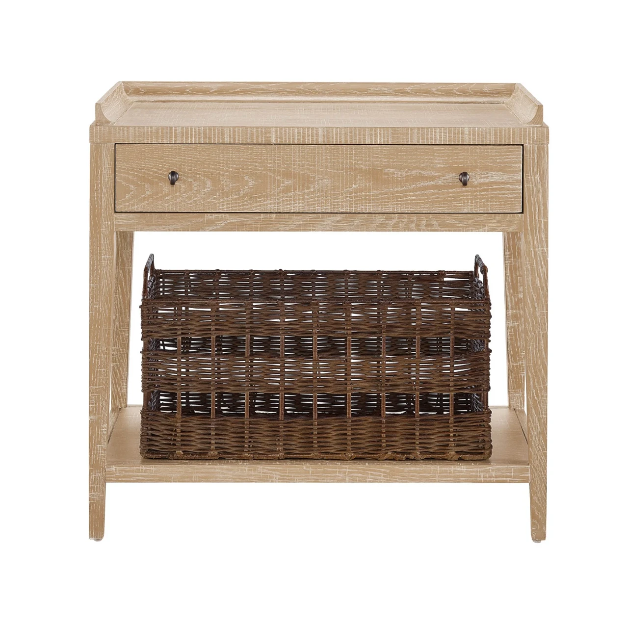 A playful mixed-media favorite, the Rylie Nightstand features one top drawer in addition to a complementing woven open-air storage basket, perfect for storing books, electronics and more.