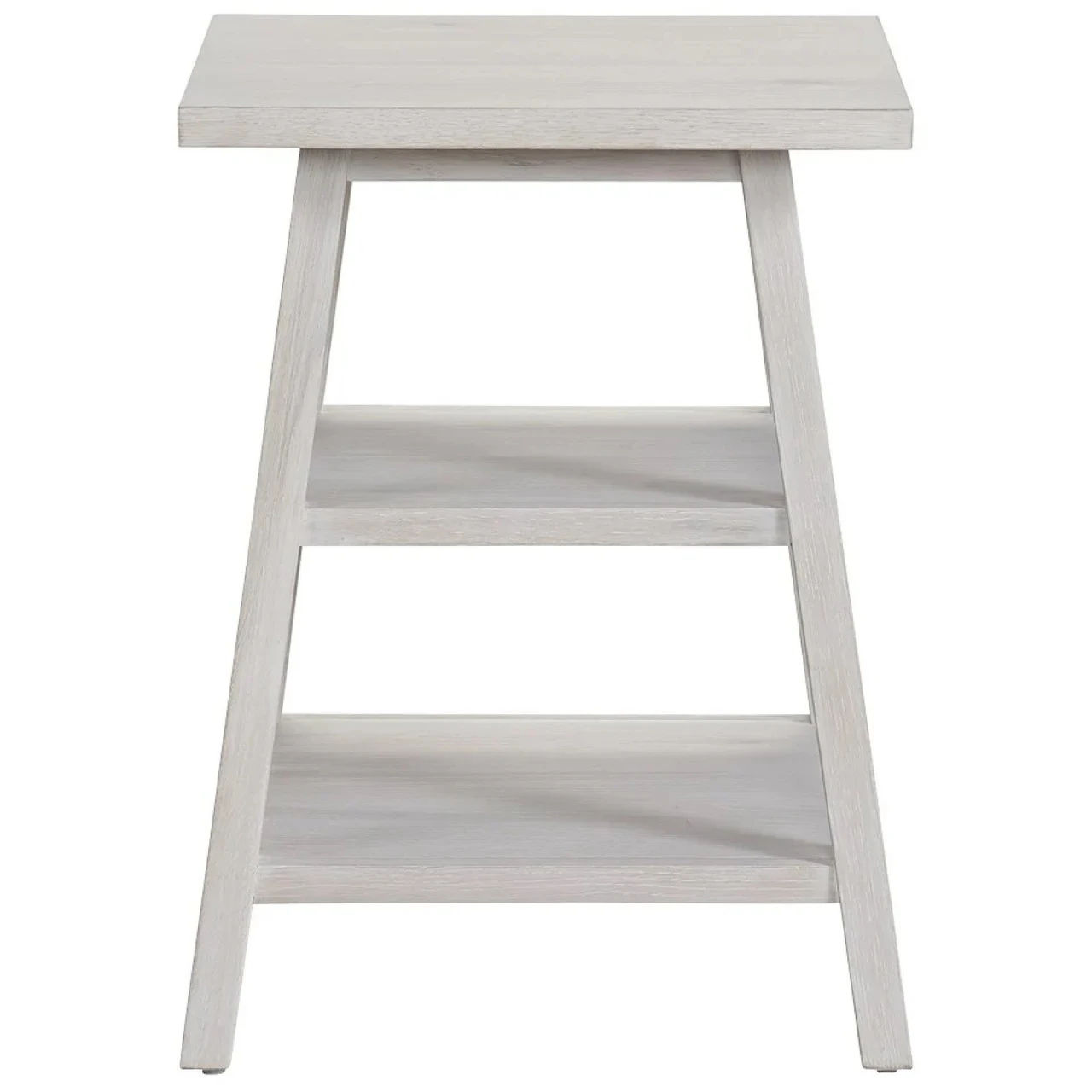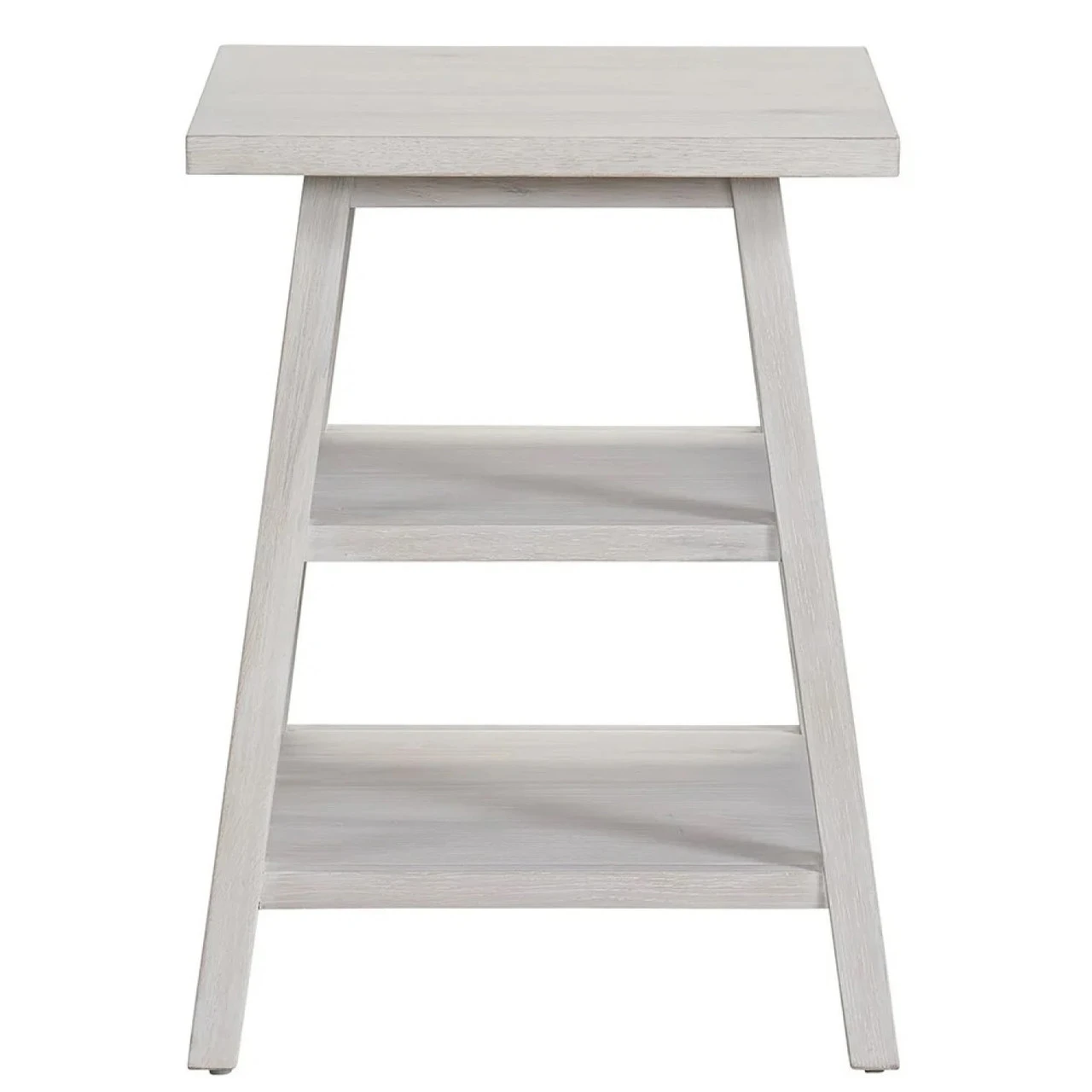 An ideal complement to a favorite chair or sofa, the Square End Table features a multi-shelf design coupled with angled legs and a cool white finish.