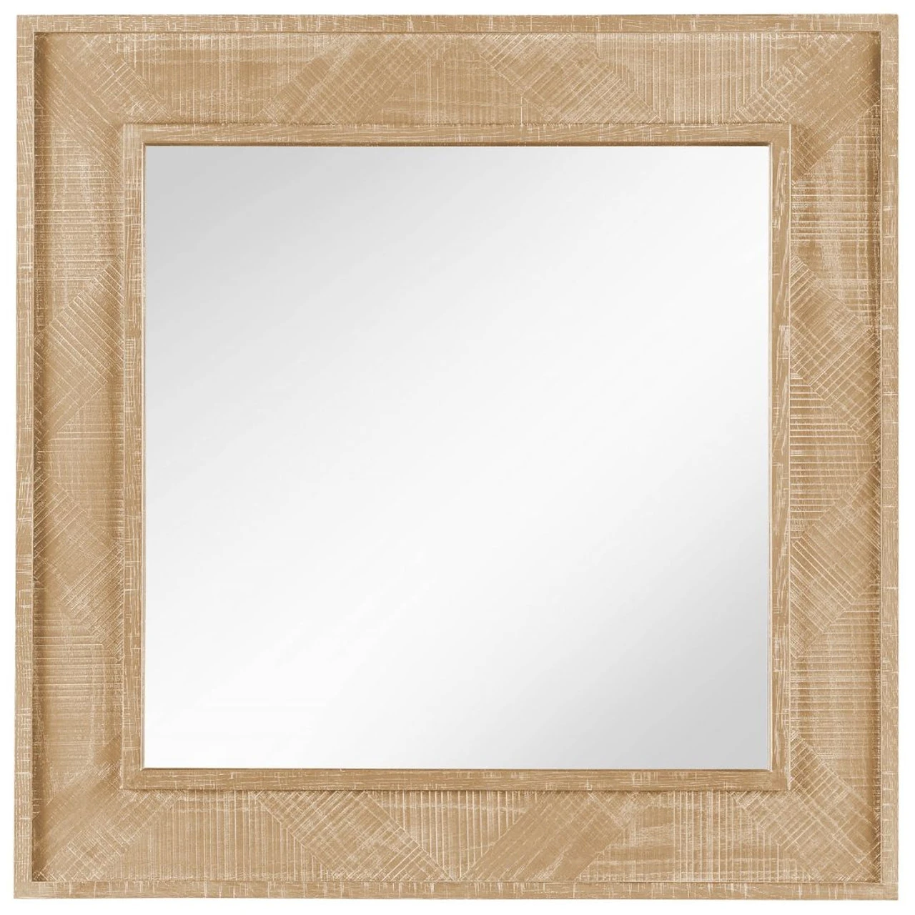 This Square Mirror in a rustic natural oak finish is large enough to be used with a vanity, or simply make it a focal point of any wall. Subtle diagonal detailing softens the look. Of this substantial piece.