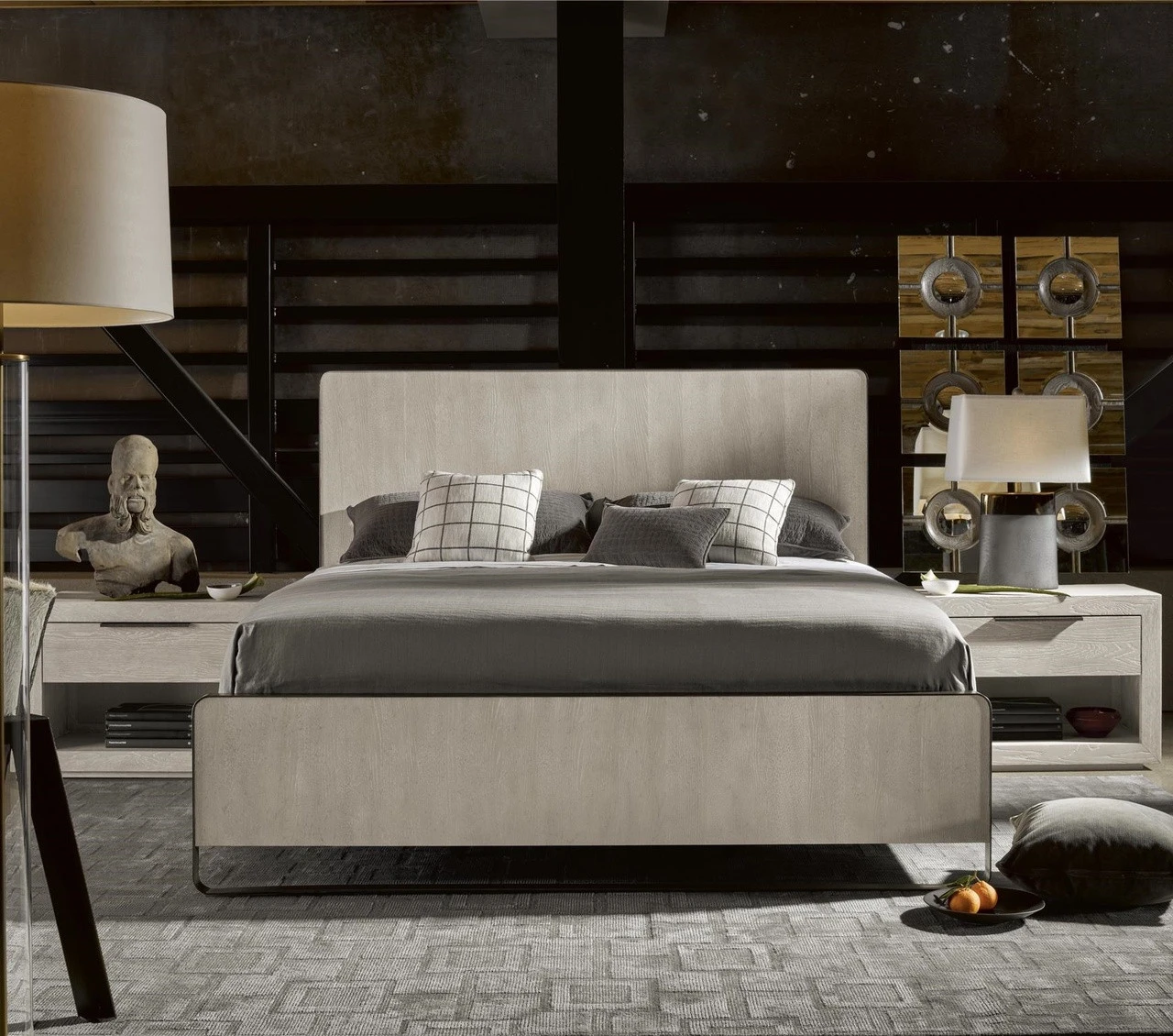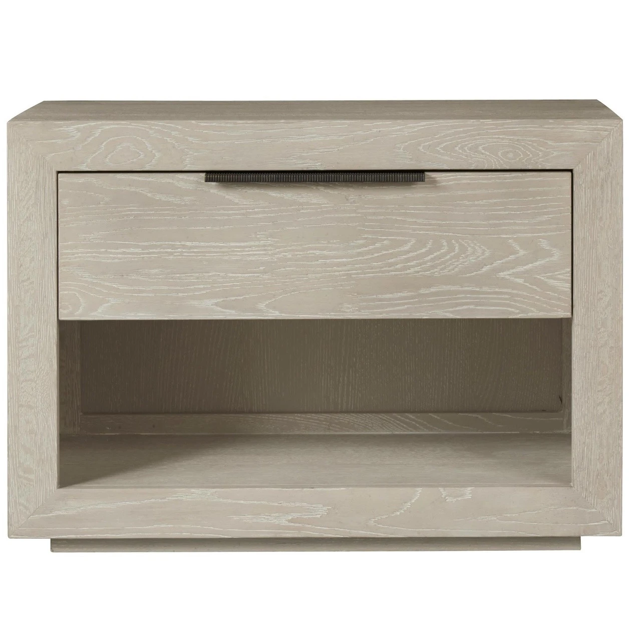 Modern Grey Oak Huston 1 Drawer Nightstand is sophisticated, clean and simple, bold and a bit daring. It honors its roots in Modernism but has been adapted for today’s life and activities, in action and rest. Antiqued bronze metal drawer pulls are a striking counterpoint to the naturally rich grain of Quartered white oak. Our Modern Gray Oak Wooden Nightstands bold proportions and clean lines offer a style both modern and contemporary.