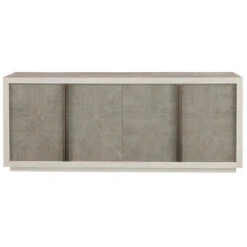 Modern Grey Oak Wood 4 Door Brinkley Credenza Sideboard is sophisticated, clean and simple, bold and a bit daring. It honors its roots in minimalist Modernism but has been adapted for today’s life and activities, in action and rest. Antiqued bronze metal accents are a striking counterpoint to the naturally rich grain of Quartered white oak wooden buffet sideboard. Our Modern Dining Room Credenza features two finishes, with a Quartz case and Flint doors, Four doors, Two adjustable shelves and One tray drawer for dining essentials.Â