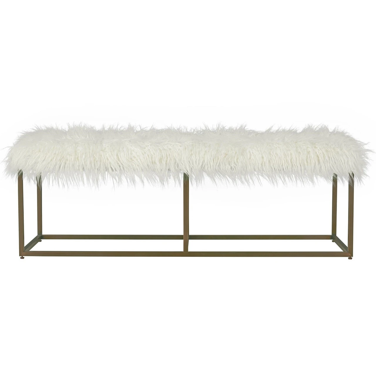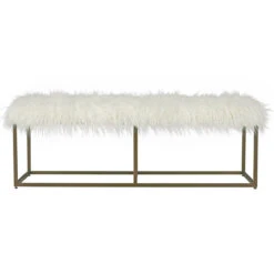 Modern Hollywood Regency White Alpaca Fur Bench is sophisticated, clean and simple, bold and a bit daring. It honors its roots in Modernism but has been adapted for today’s life and activities, in action and rest. Constructed with a sleek bronze finish frame, Acrylic seat covered with Faux Alpaca Fur. This white, faux-fur Acrylic bench is glamorous with an box frame base in bronze finish.