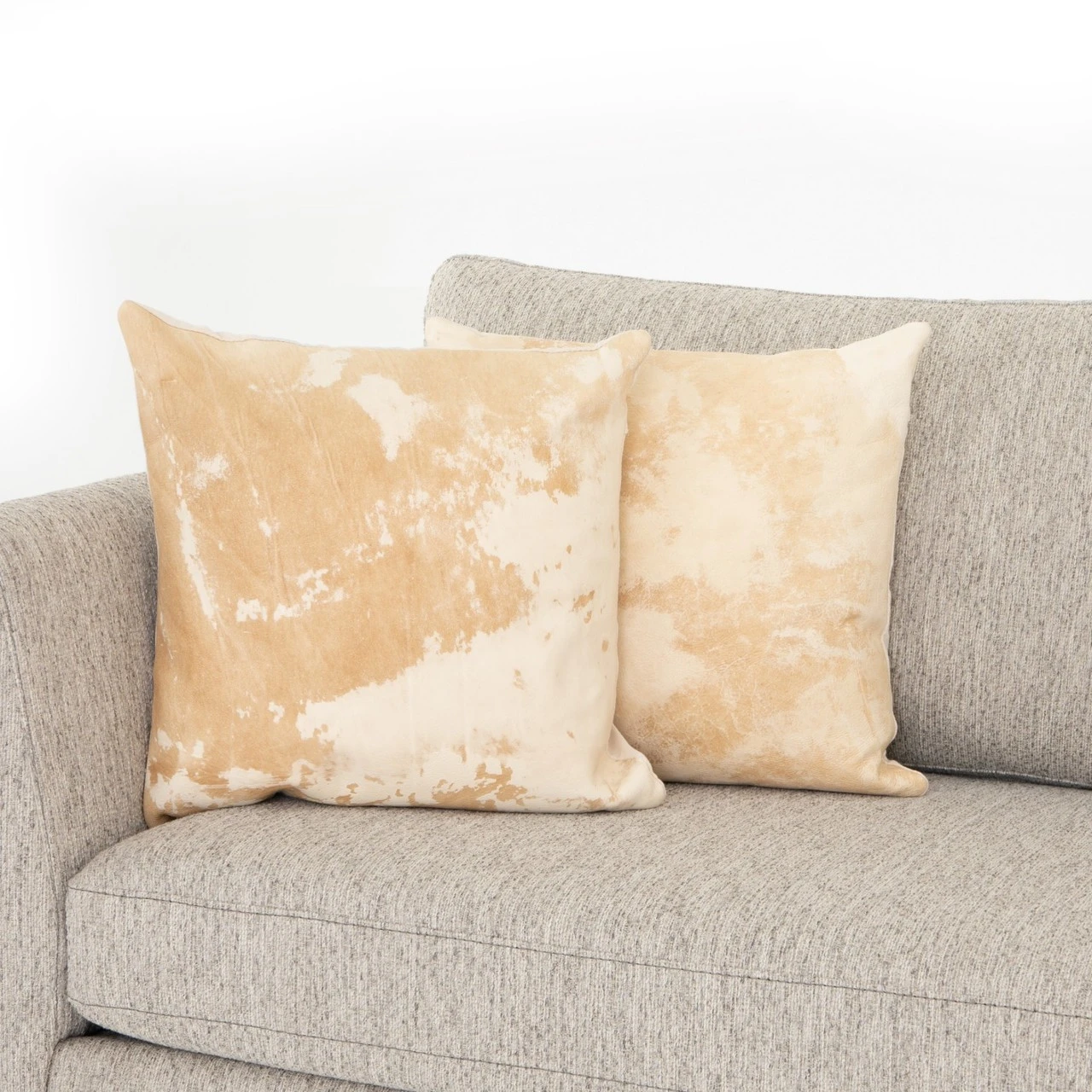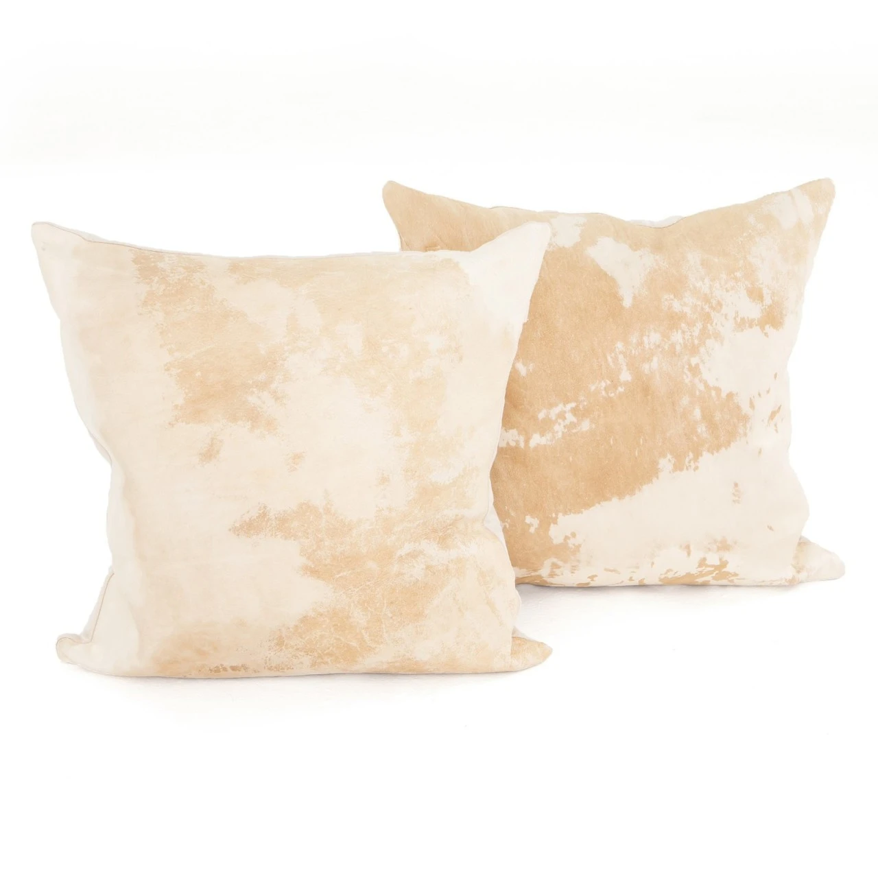Authentic cowhide leather pillows brings warmth and contrast to any space. A variance in color and pattern is to be expected, and speaks to the one-of-a-kind nature of these exotic pillows. Chromium-free processing ensures eco-friendly tanning without the use of dyes. Example hides shown; each will reflect its own unique character in a range of hues. No two hides are the same. Inserts included.