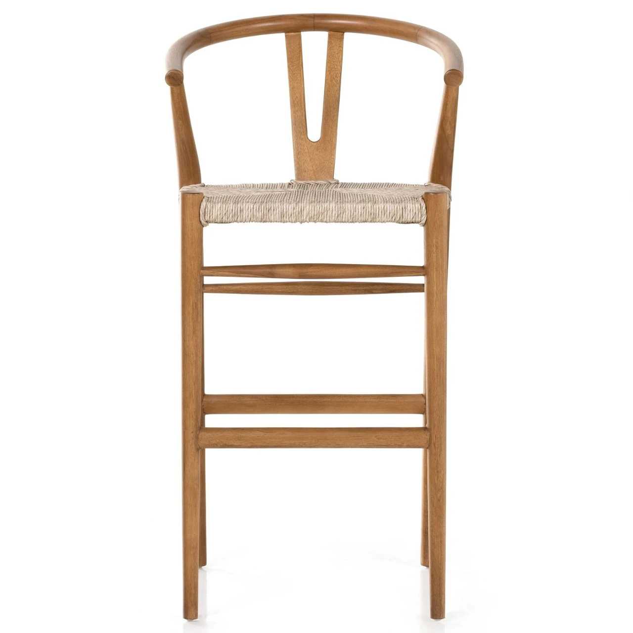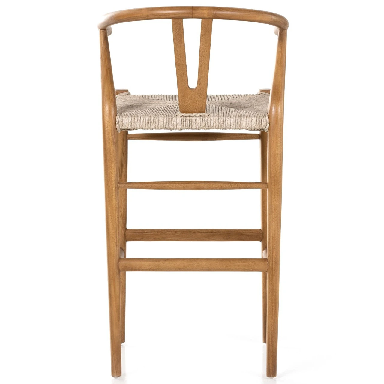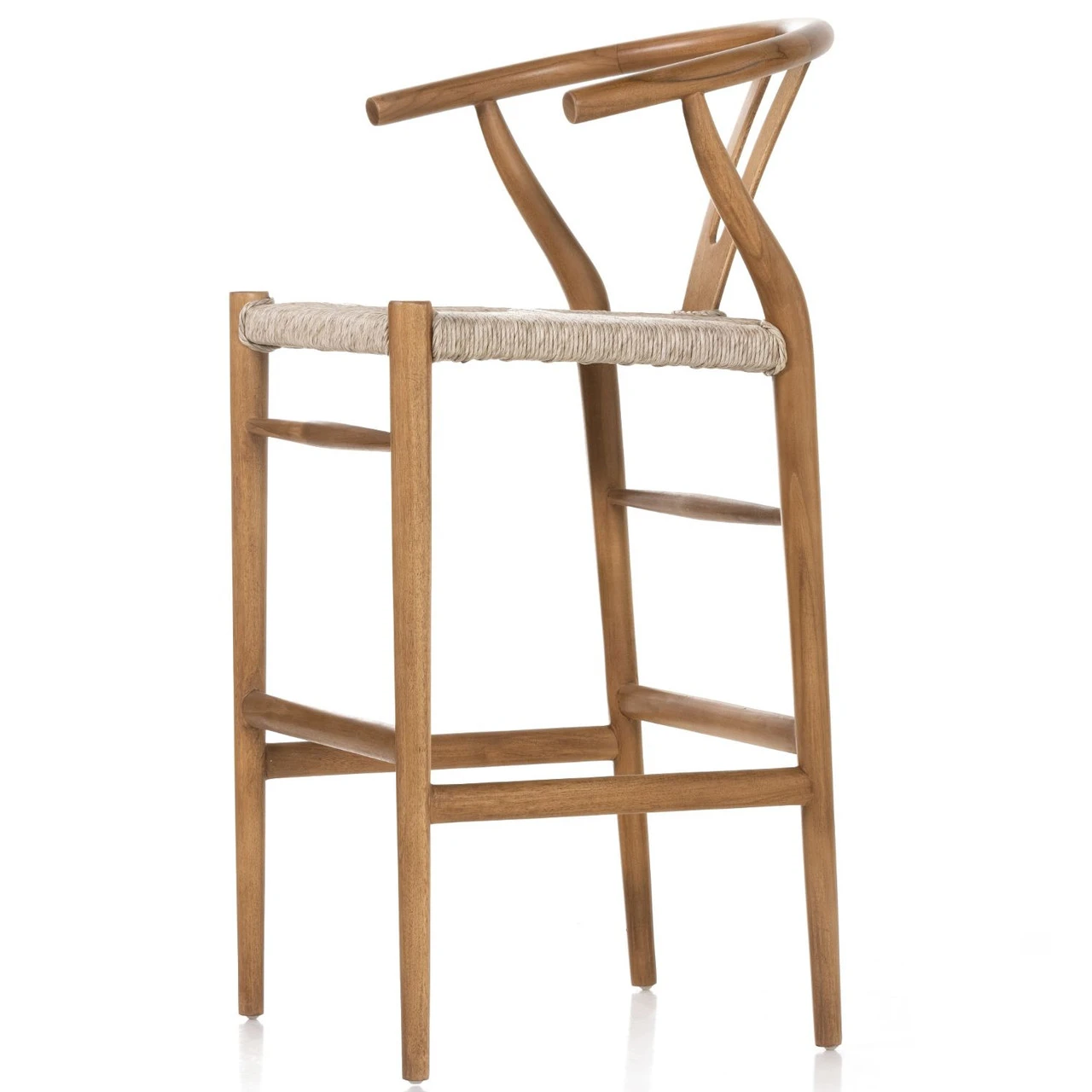 Modern curves redefine the classic wishbone-style stool. Vintage white all-weather wicker is woven for a dose of fresh texture upon a neutral palette. Cover or store indoors during inclement weather and when not in use.