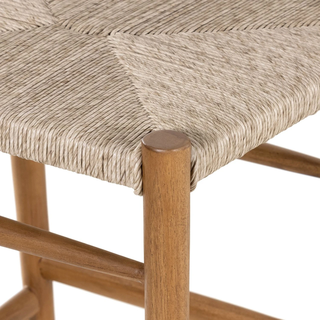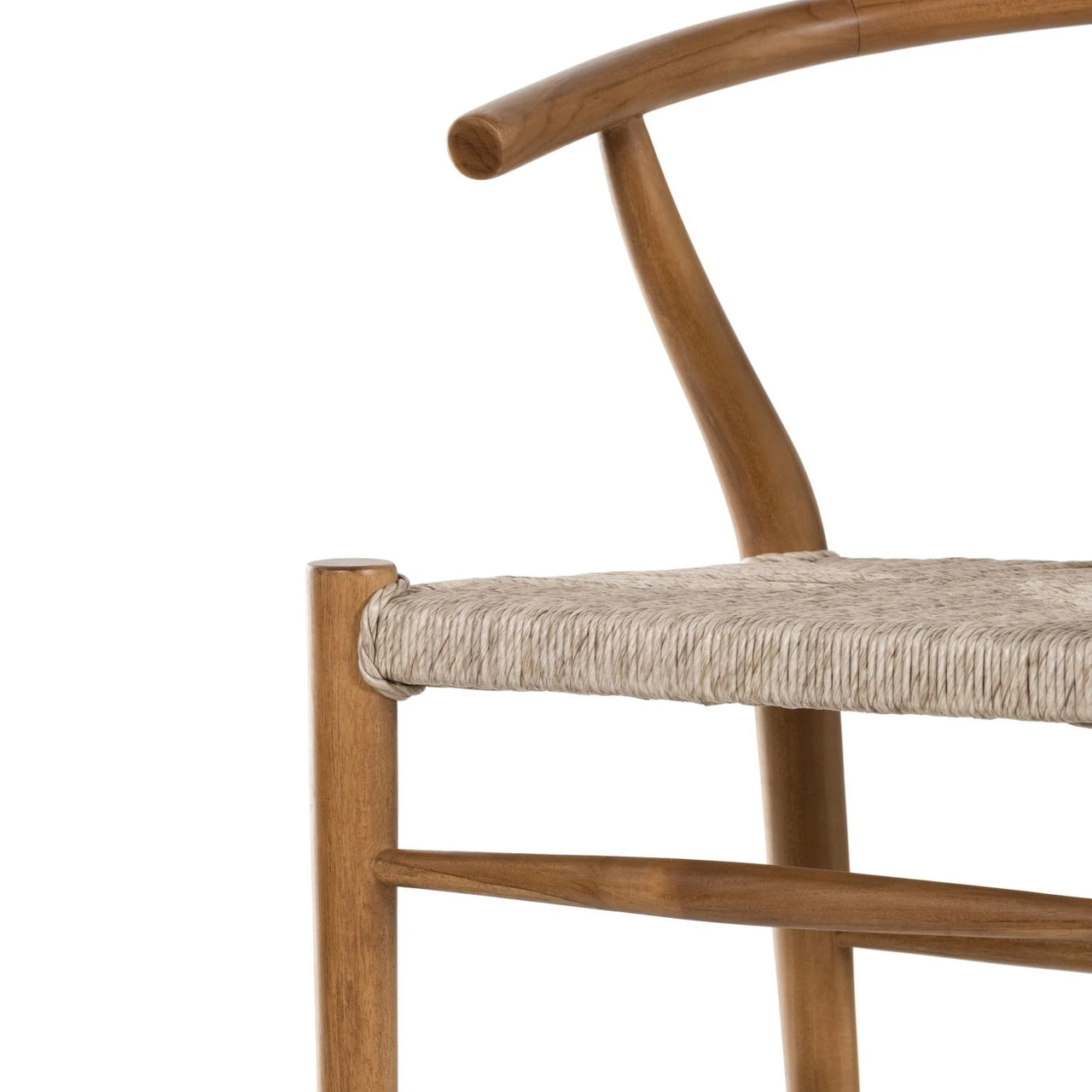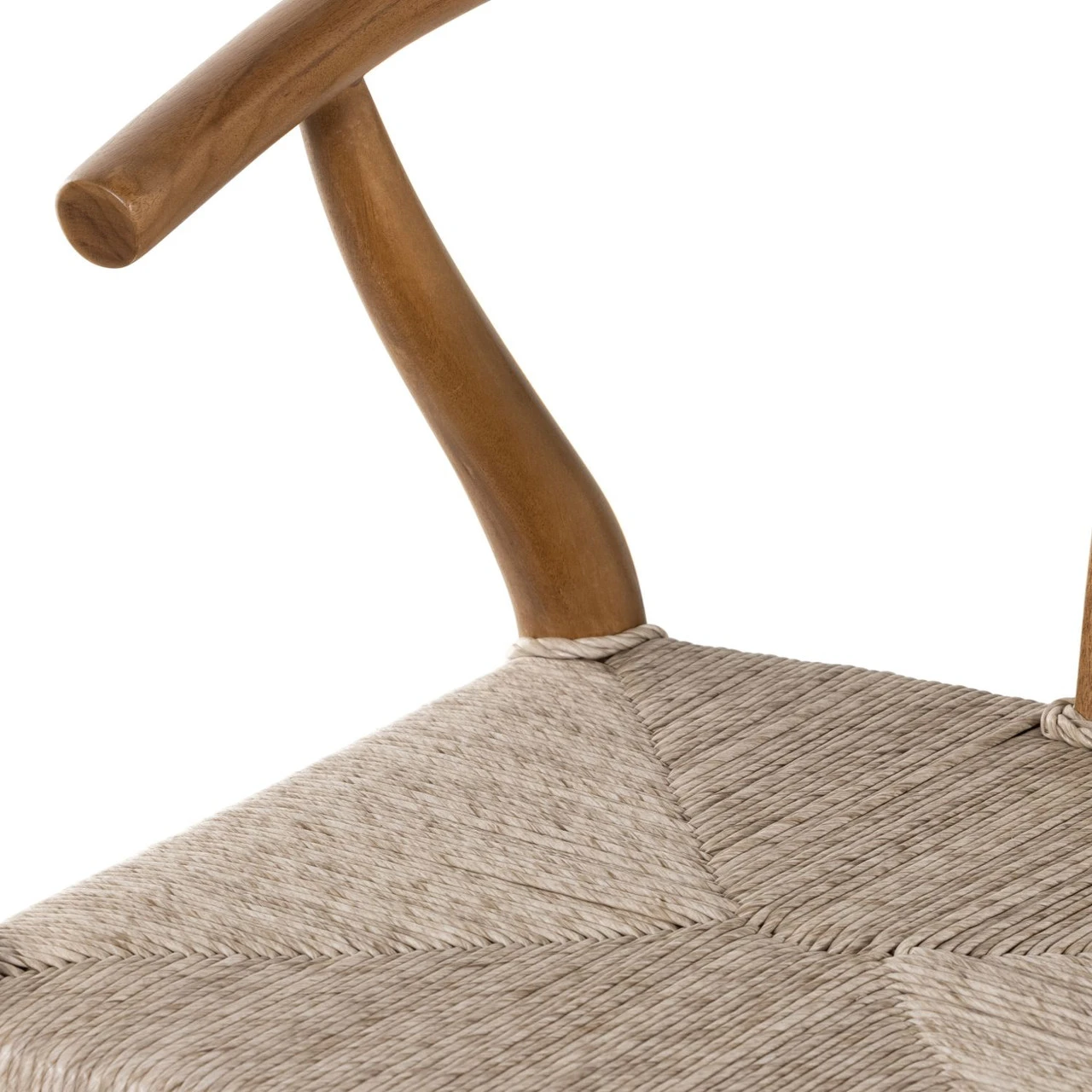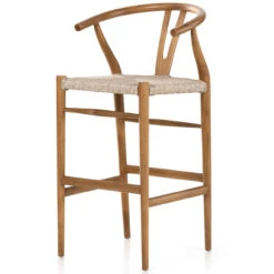 Modern curves redefine the classic wishbone-style stool. Vintage white all-weather wicker is woven for a dose of fresh texture upon a neutral palette. Cover or store indoors during inclement weather and when not in use.