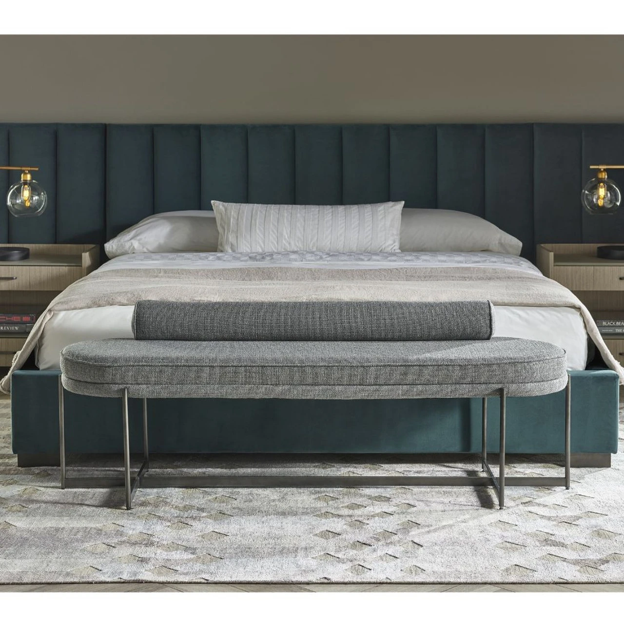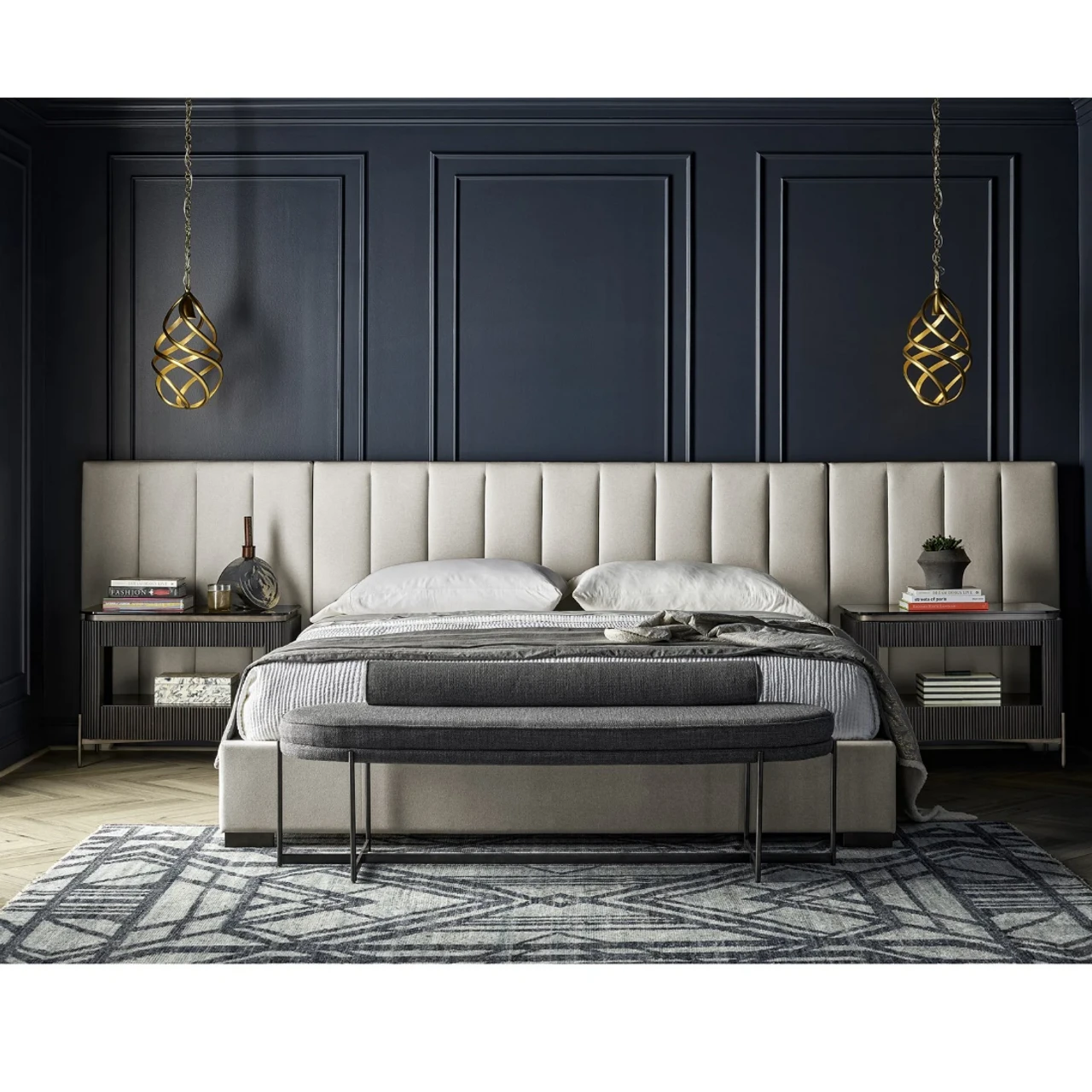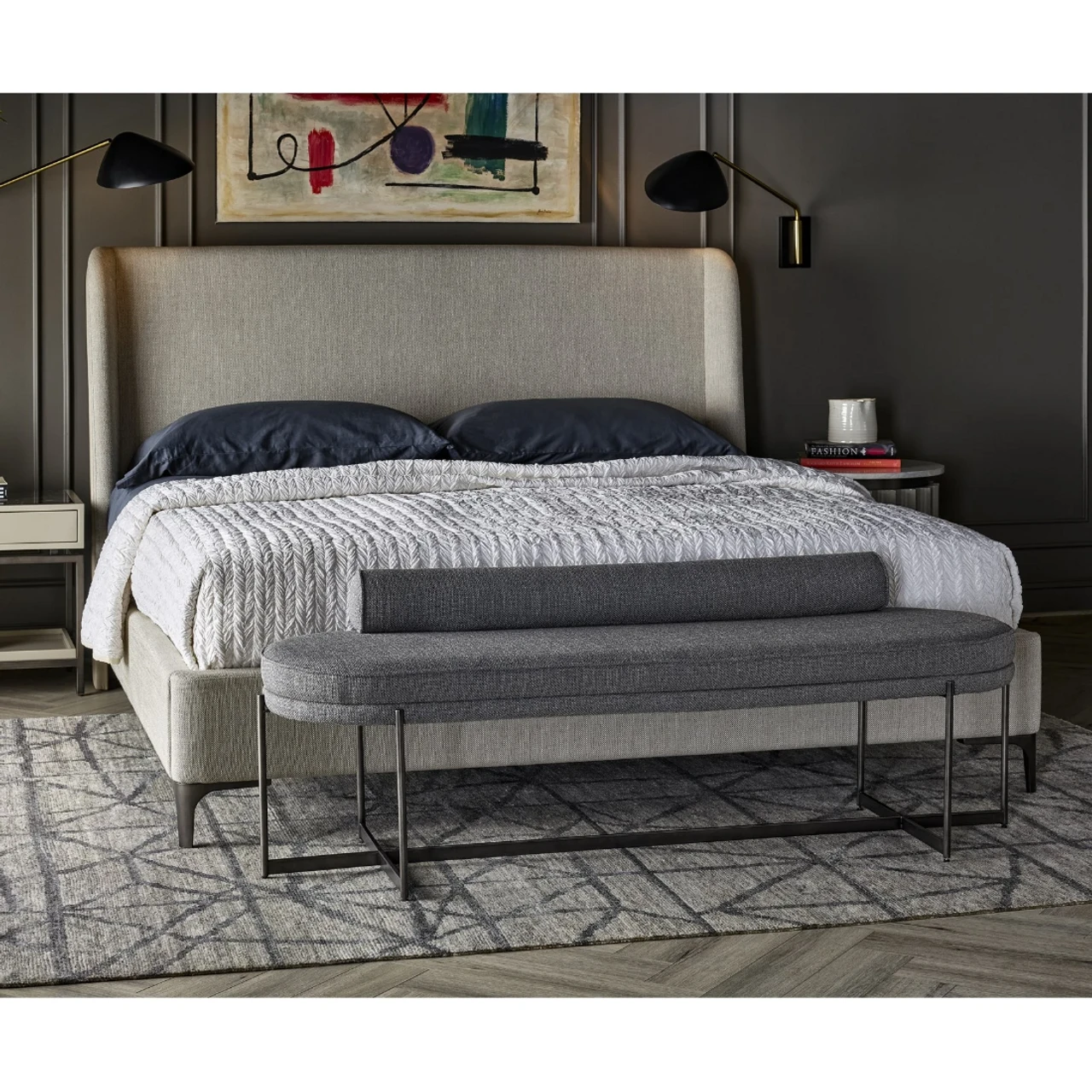 The Ligon Bench features a captivating seat atop a sleek and slender base, bringing modern refinement and ultimate comfort to the forefront of bedroom spaces.