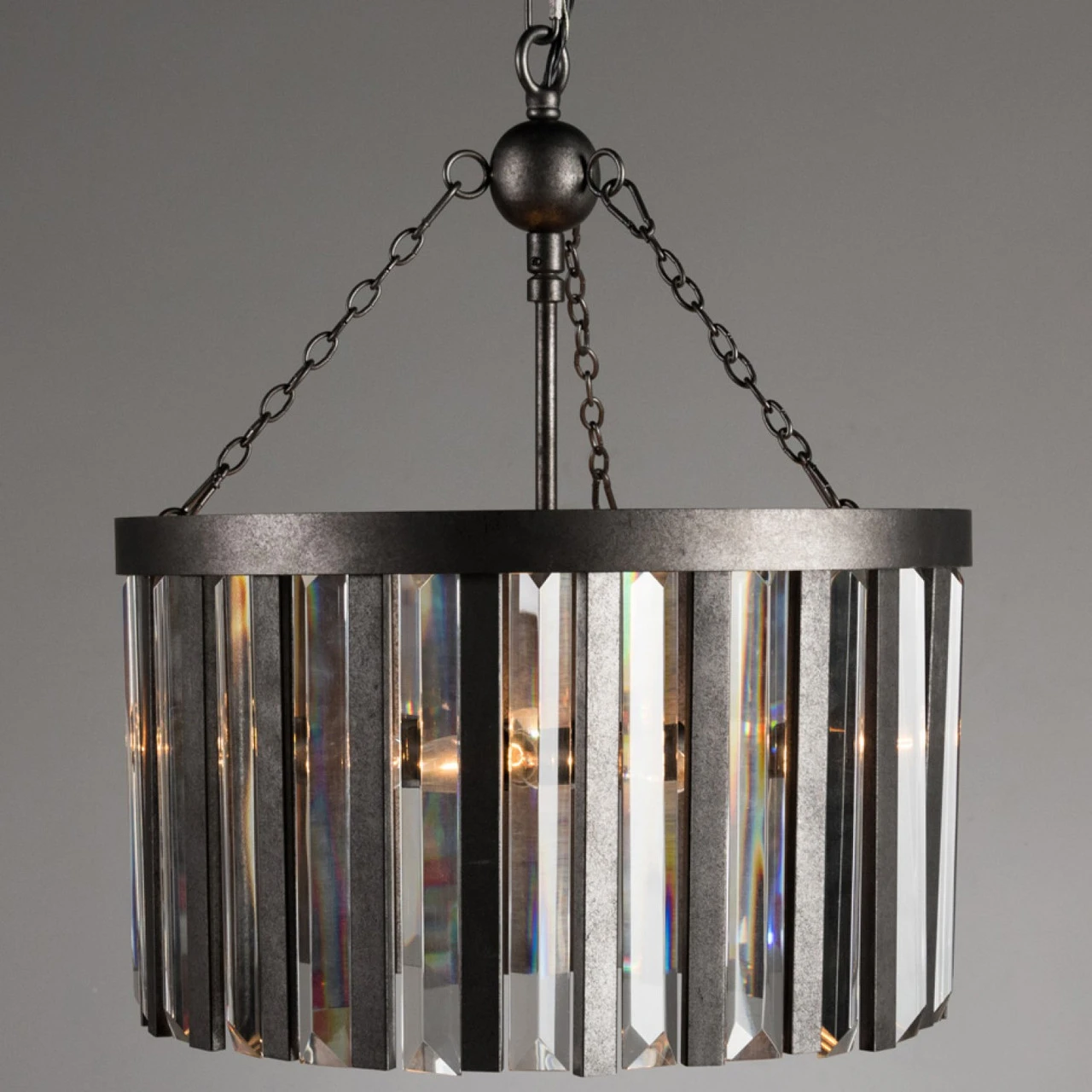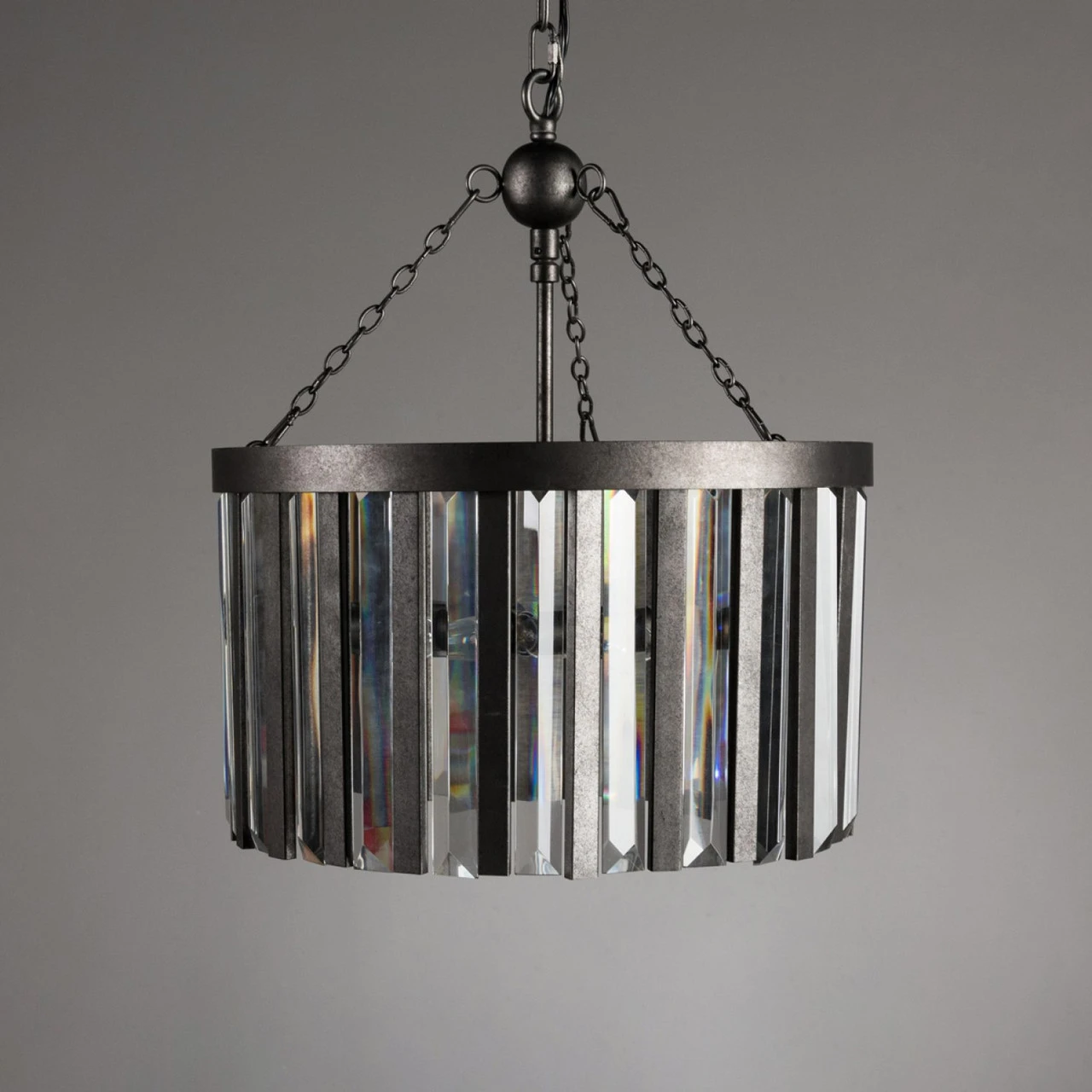 Olympia Chandelier is made with an iron frame and hanging glass prisms that add a shimmering glow to any space. Timeless in its beauty, Olympia will easily fit into classic and contemporary interiors.