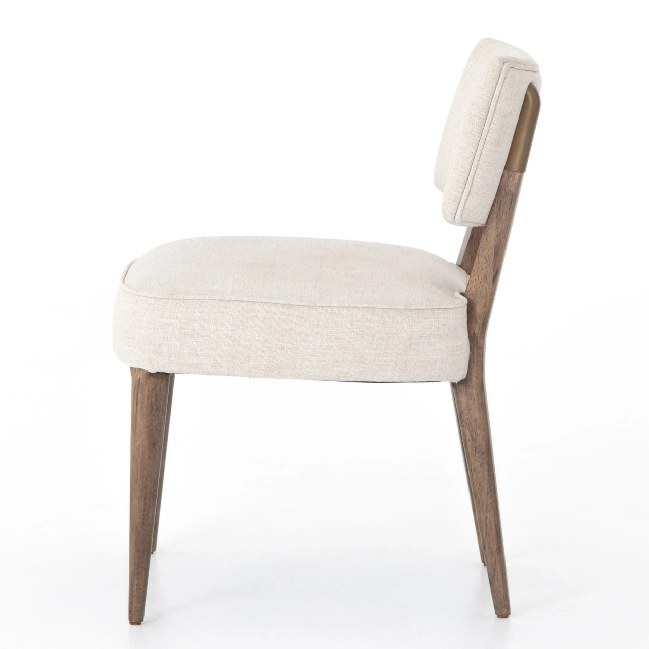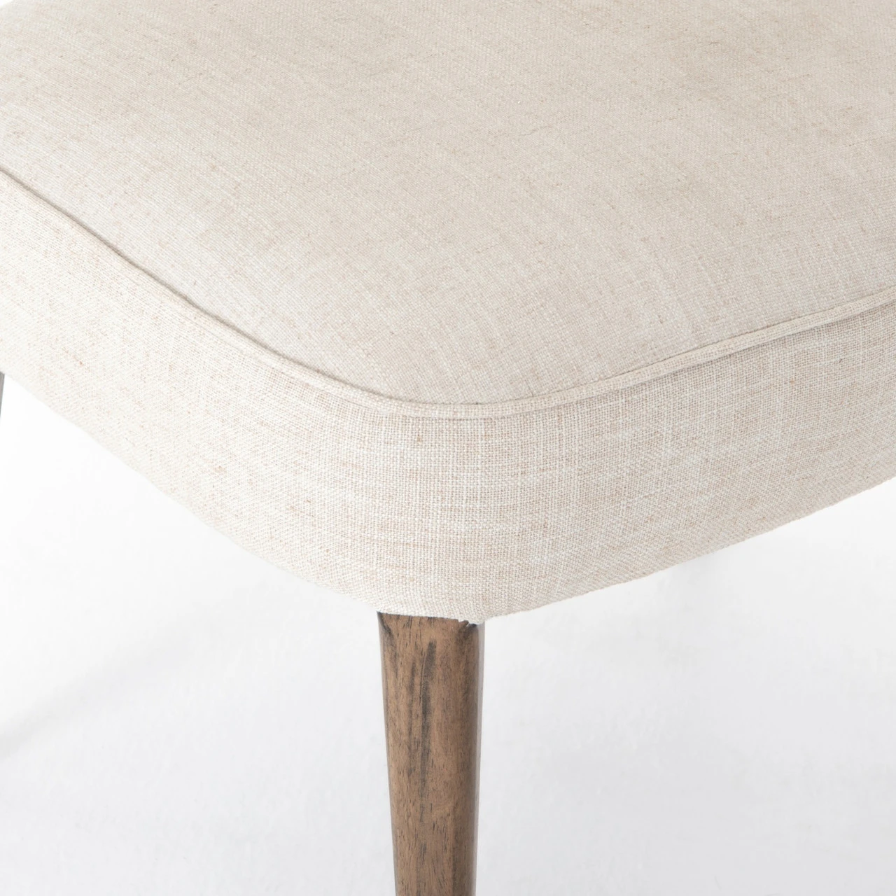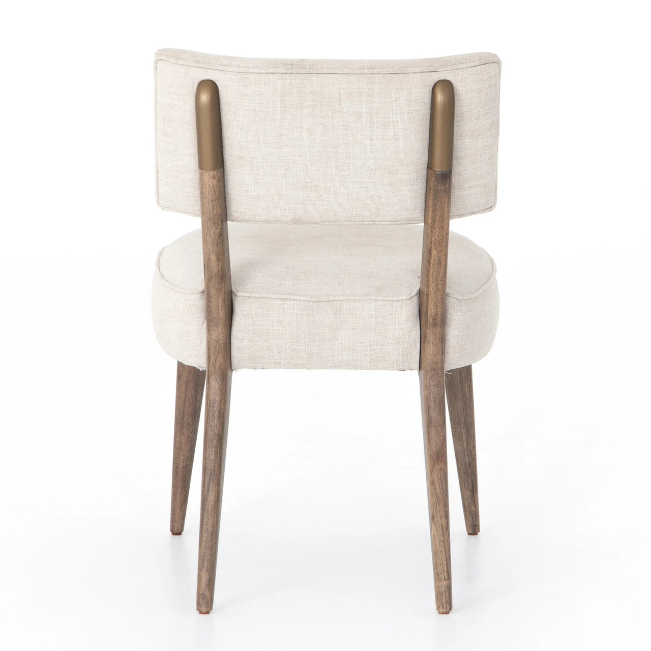 With cone-tapered parawood legs and ivory performance-grade seating of linen blend, this crisp, clean dining style is durably designed for dinners and parties alike.