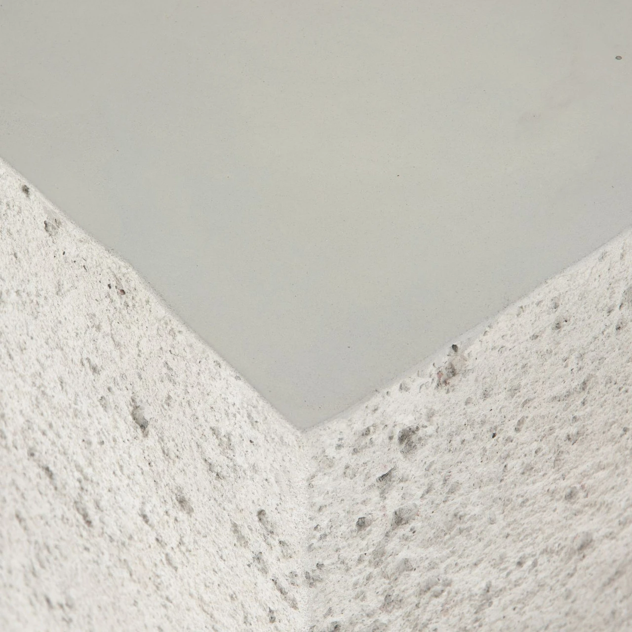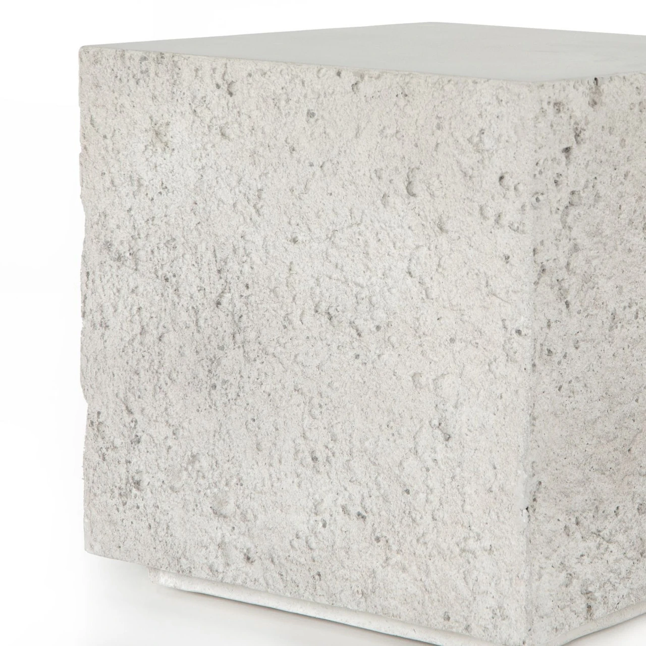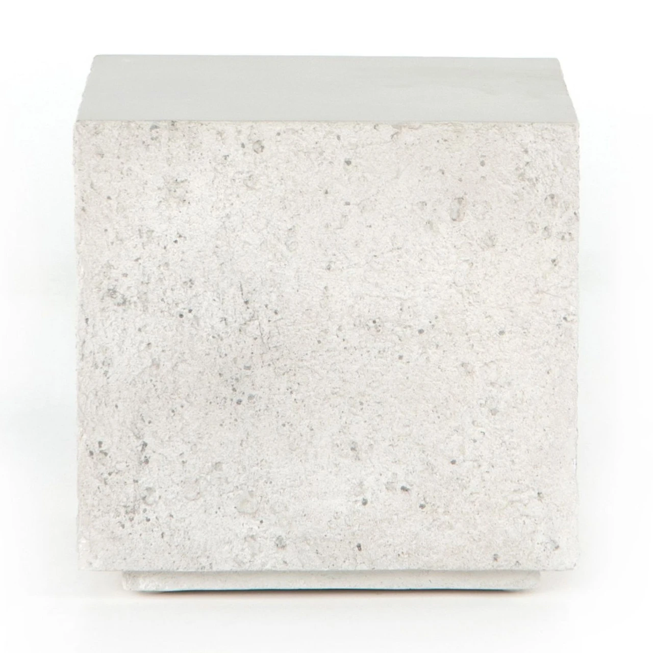 Bring a touch of industrialism to outdoor styling. A squared end table of solid white concrete features raw edging for texture and novelty alike. Cover or store indoors during inclement weather and when not in use.