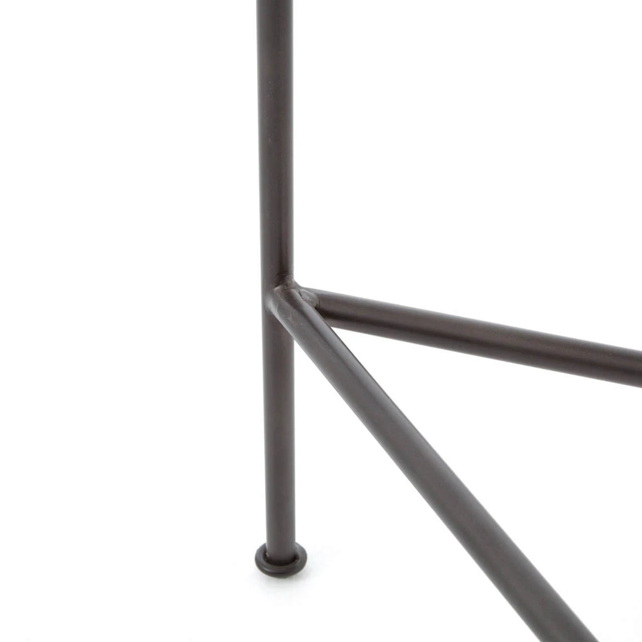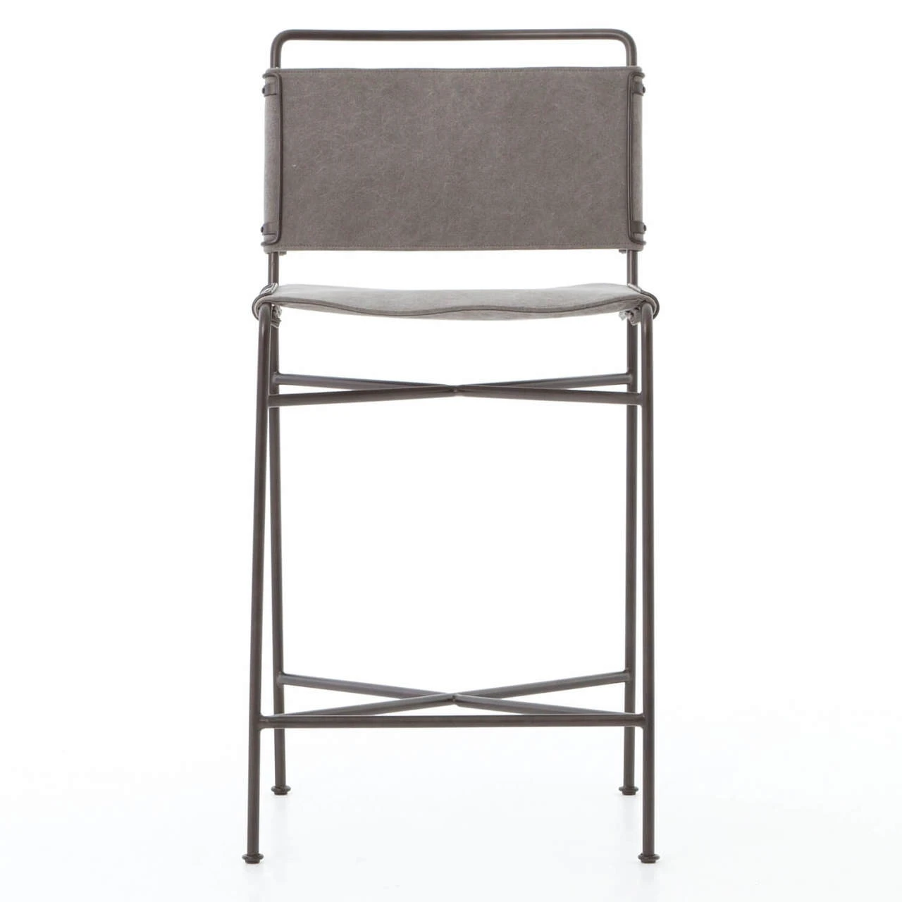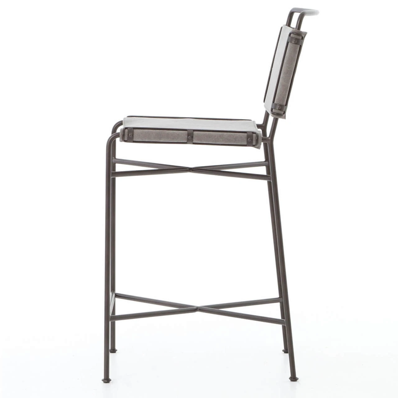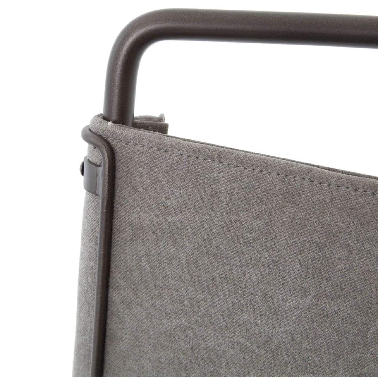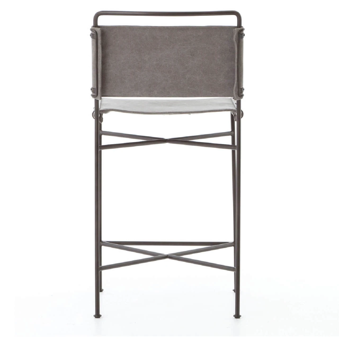 Slim open-concept metal frame and mixed materials combine for ample comfort. Architecturally inspired slim steel tube frame is graced by simply contoured canvas seating, bringing industrial modern aesthetic to any dining room or kitchen