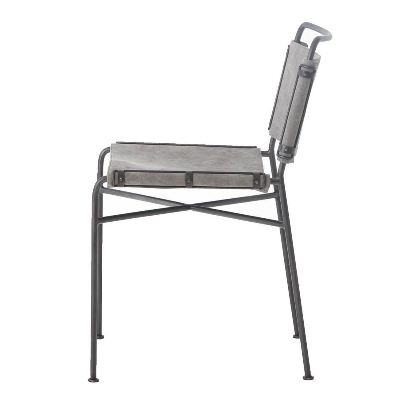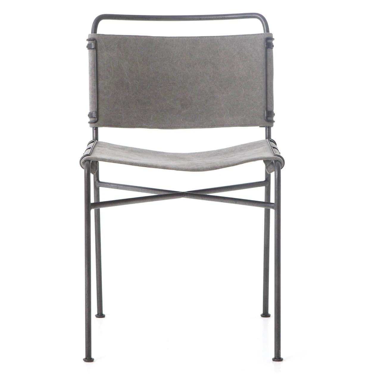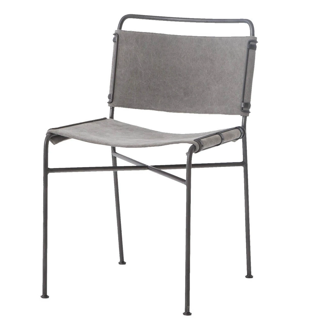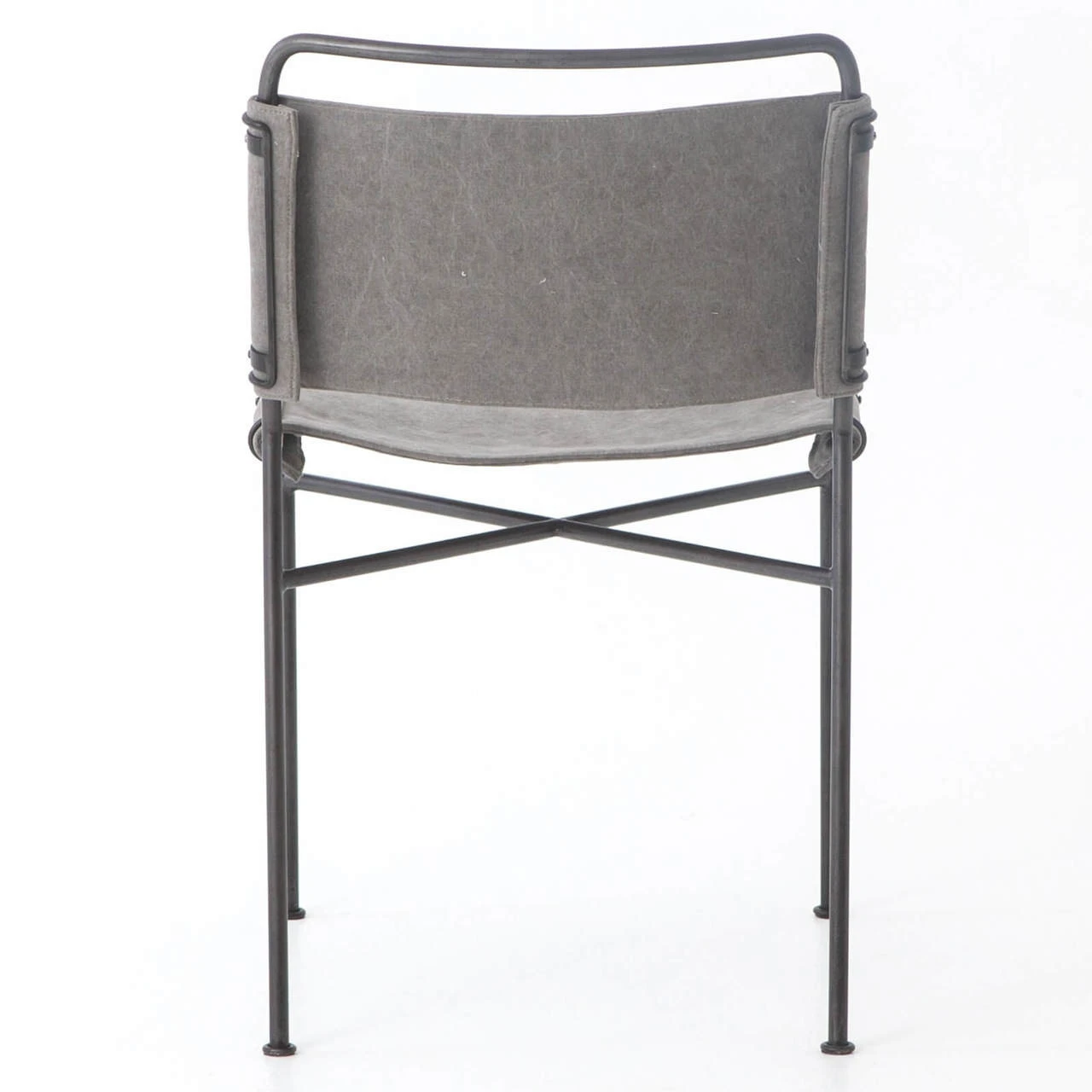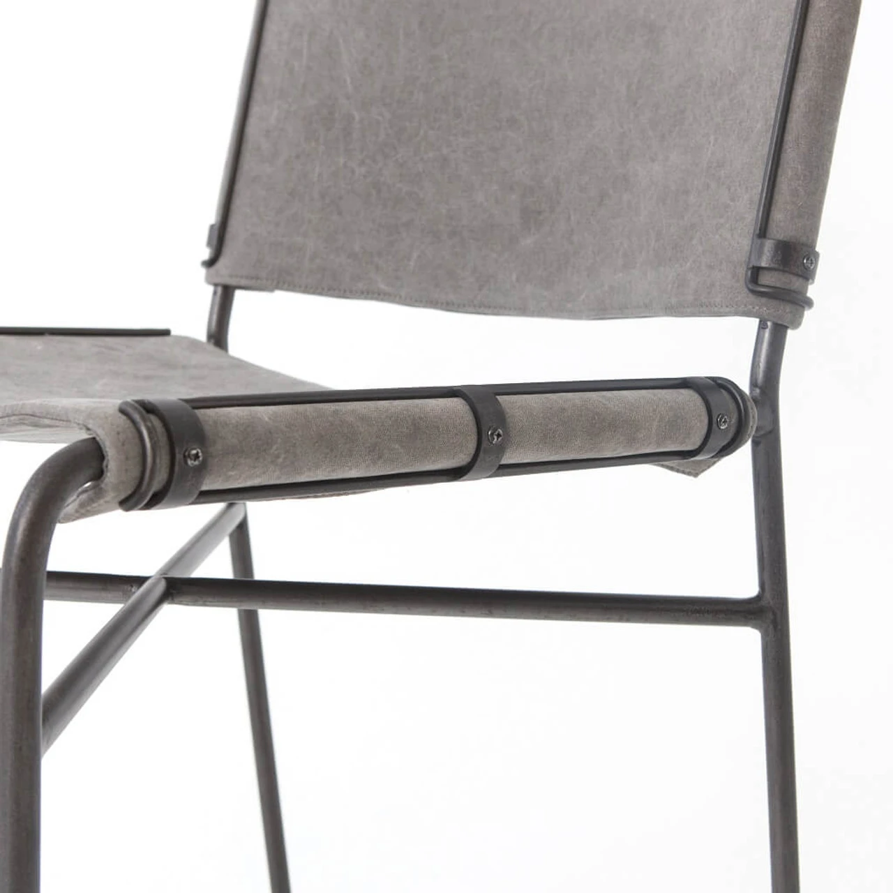 Slim lines and mixed materials combine for ample comfort. Architecturally inspired steel tubing is graced by simply contoured canvas seating, bringing industrial modern aesthetic to any dining room or kitchen.