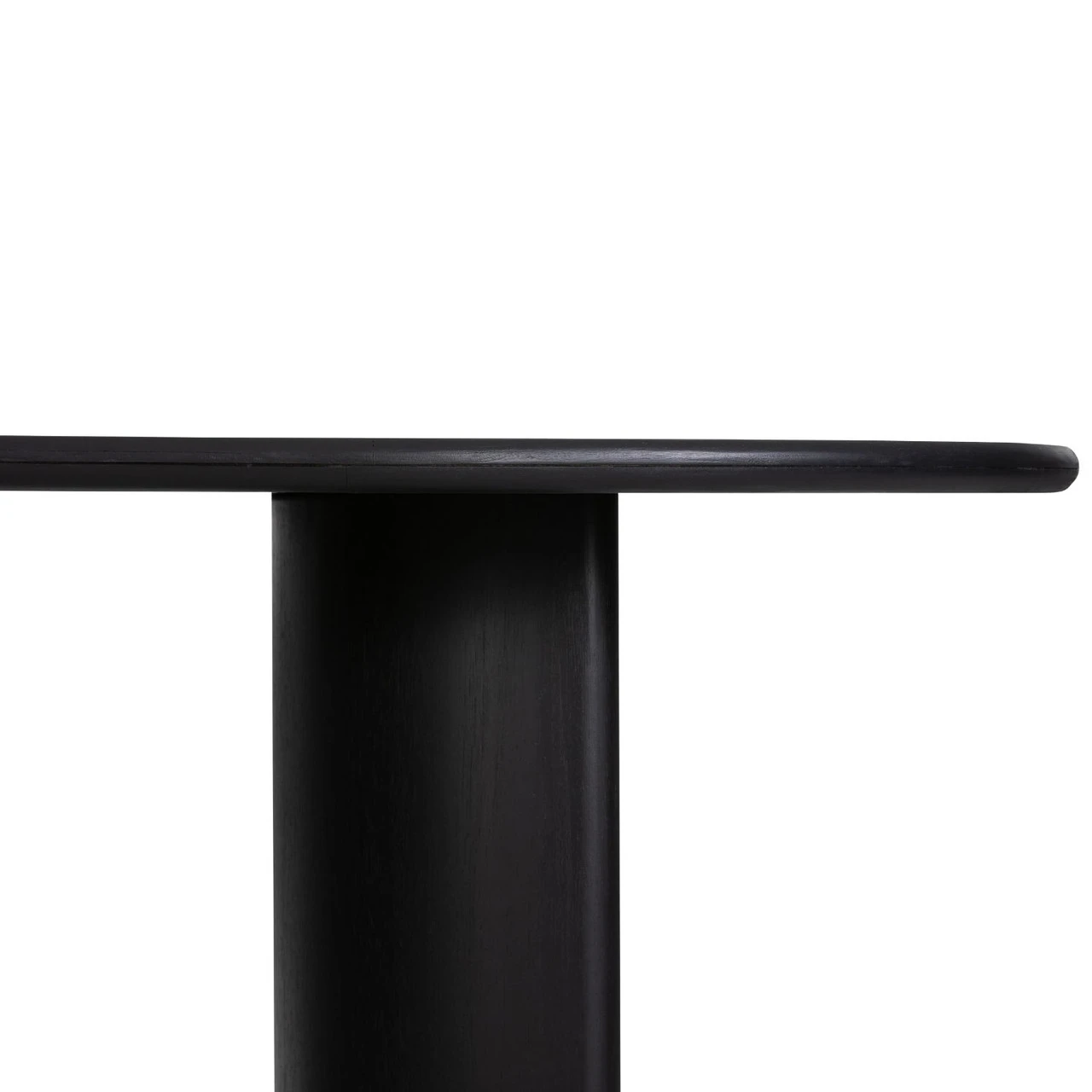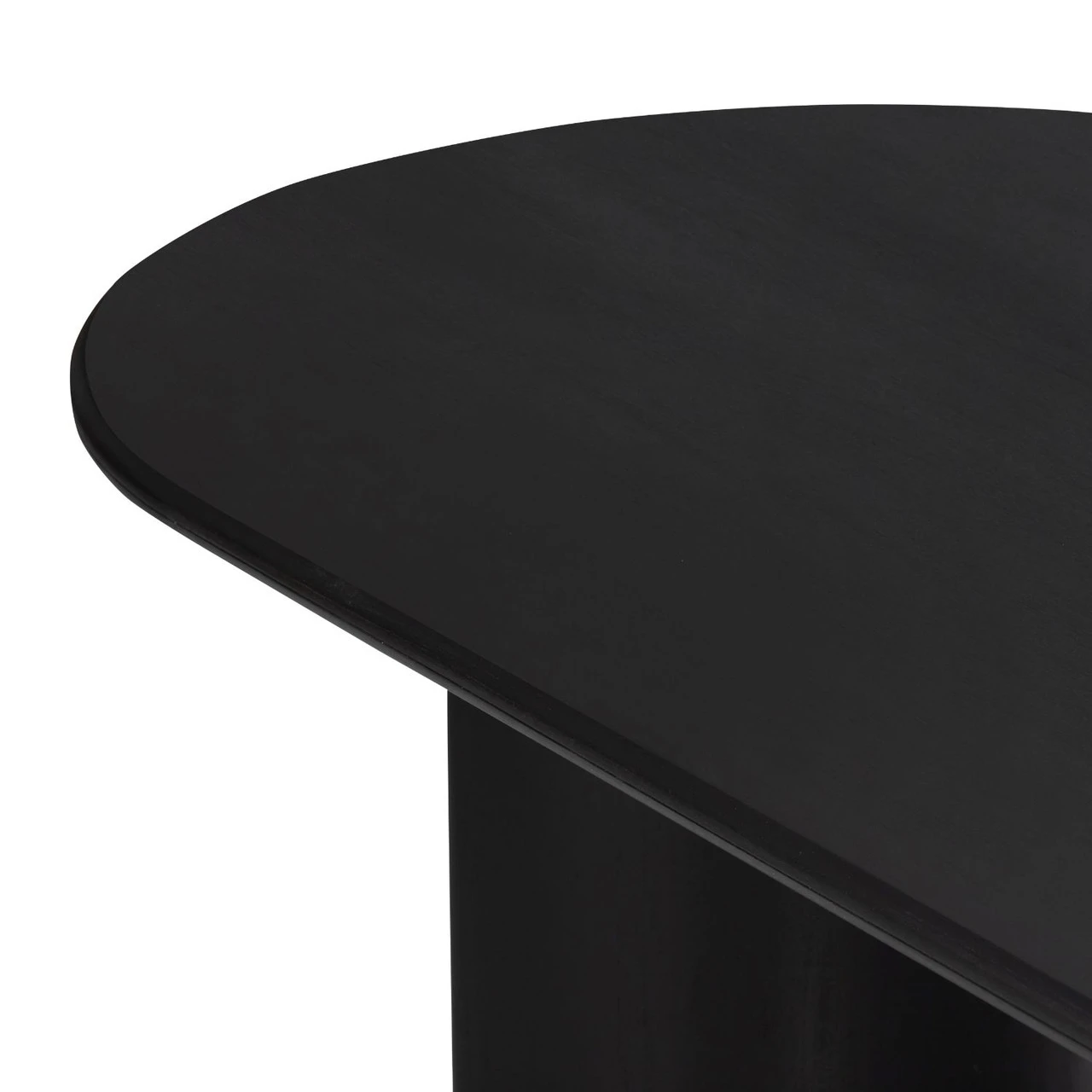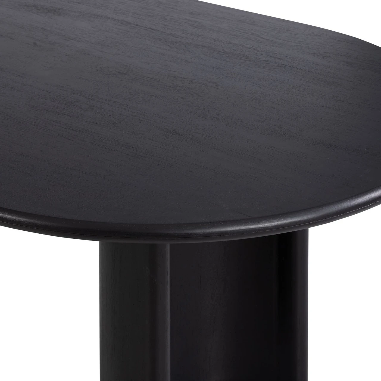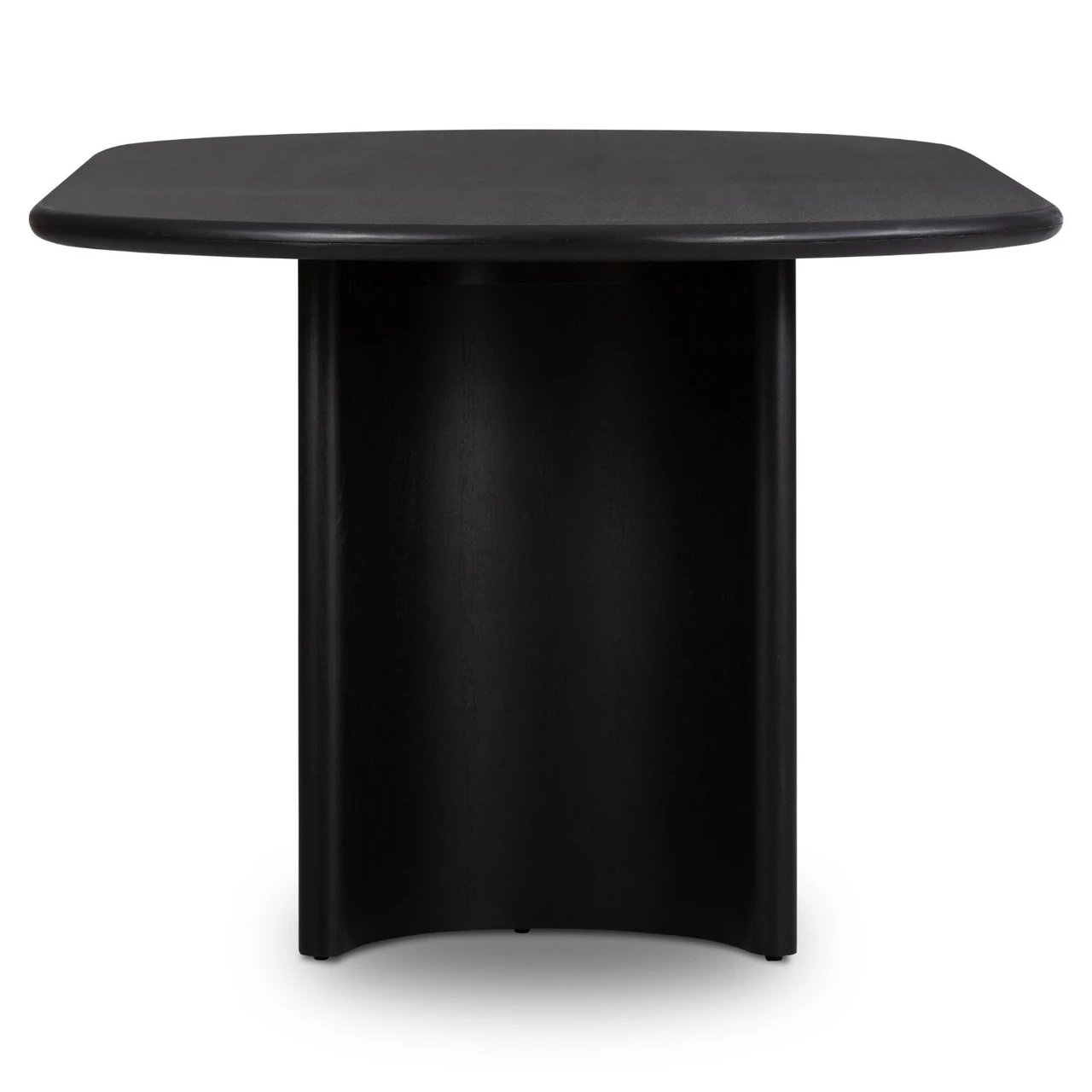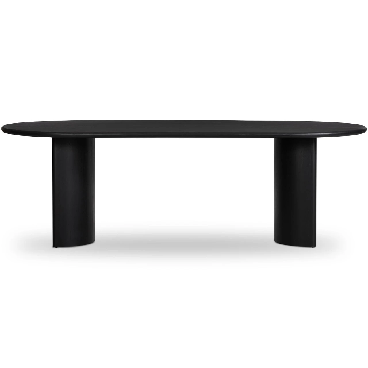 A study in shape. Solid brown acacia forms crescent-shaped legs and sprawling oval tabletop, bringing organic presence to the dining room.